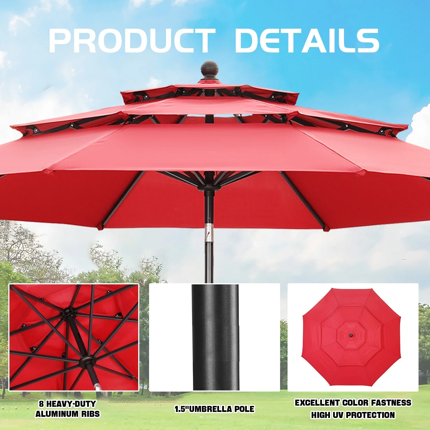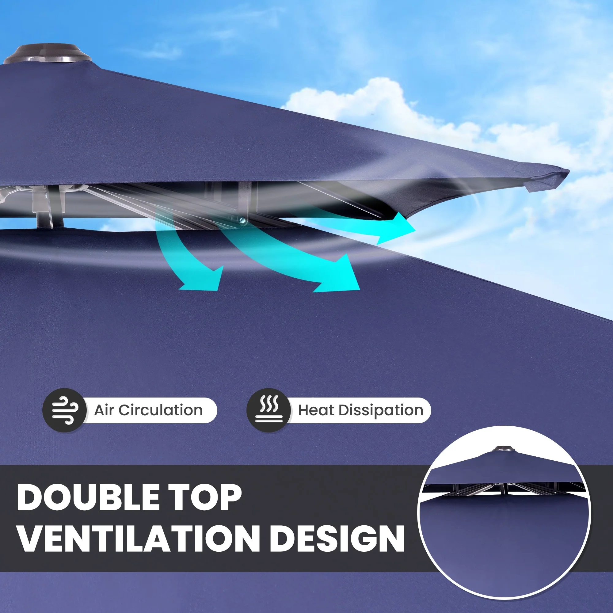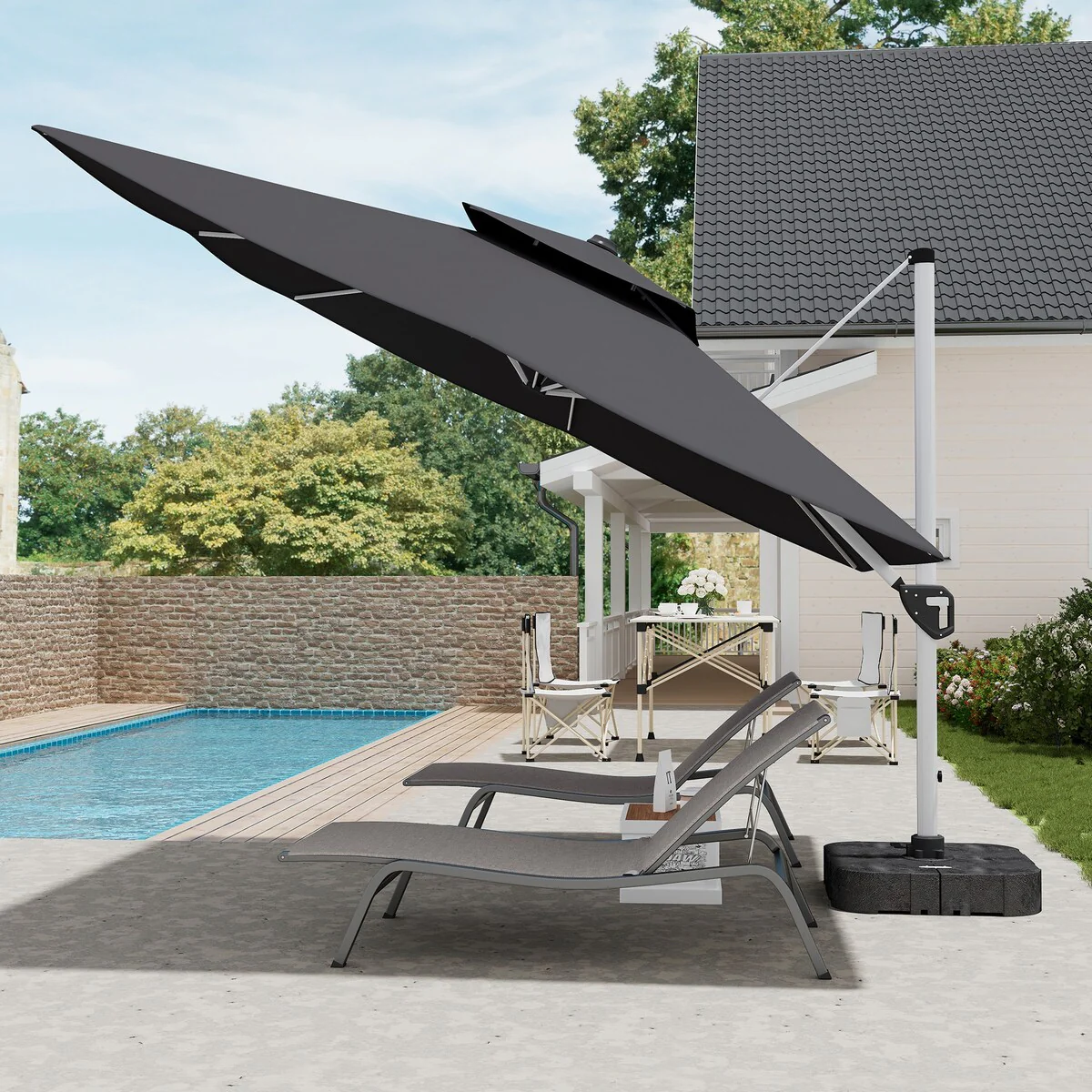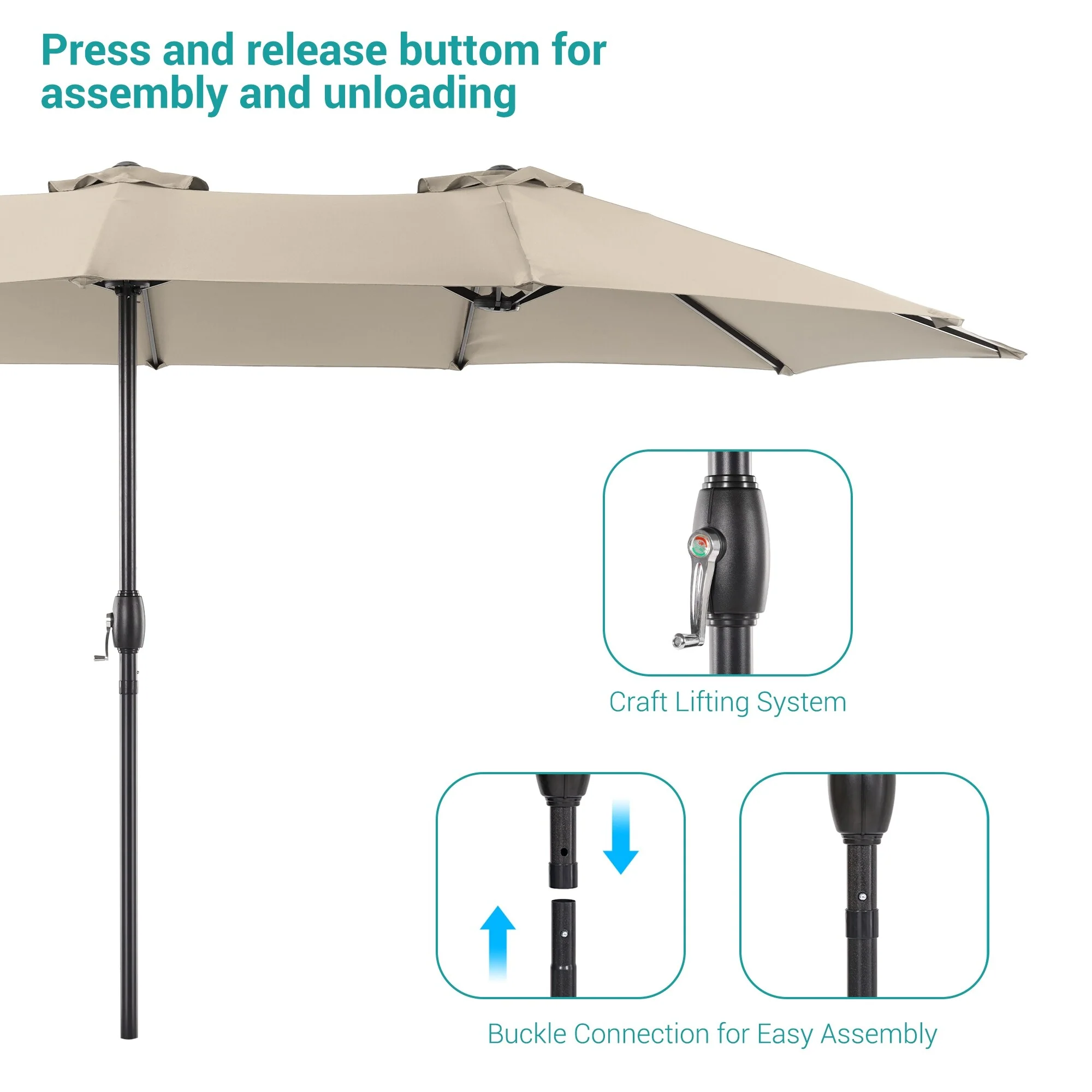 MAISON ARTS 15ft Double-Sided Patio Extra Large Twin Umbrella with Base