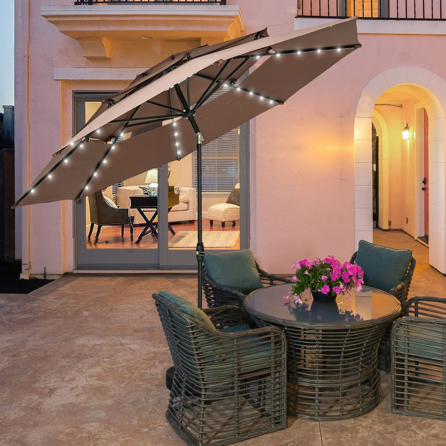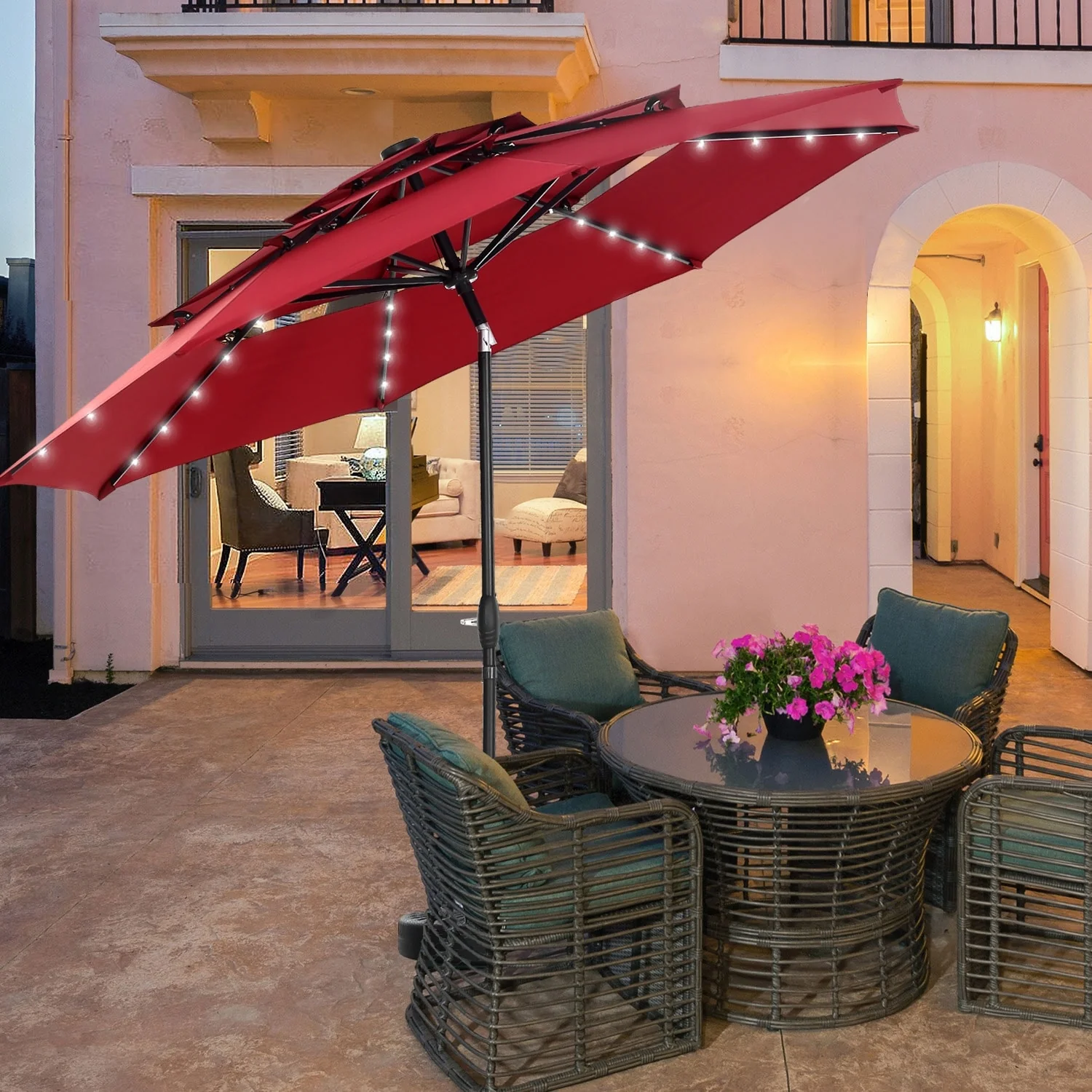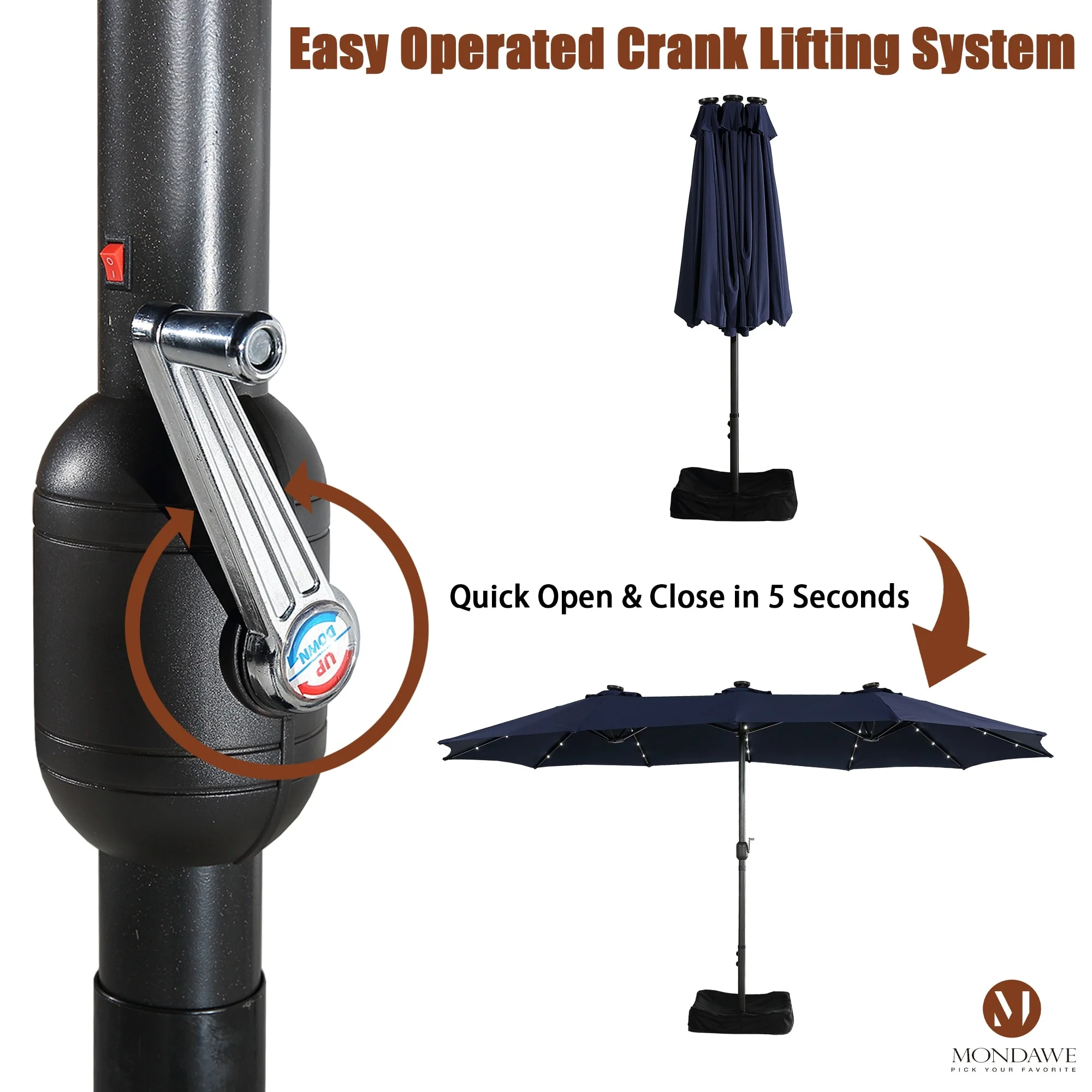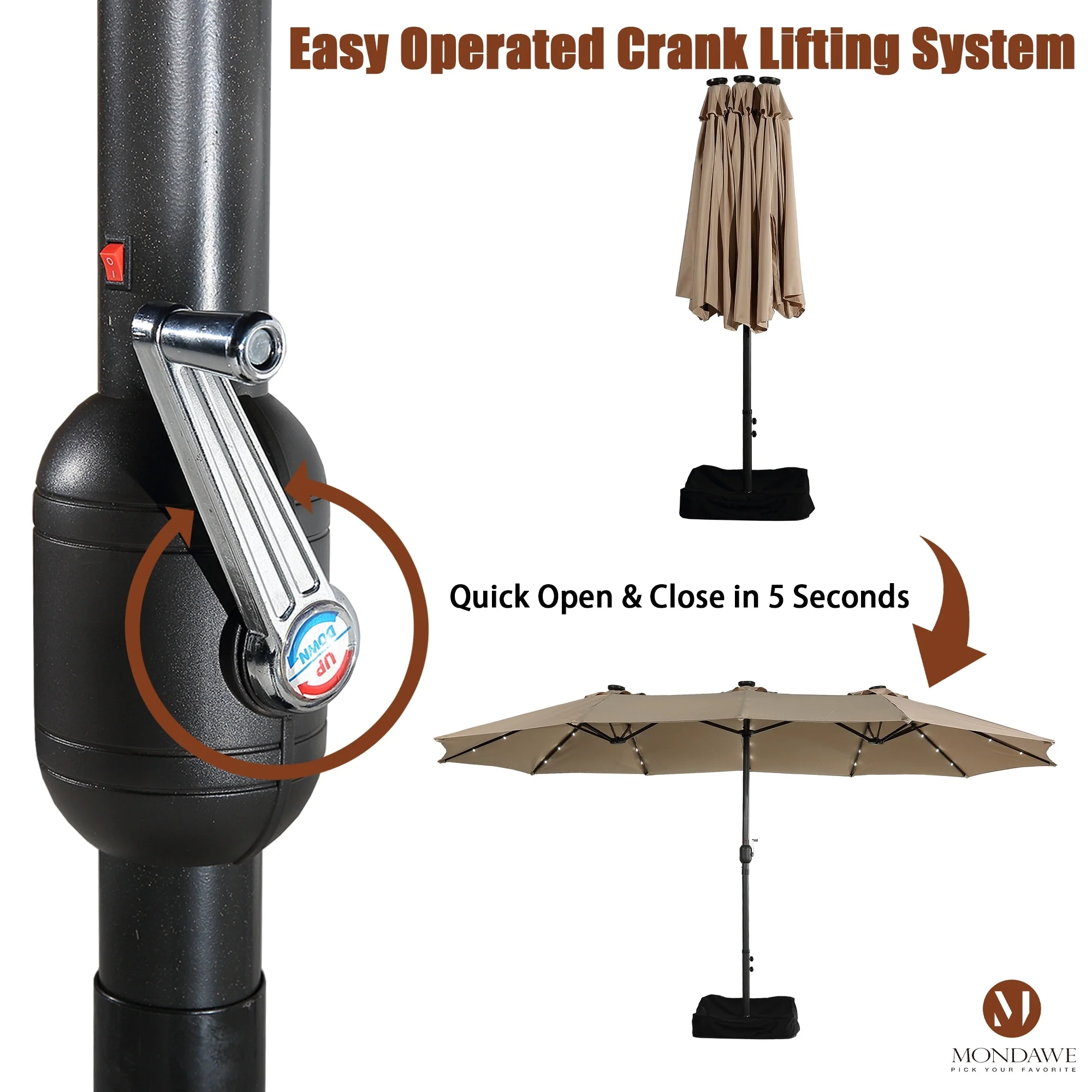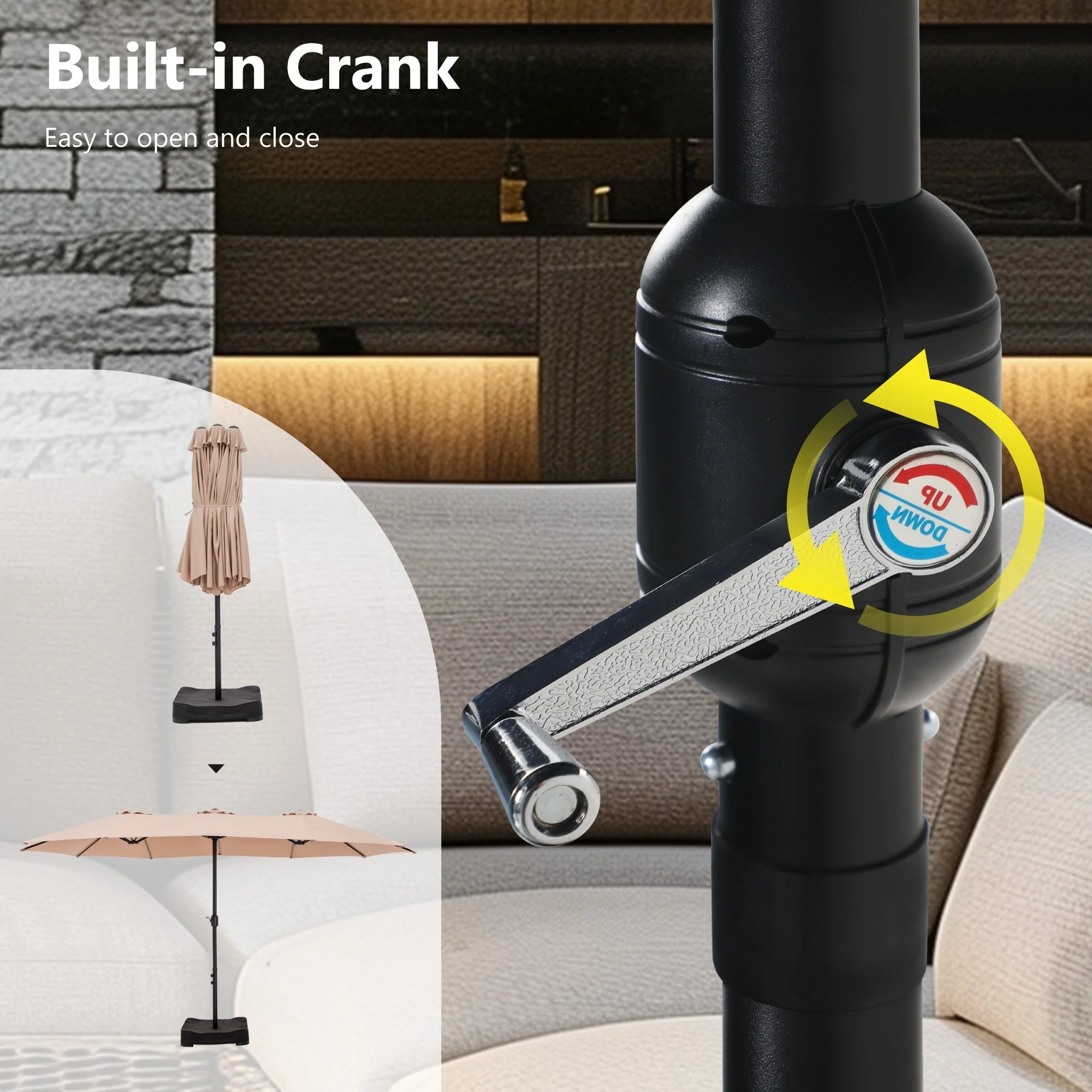 MAISON ARTS 15ft Double-Sided Patio Extra Large Twin Umbrella with Base