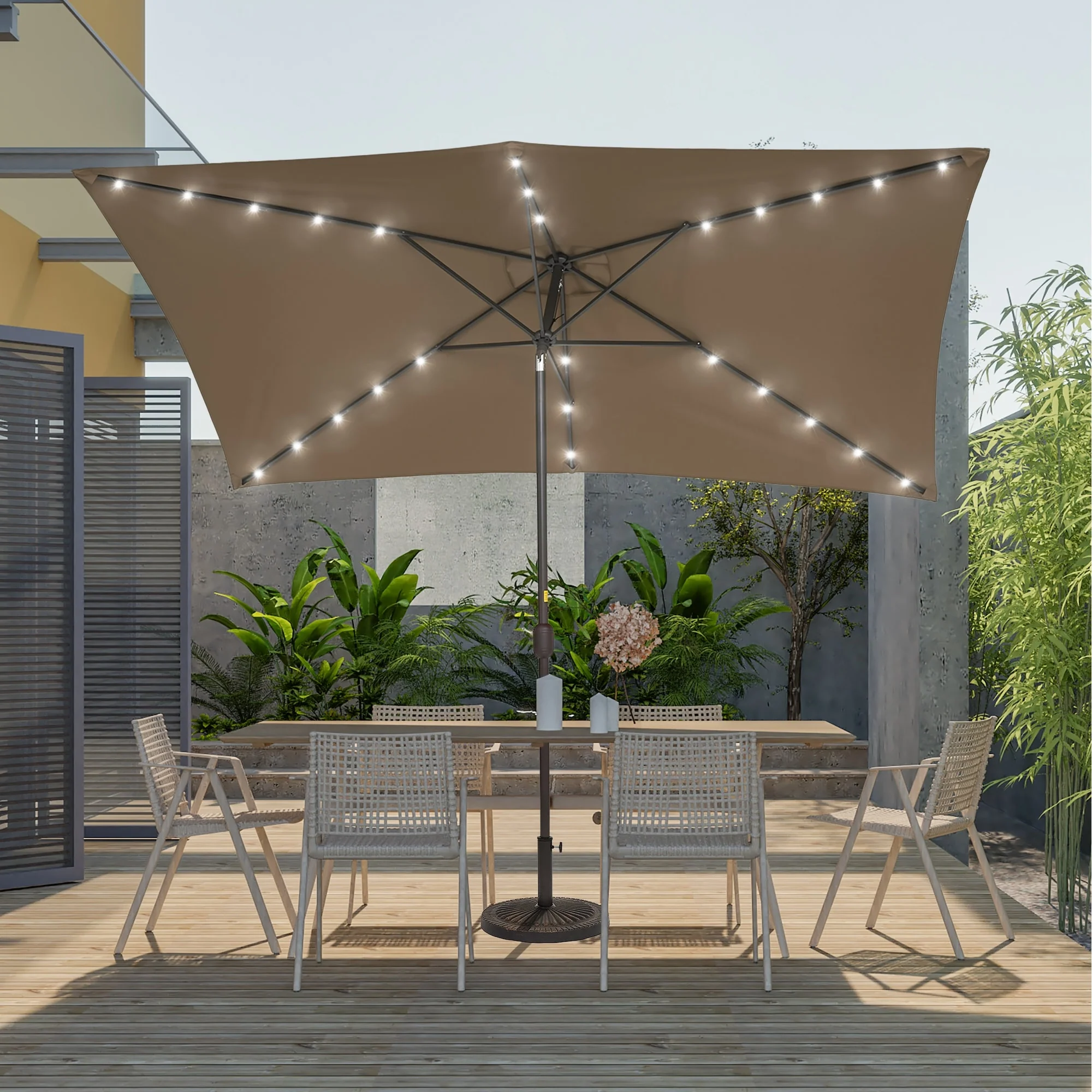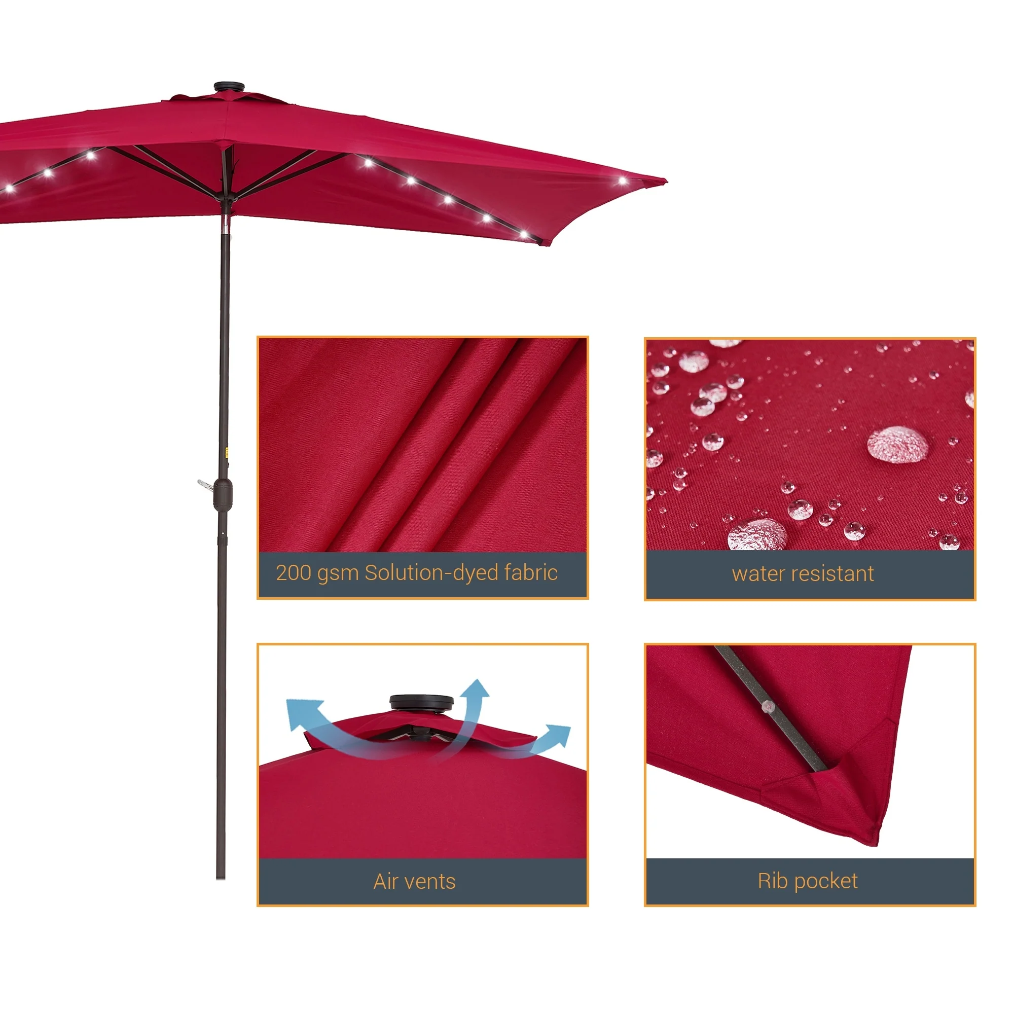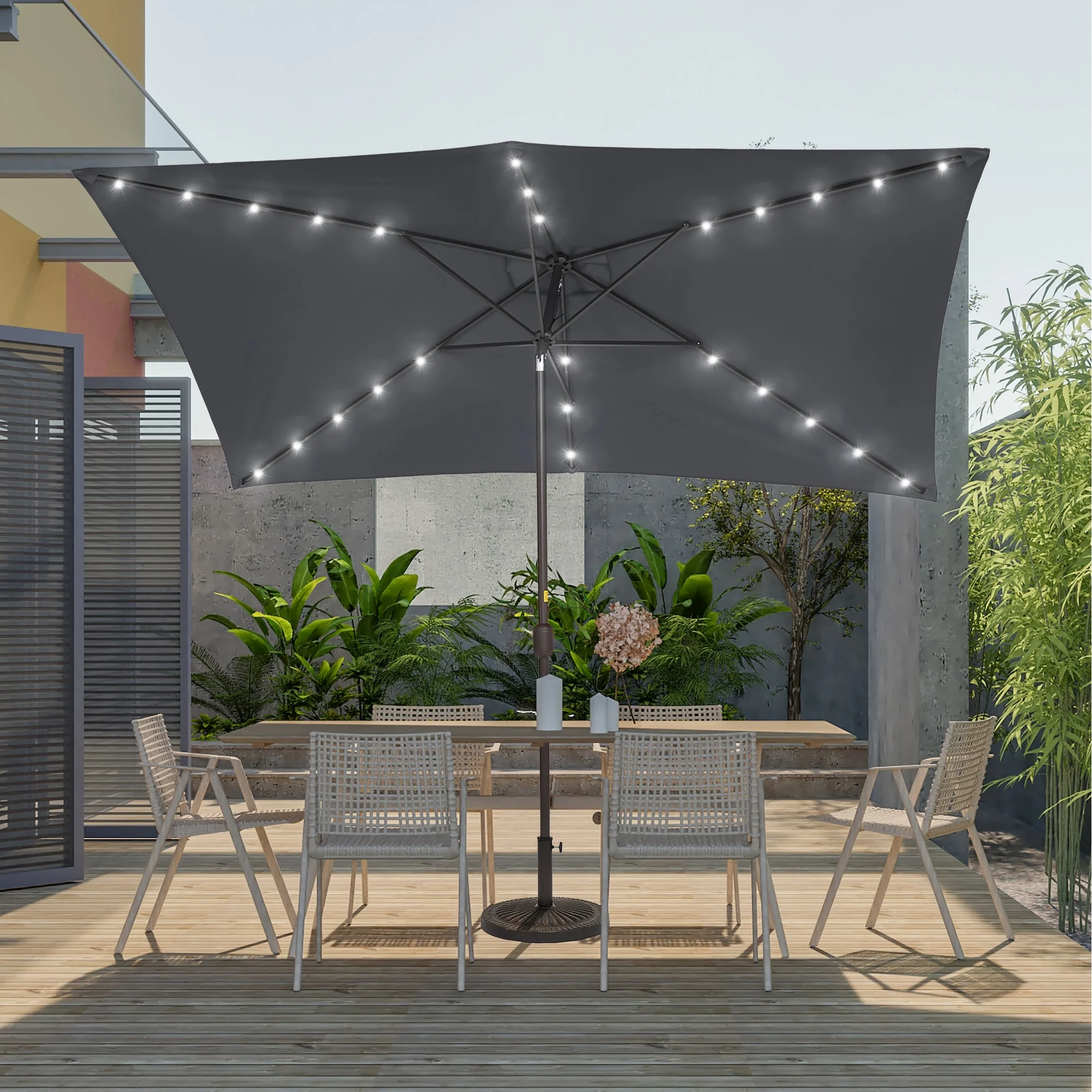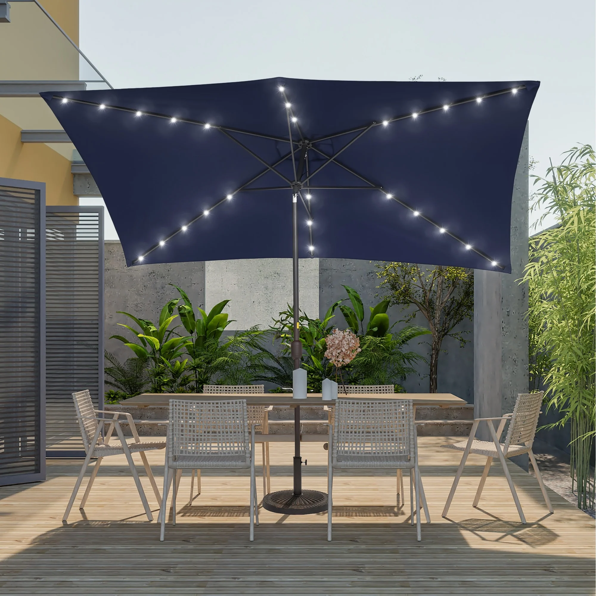 BONOSUKI Outdoor 10 x 6.5ft LED Rectangula Umbrella Patio Market Table Umbrella Aluminium/Steel with Tilt