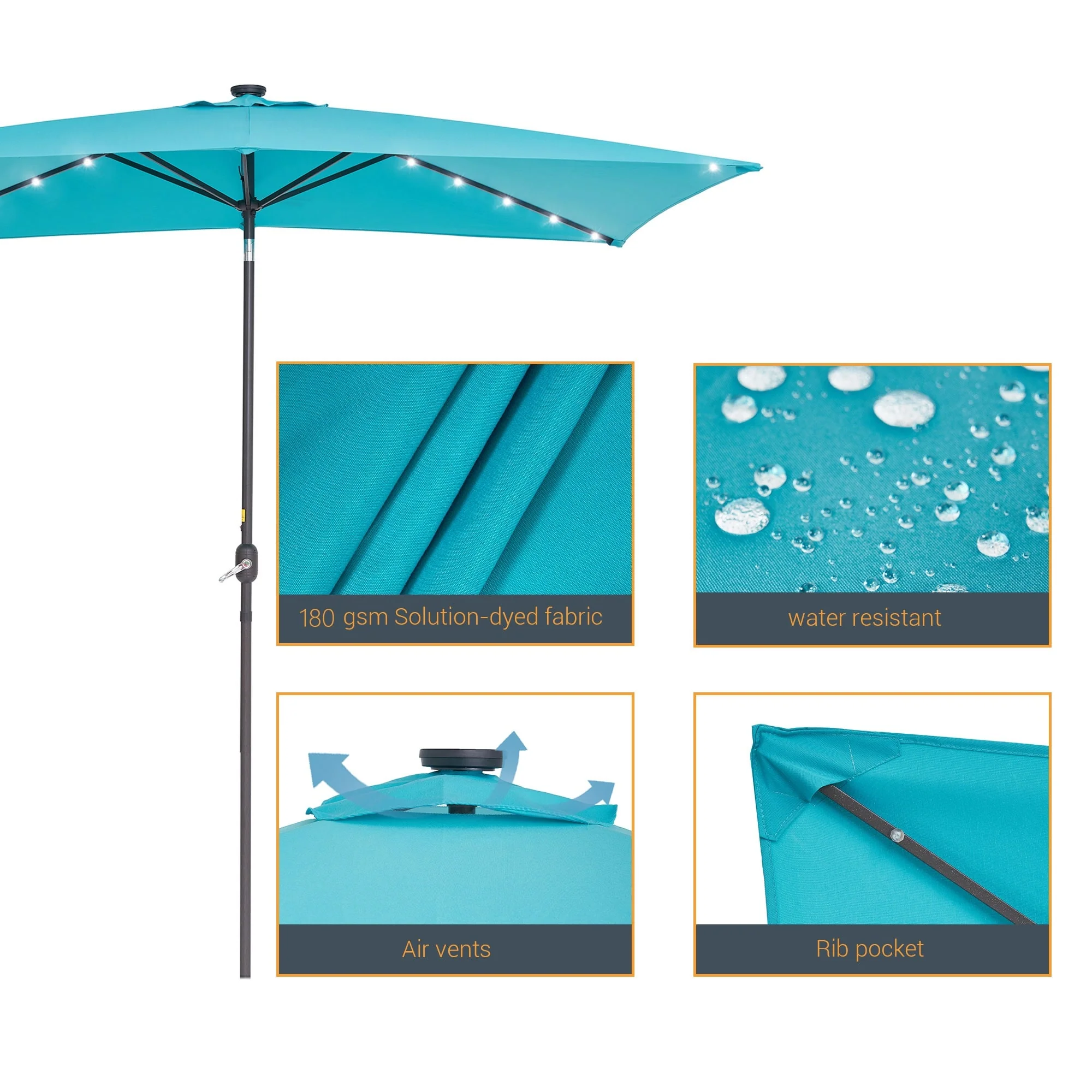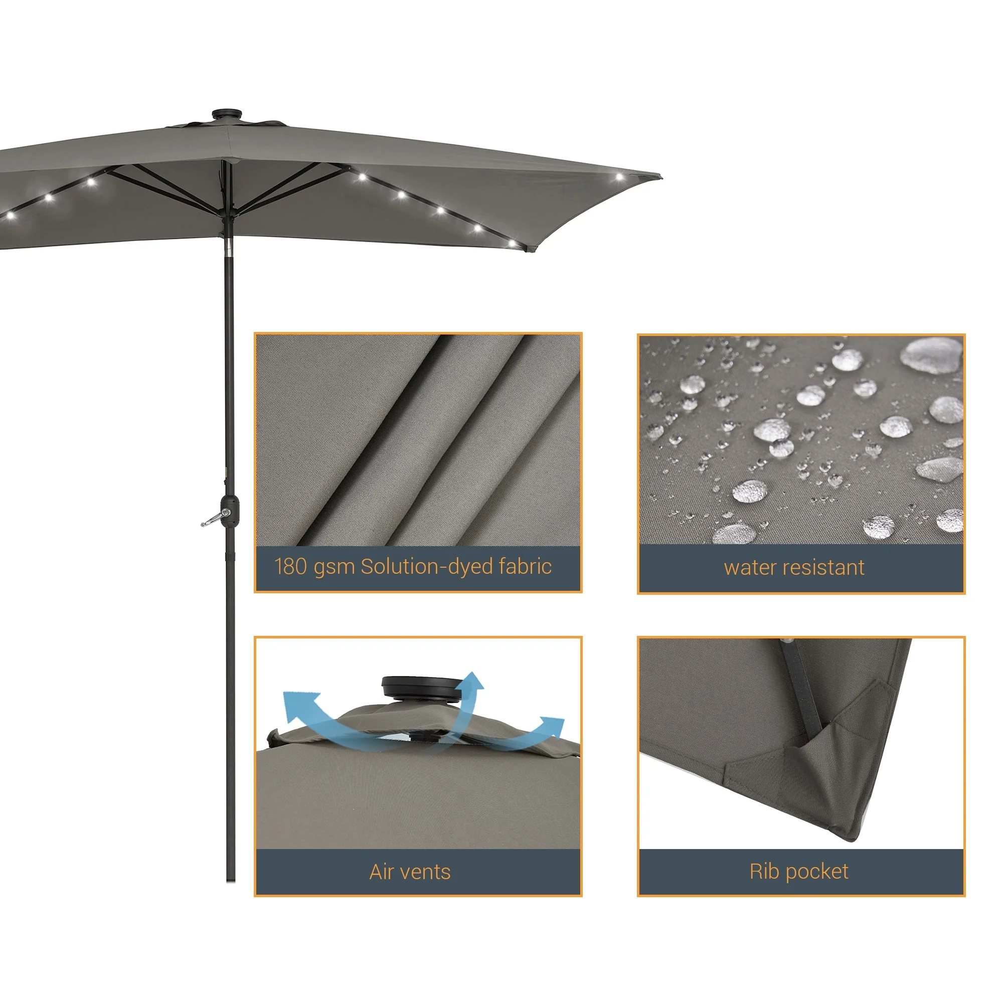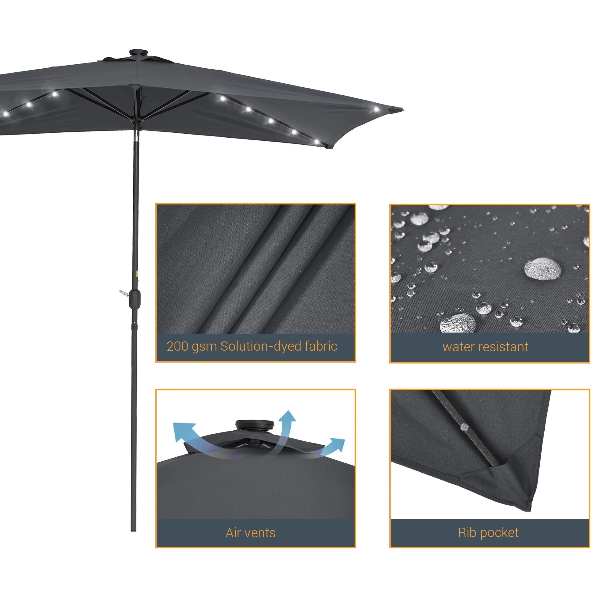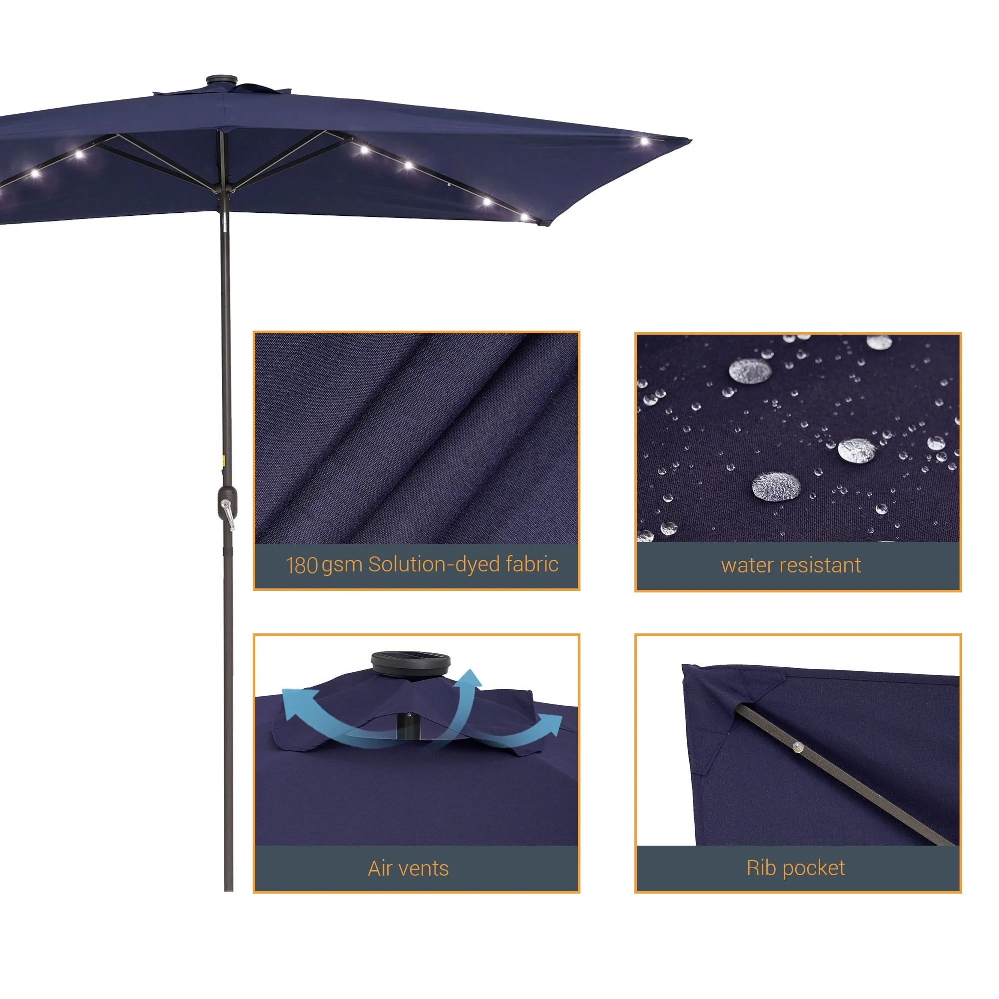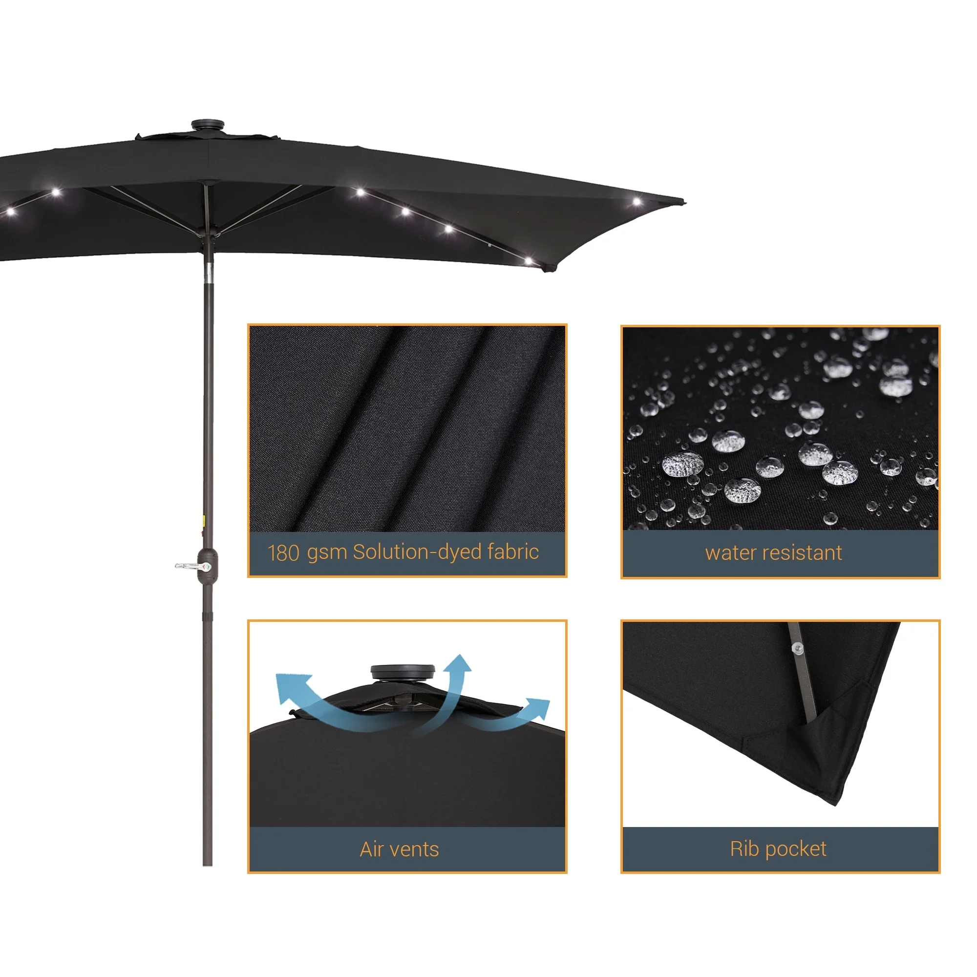 BONOSUKI Outdoor 10 x 6.5ft LED Rectangula Umbrella Patio Market Table Umbrella Aluminium/Steel with Tilt