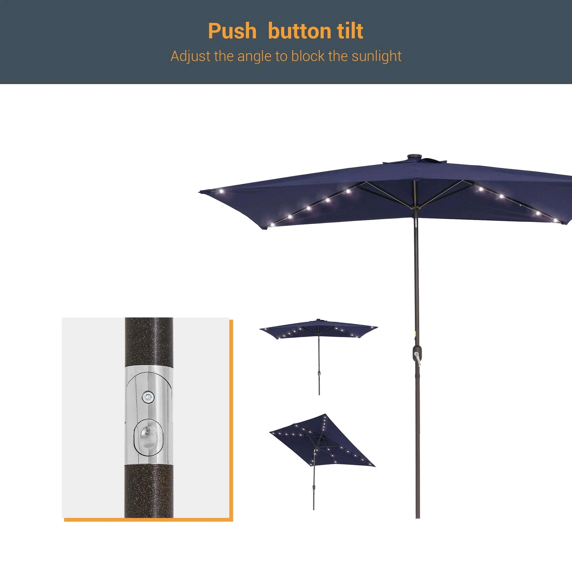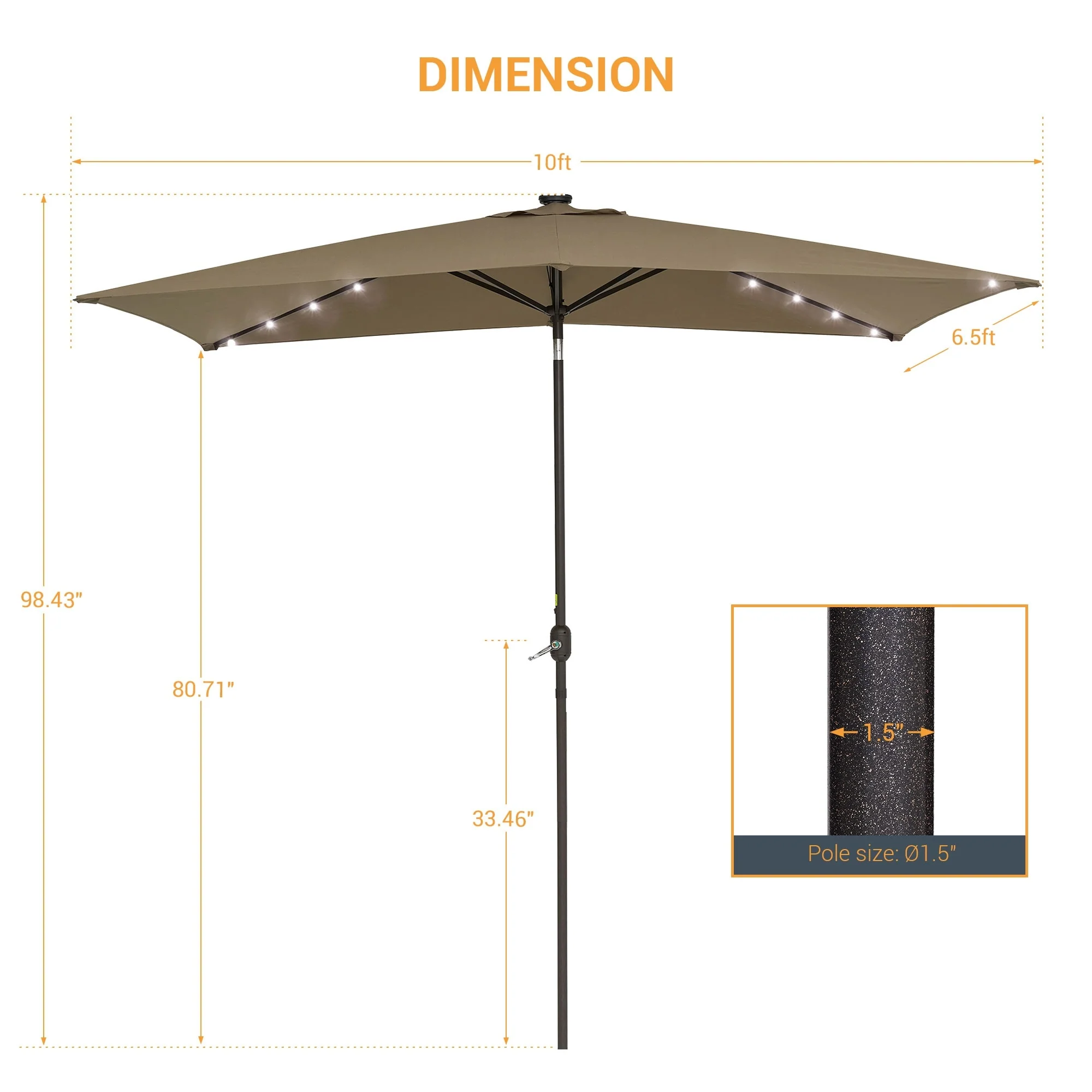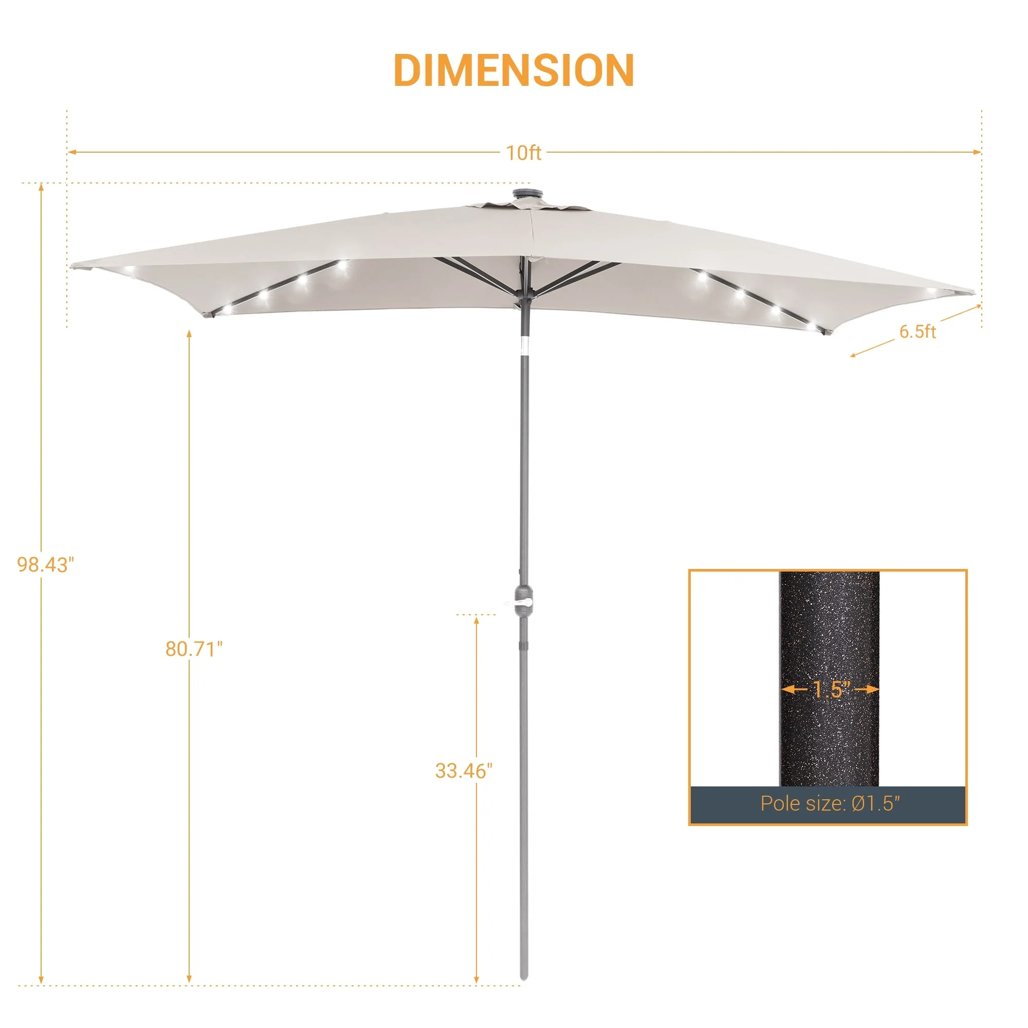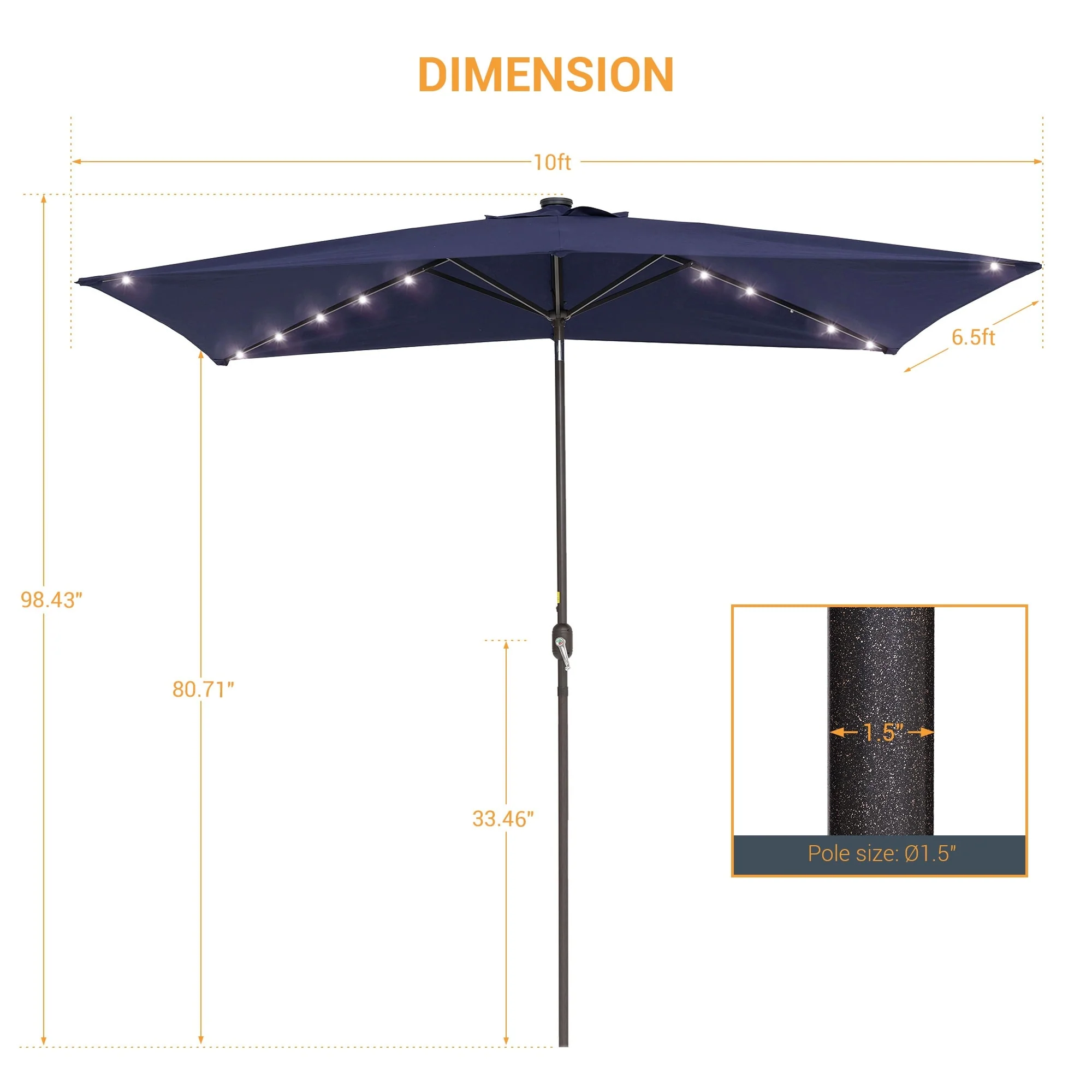 BONOSUKI Outdoor 10 x 6.5ft LED Rectangula Umbrella Patio Market Table Umbrella Aluminium/Steel with Tilt