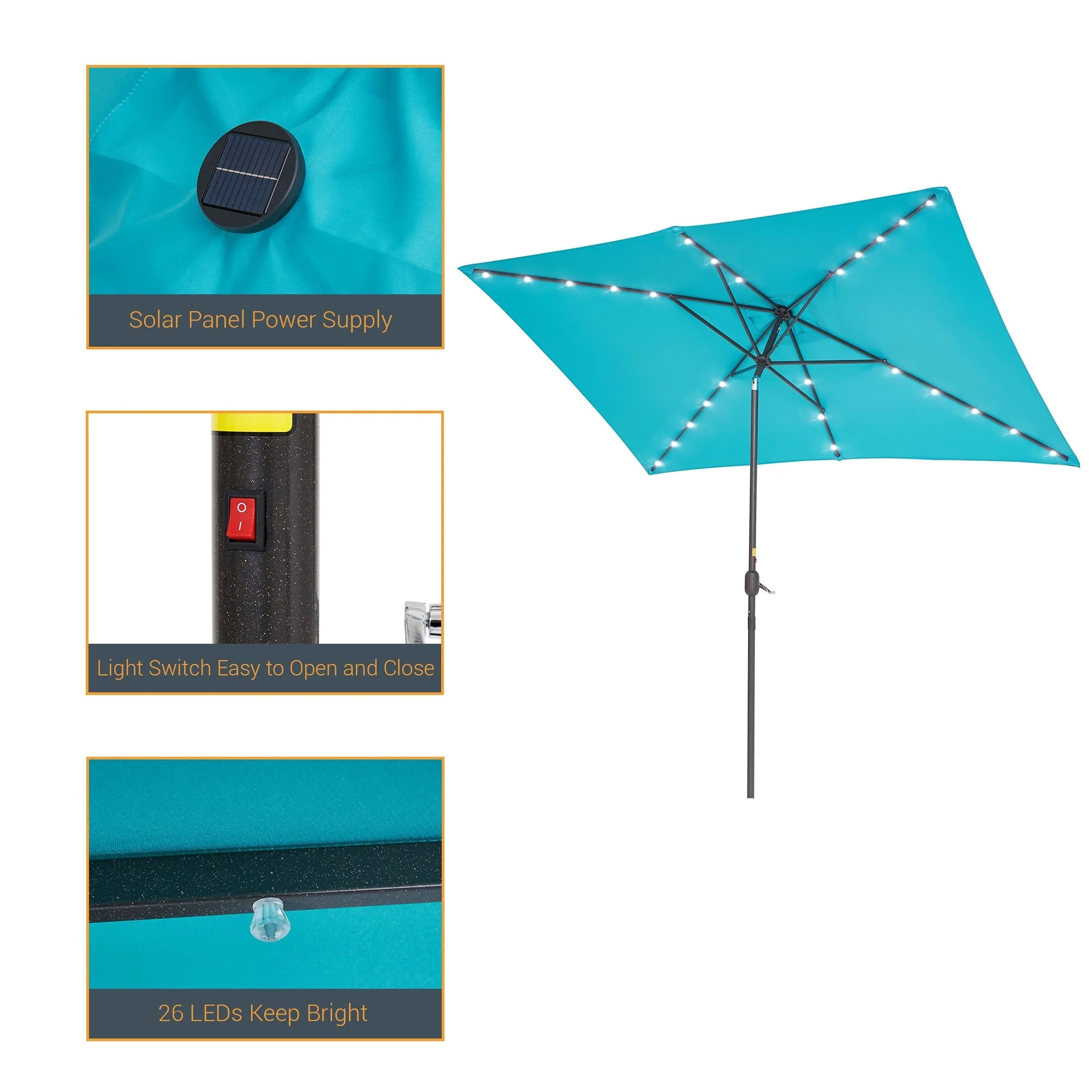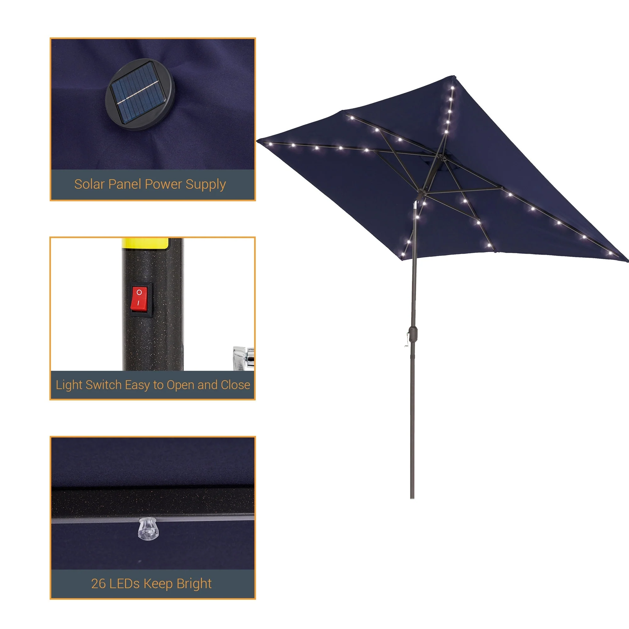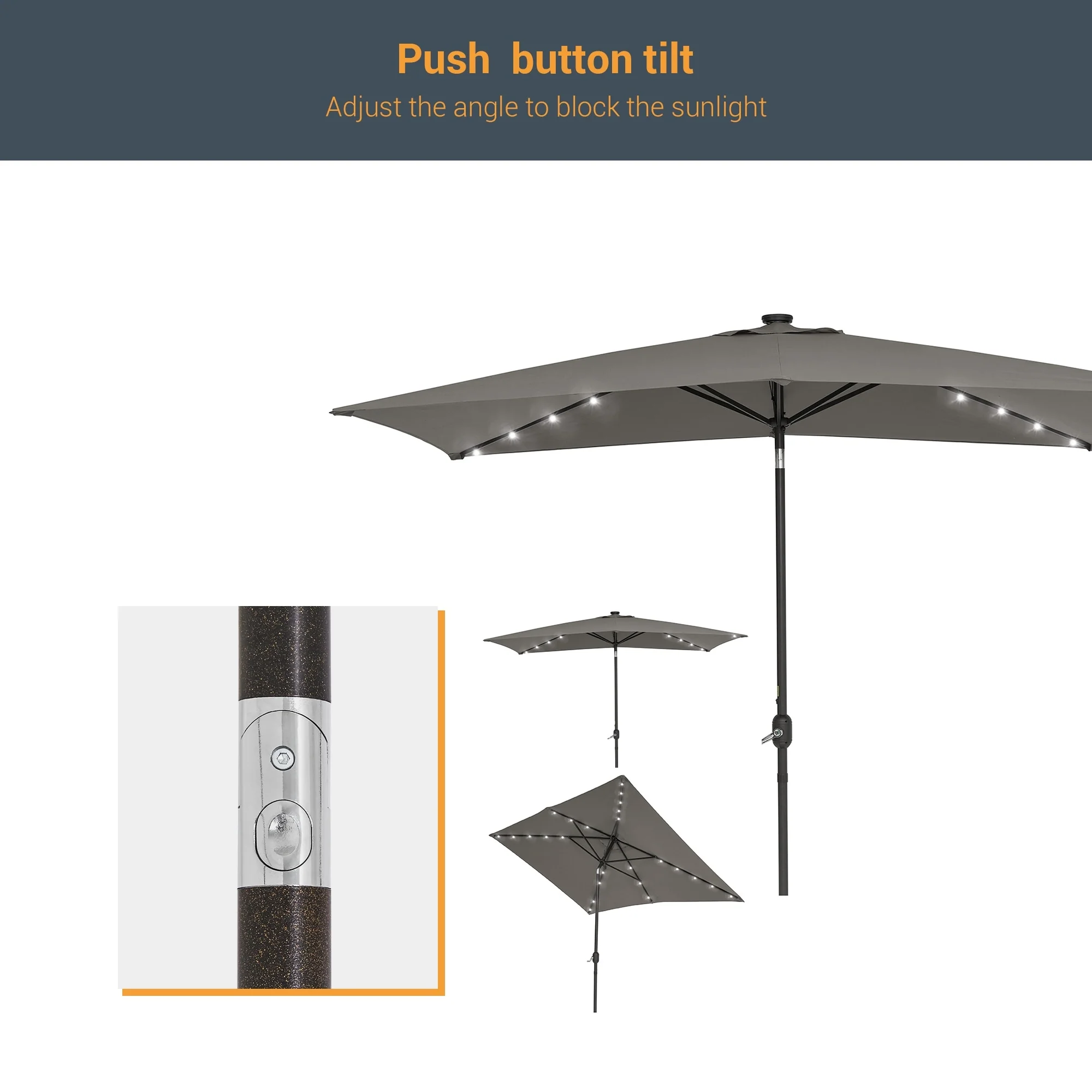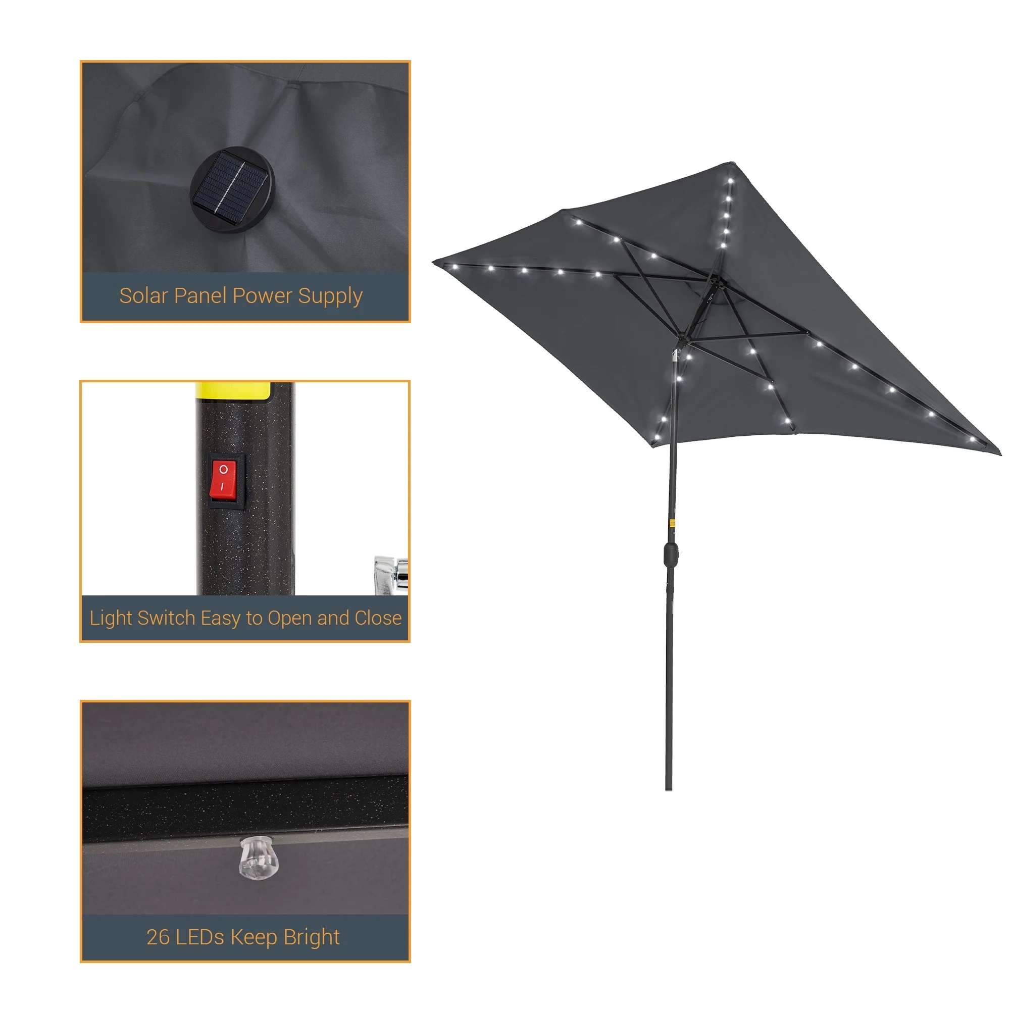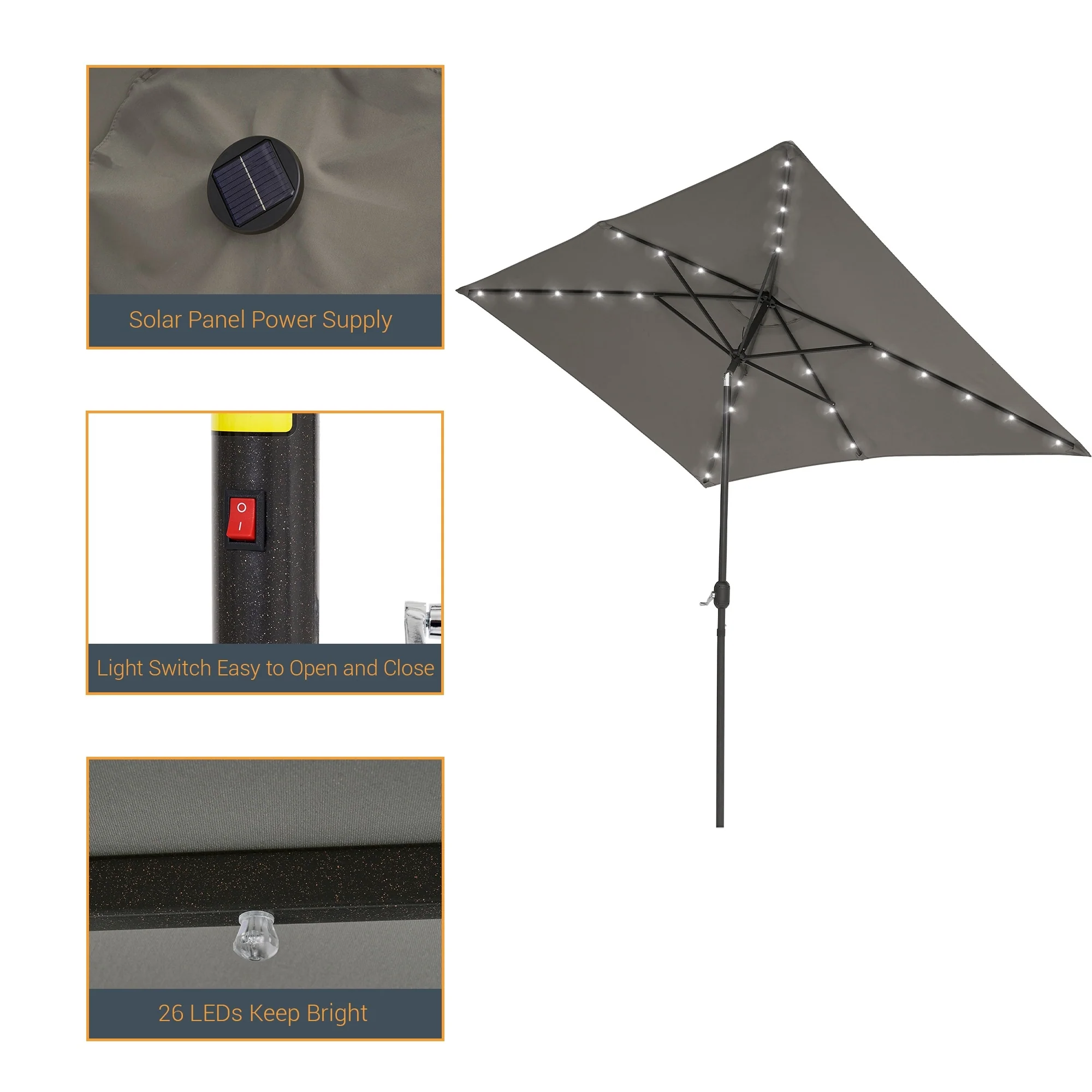 BONOSUKI Outdoor 10 x 6.5ft LED Rectangula Umbrella Patio Market Table Umbrella Aluminium/Steel with Tilt