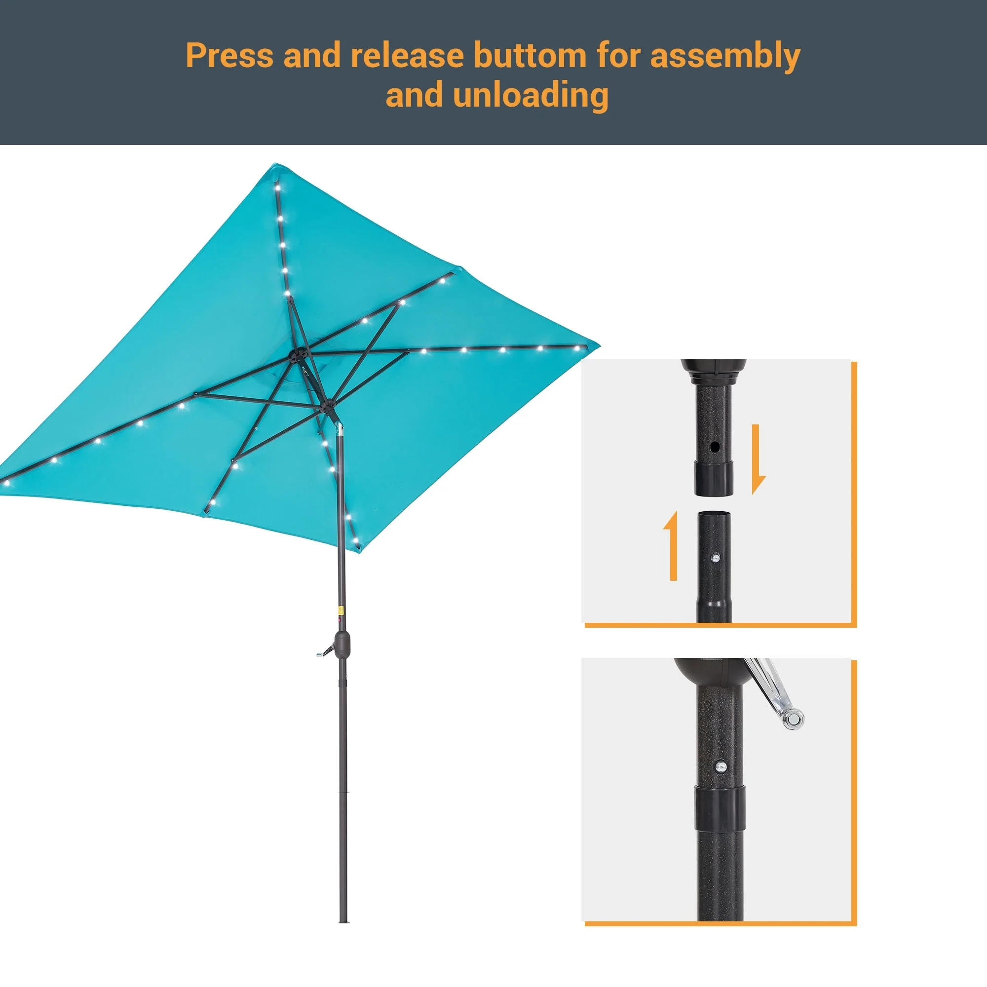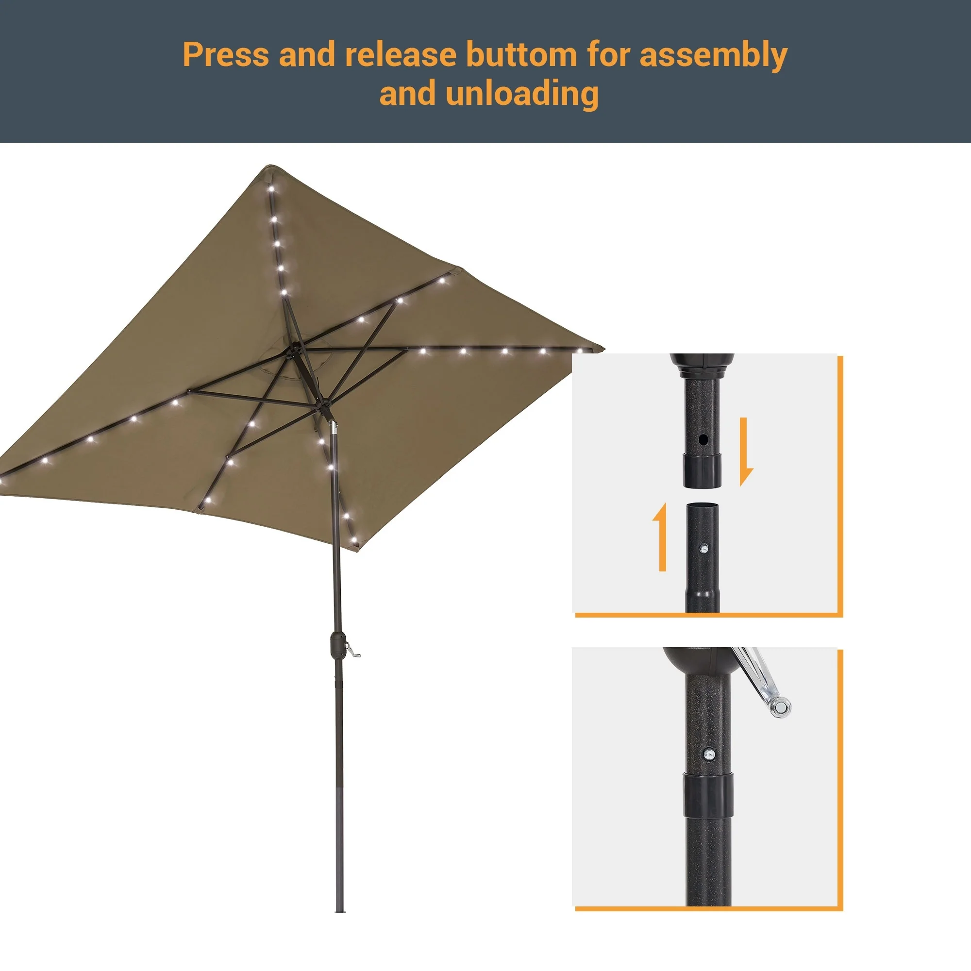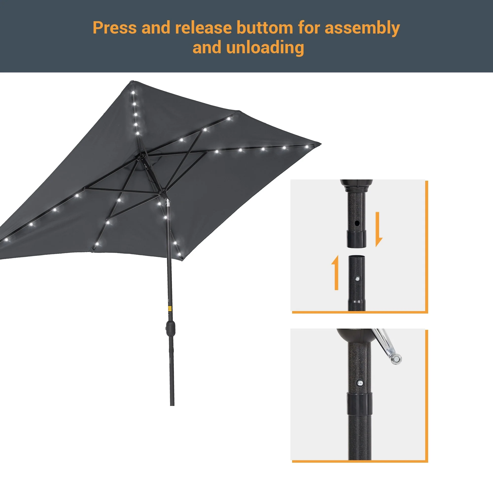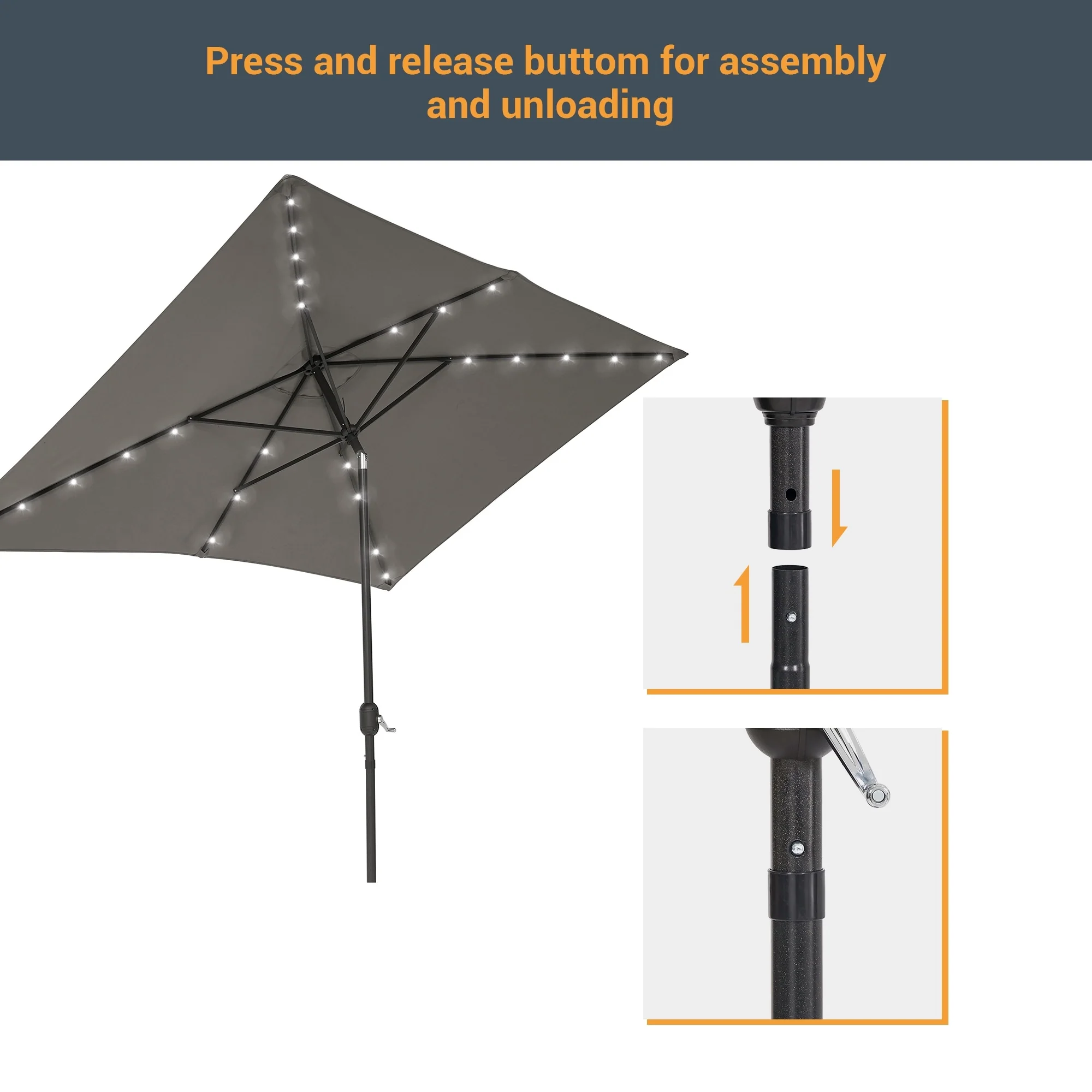 BONOSUKI Outdoor 10 x 6.5ft LED Rectangula Umbrella Patio Market Table Umbrella Aluminium/Steel with Tilt