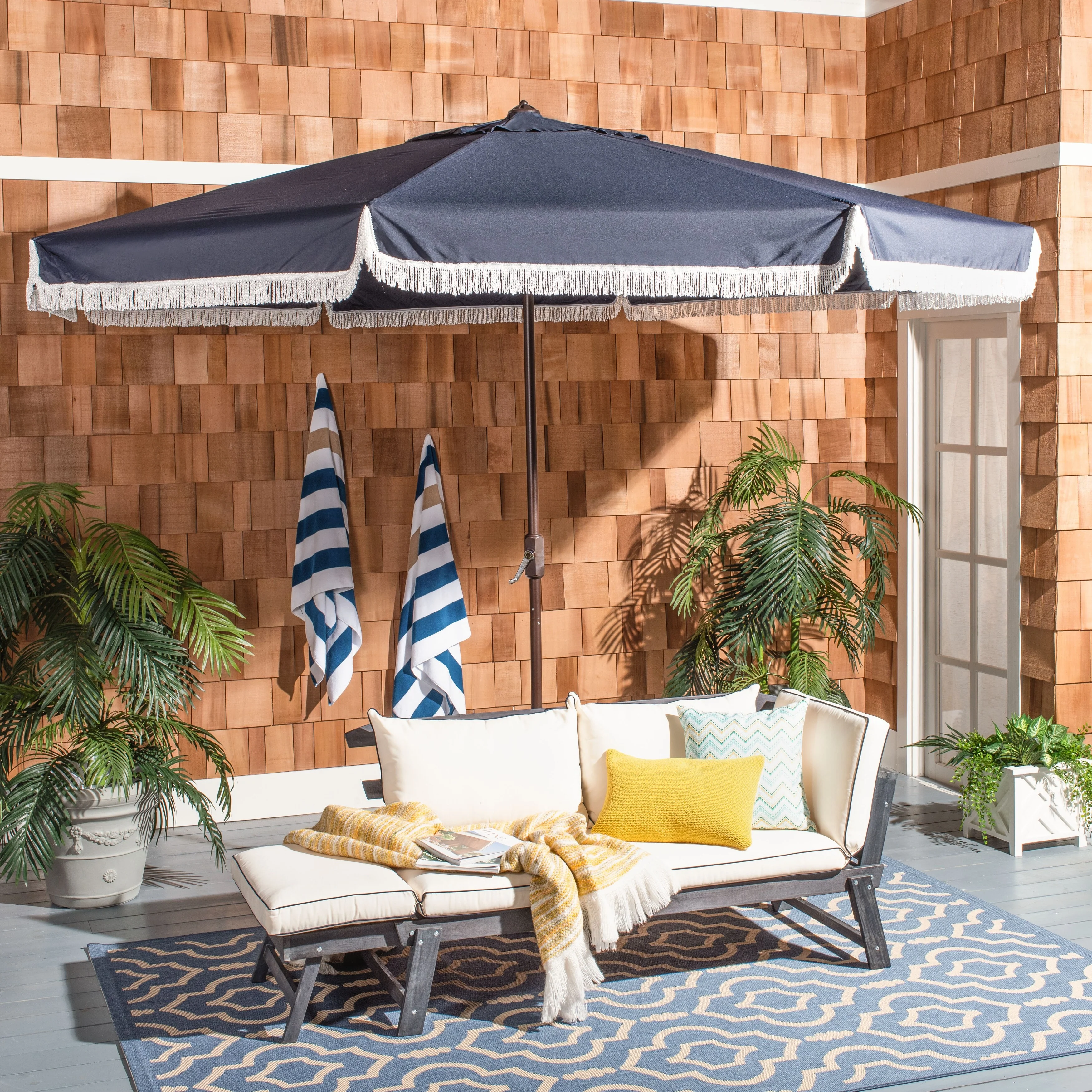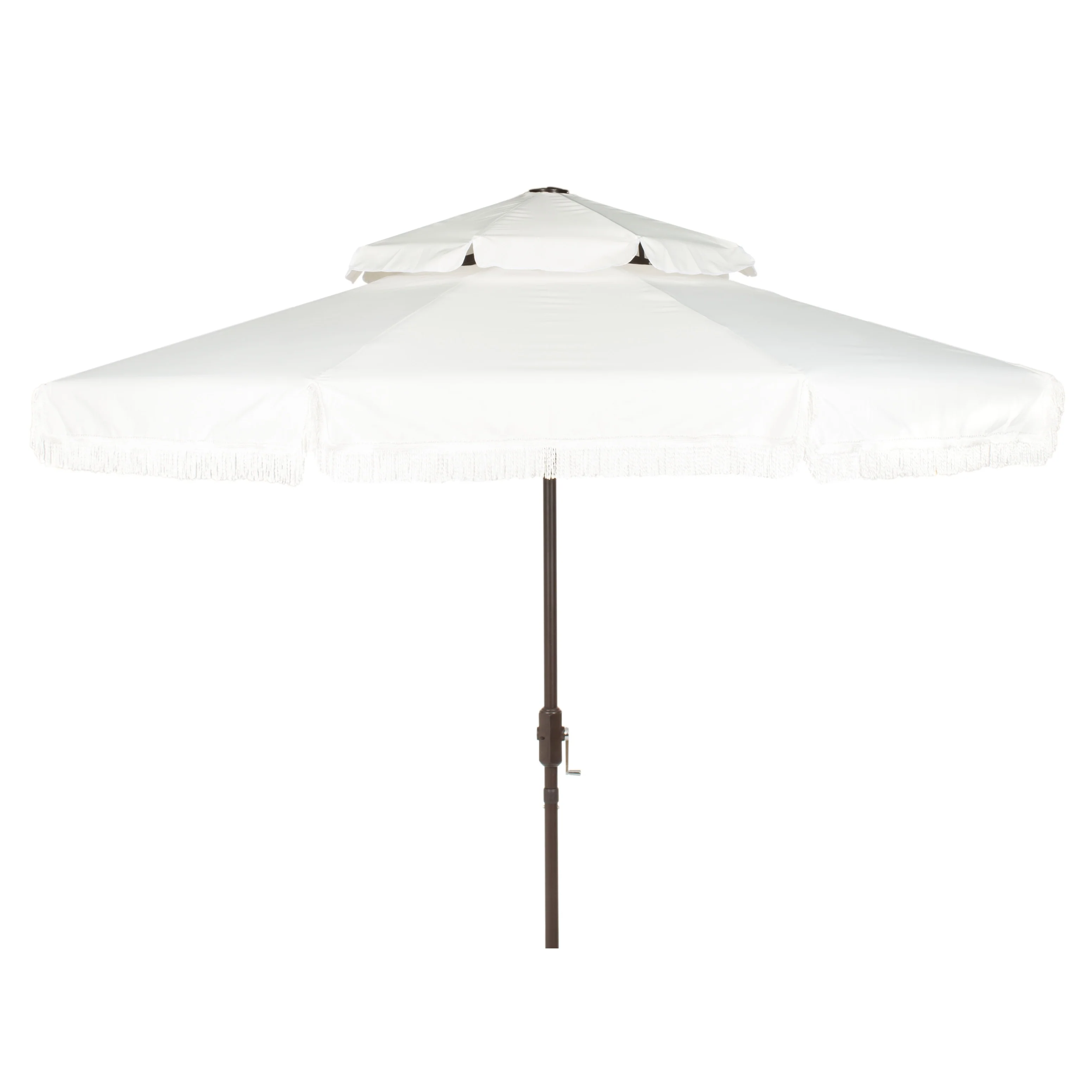 SAFAVIEH Outdoor Presley Fringe 9Ft Double Top Crank Umbrella
