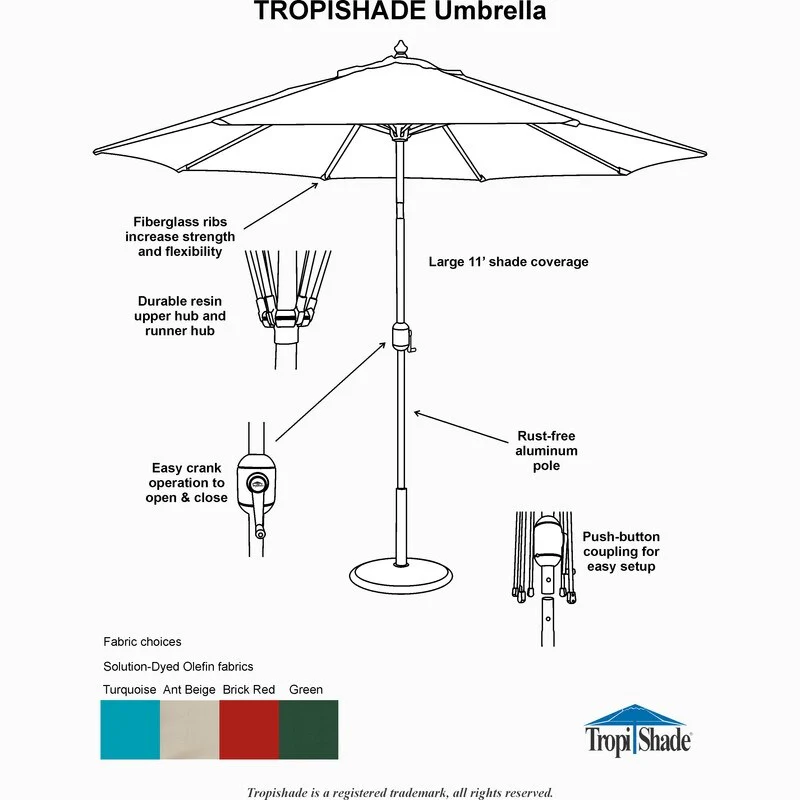 Tropishade 11' Aluminum patio umbrella with Green Olefin Canopy