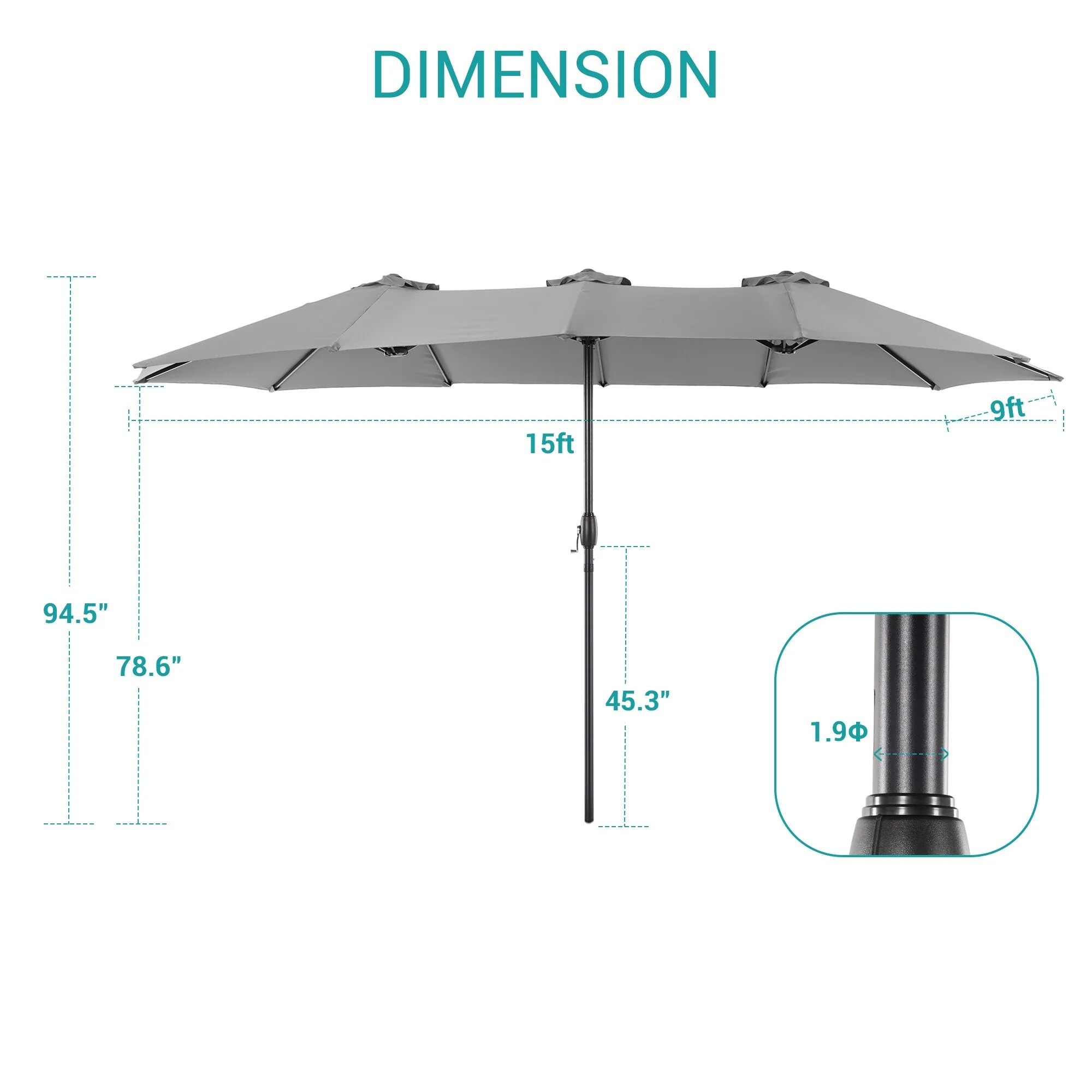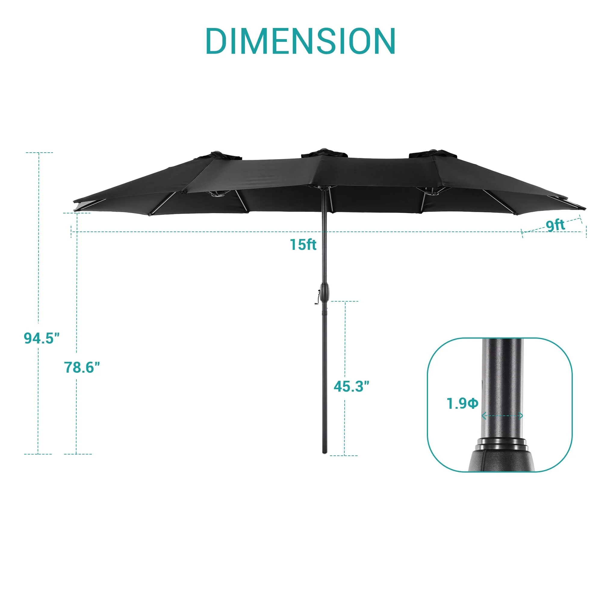 BONOSUKI 15x9ft Double-Sided Patio Umbrella Aluminum with Large Canopy