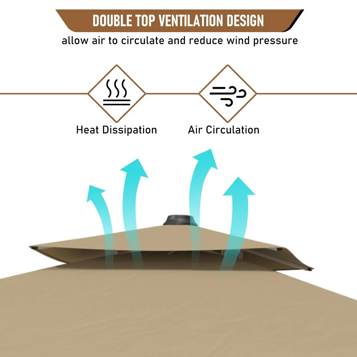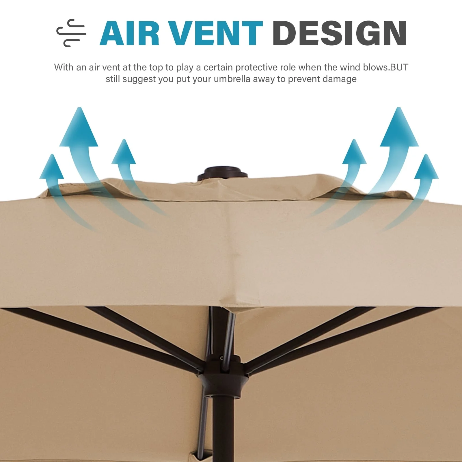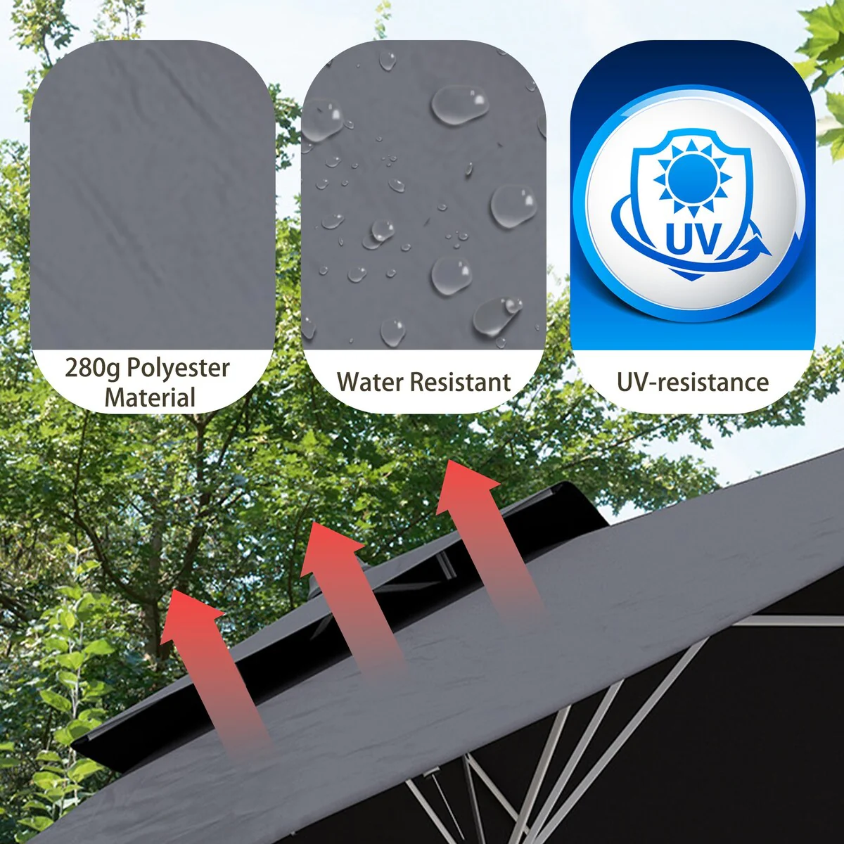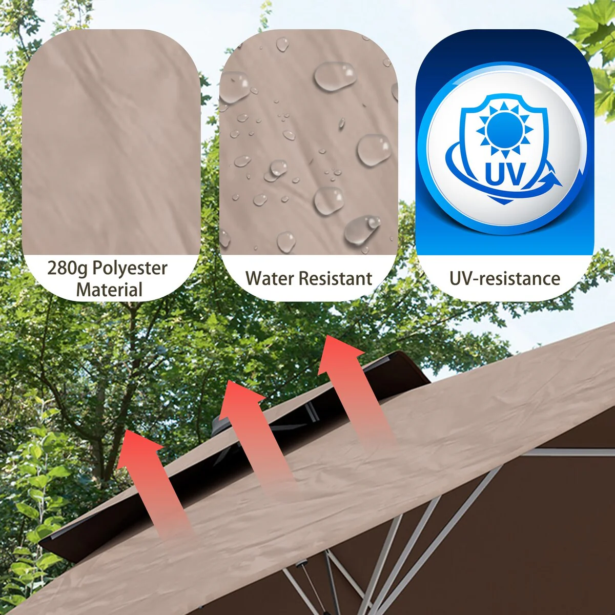 SAFAVIEH Outdoor Livia 9Ft Double Top Market Umbrella, Base Not Included