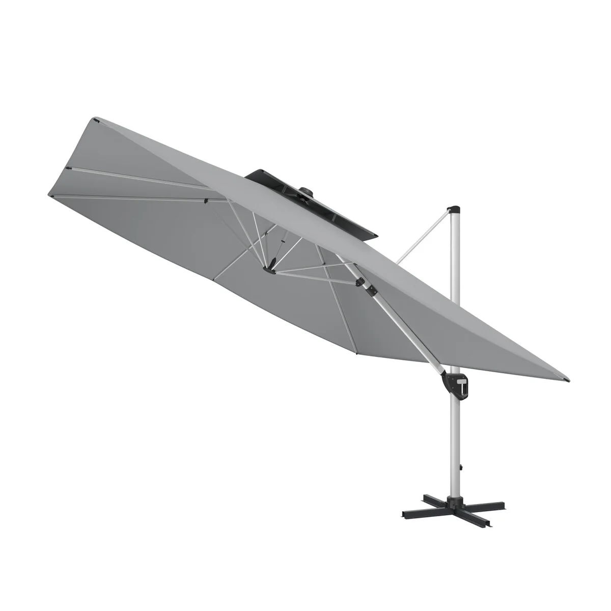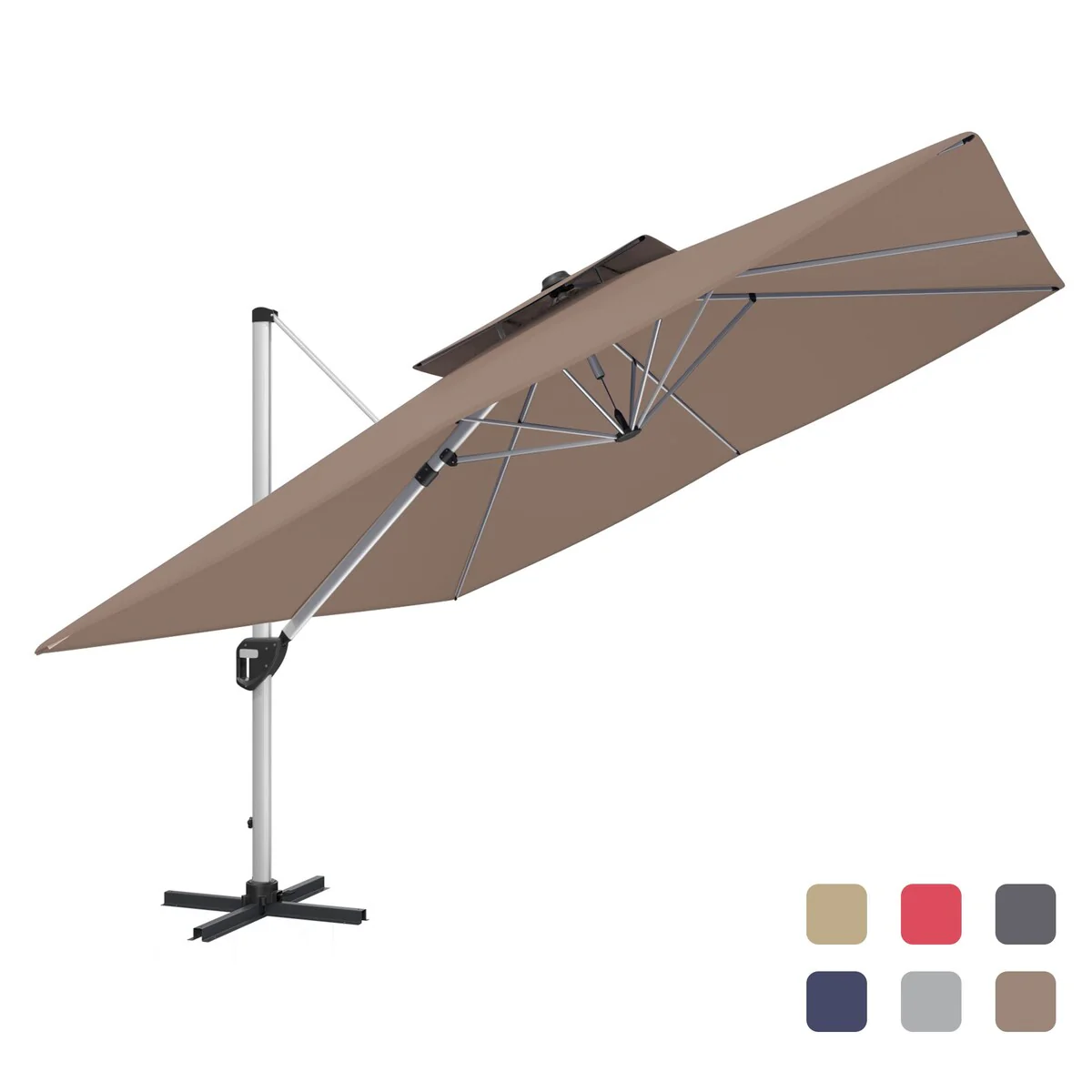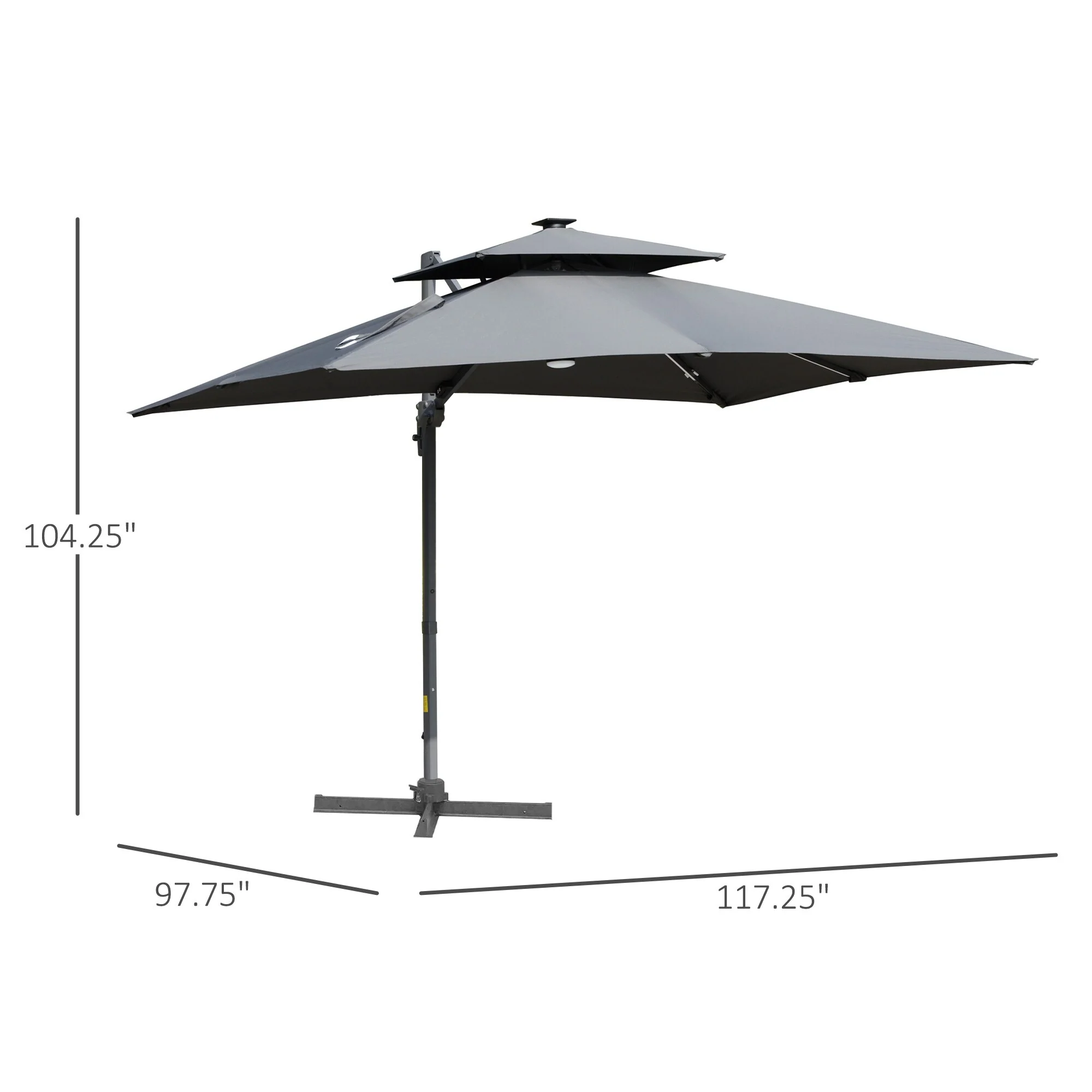 Outsunny 10ft Solar LED Patio Umbrella, Offset Hanging Umbrella with 360�� Rotation, Cross Base, 8 Ribs, Tilt and Crank