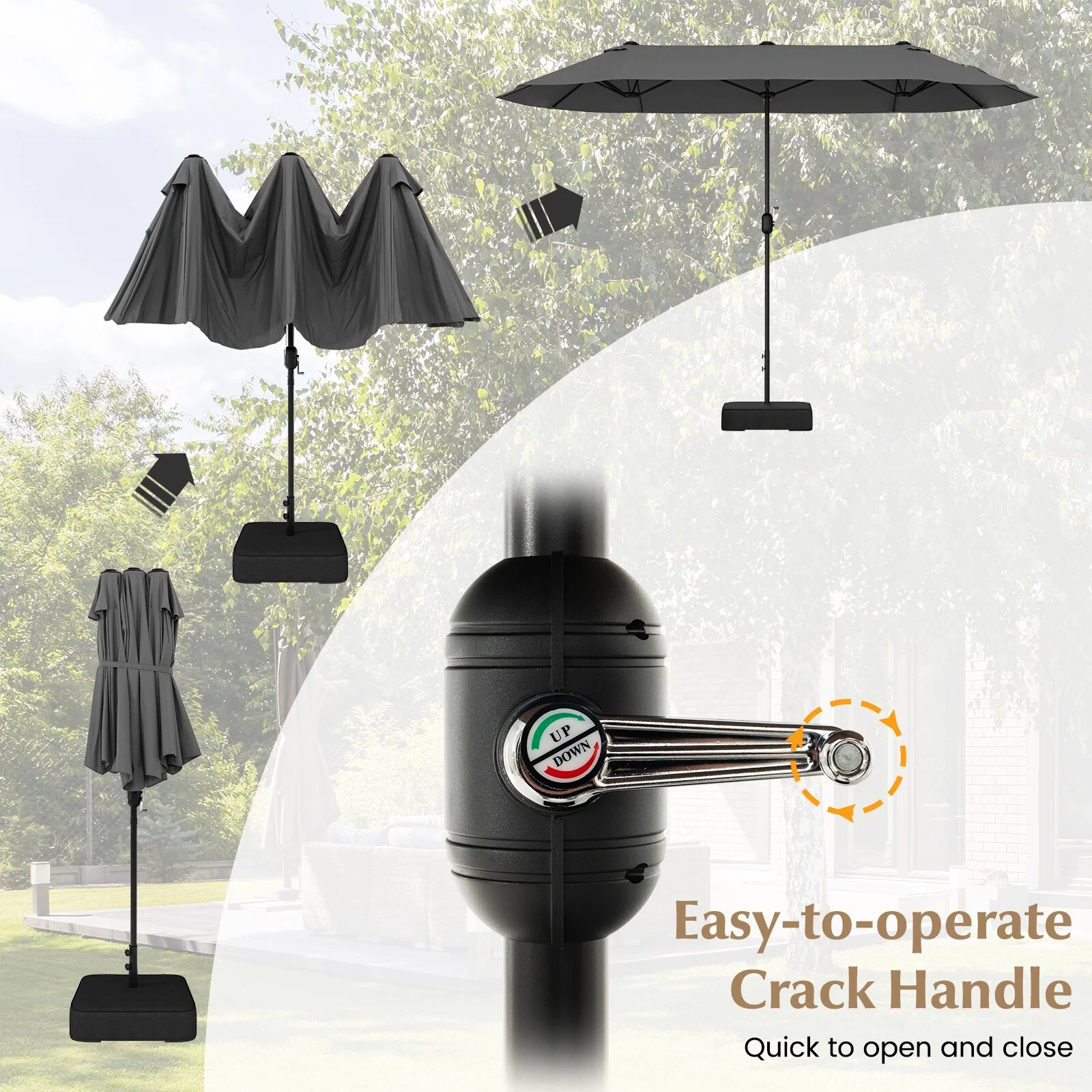 Gymax 13FT Double-sided Patio Umbrella w/ Crank Handle Umbrella Base