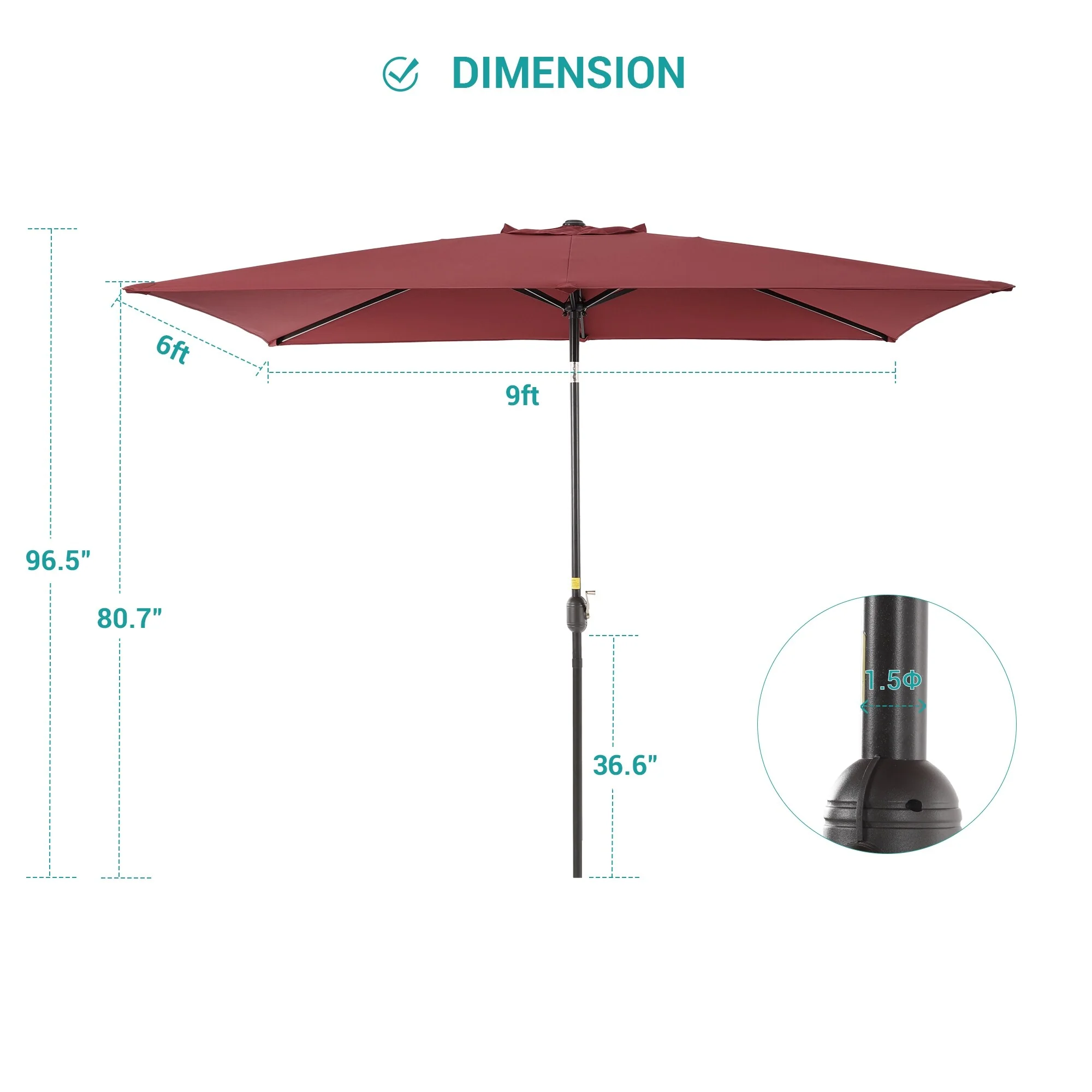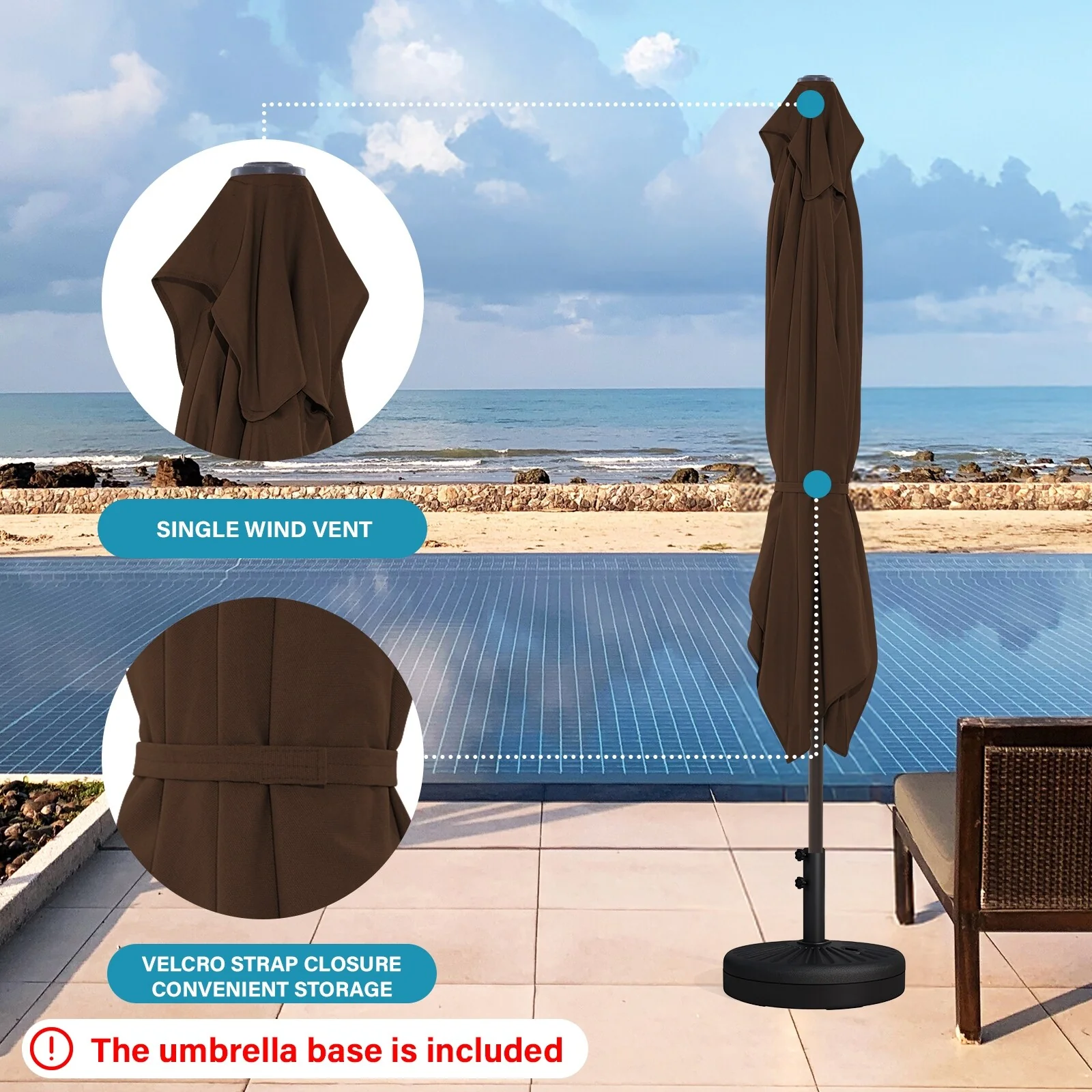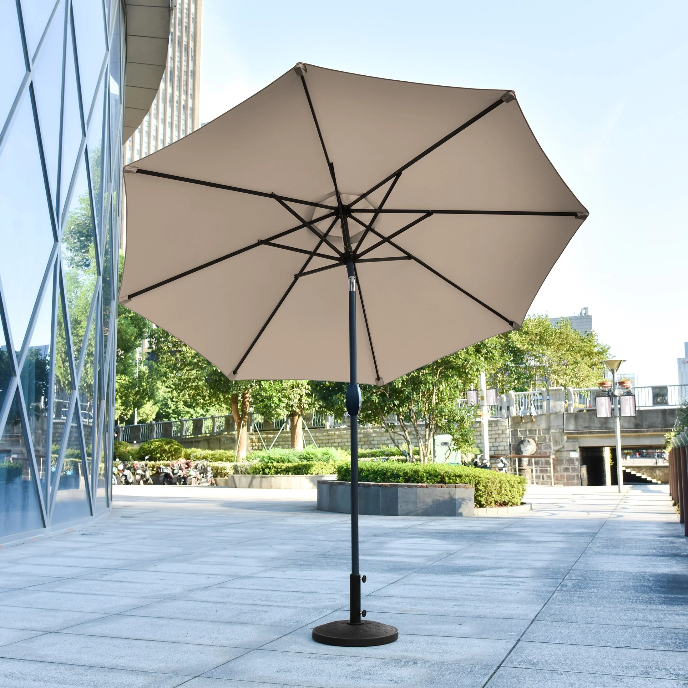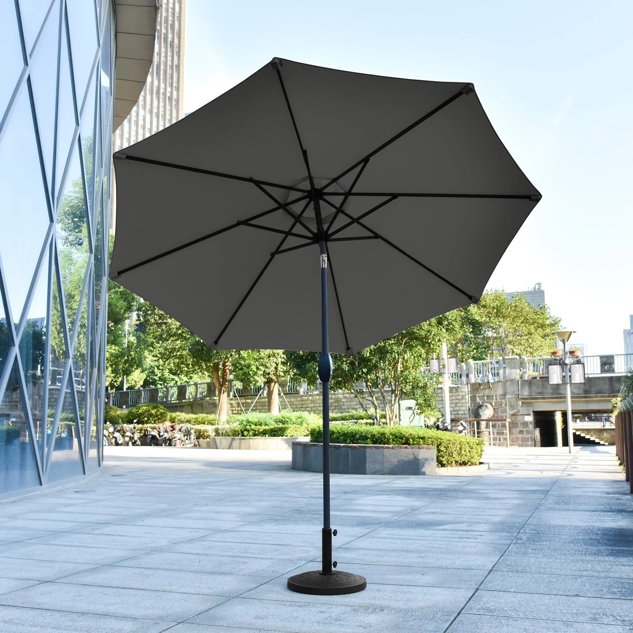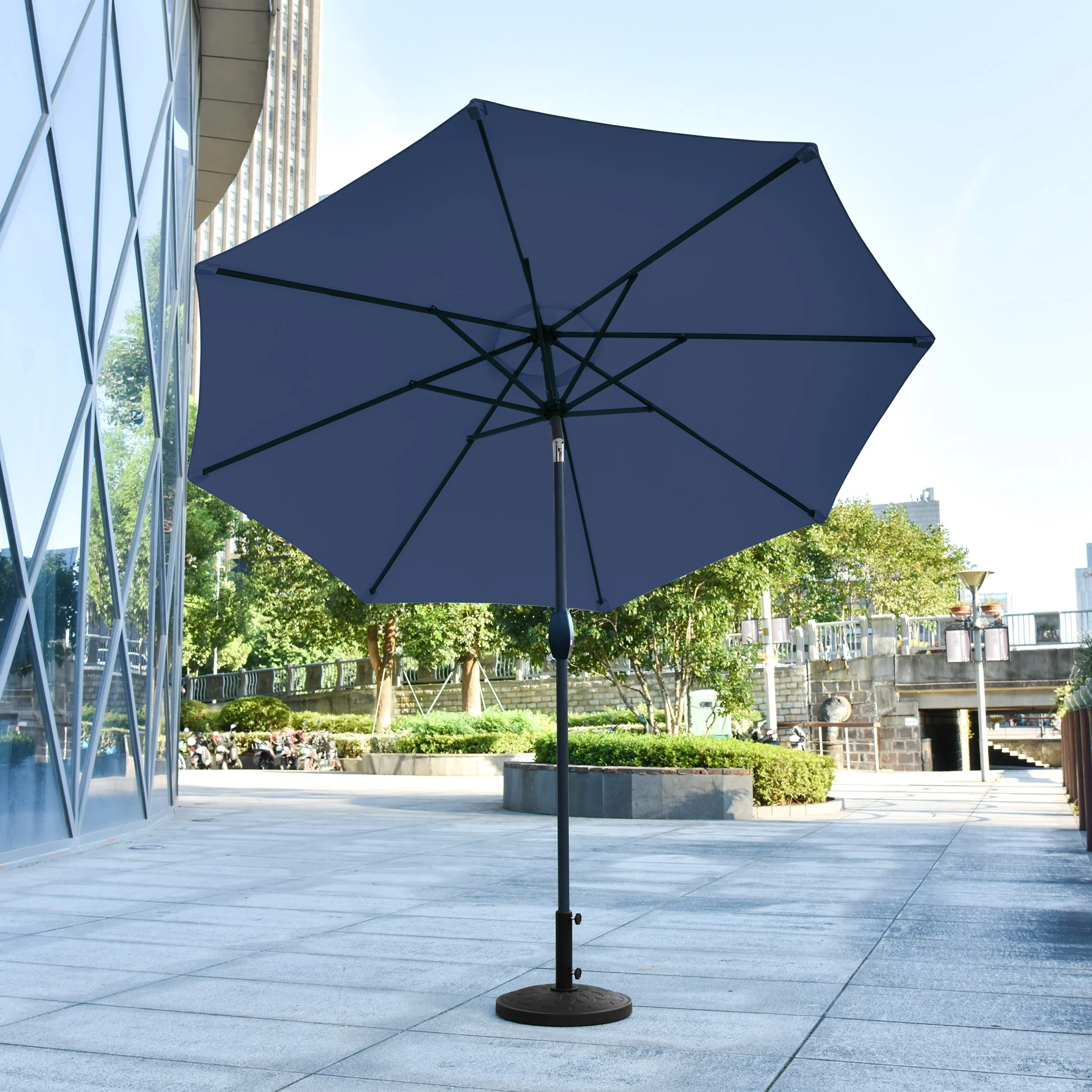 9 Ft Aluminum Patio Umbrella with Decorative Base