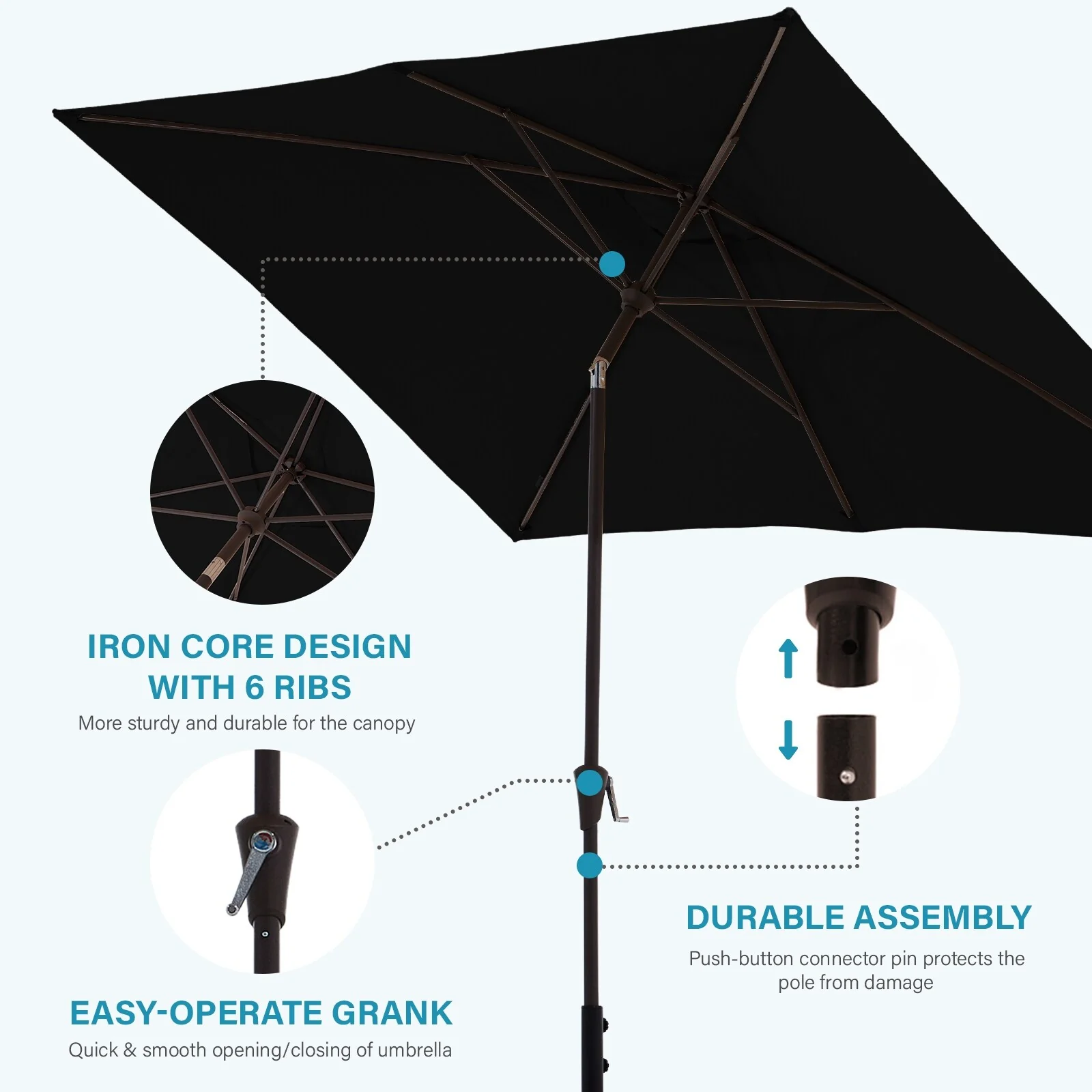 BONOSUKI 6x9FT Patio Market Umbrellas Table Umbrella with Tilt Button
