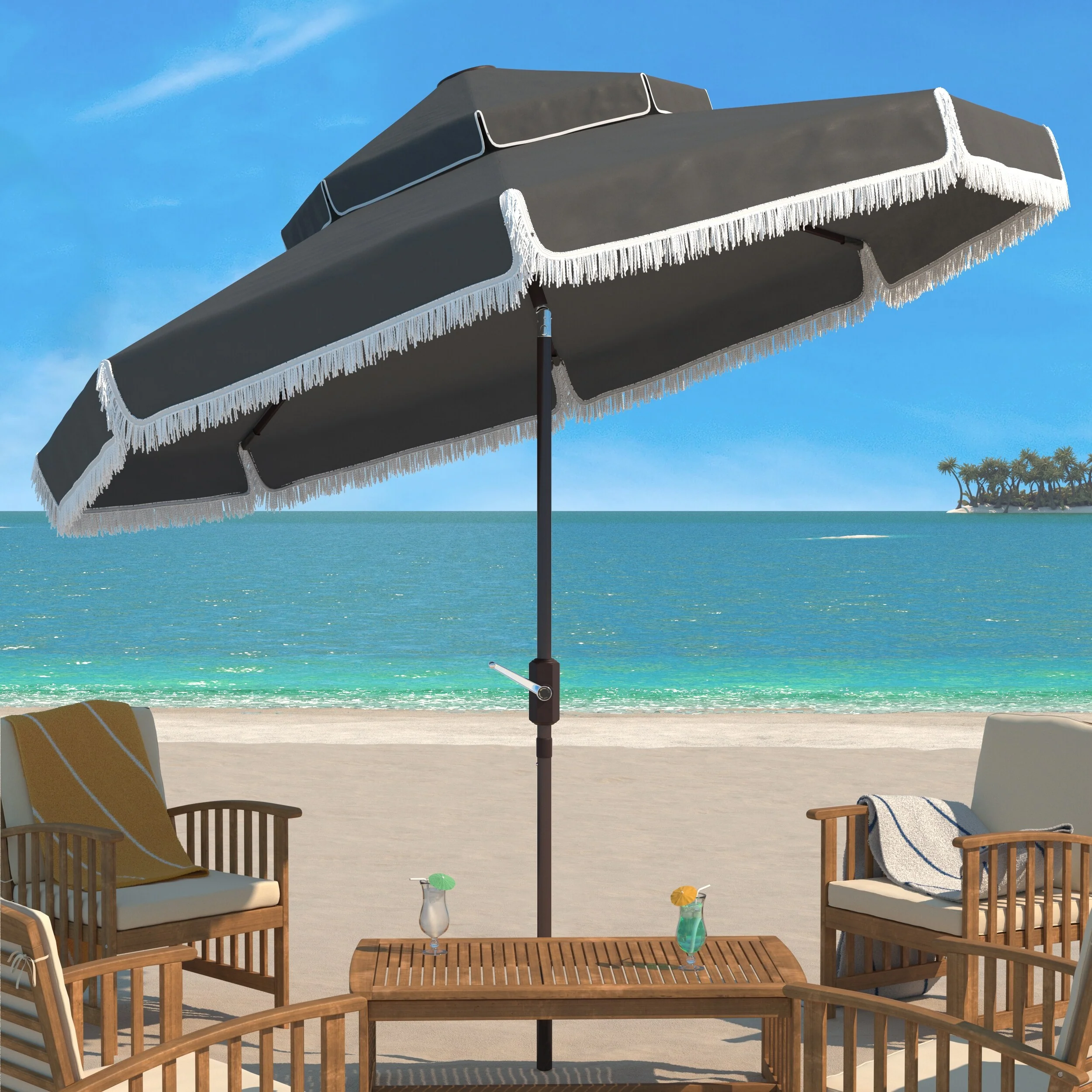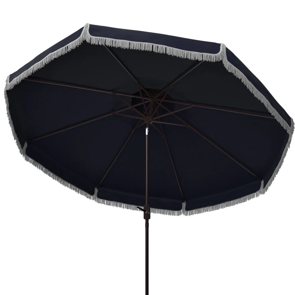 SAFAVIEH Outdoor Dima Fringe 11Ft Round Crank Umbrella