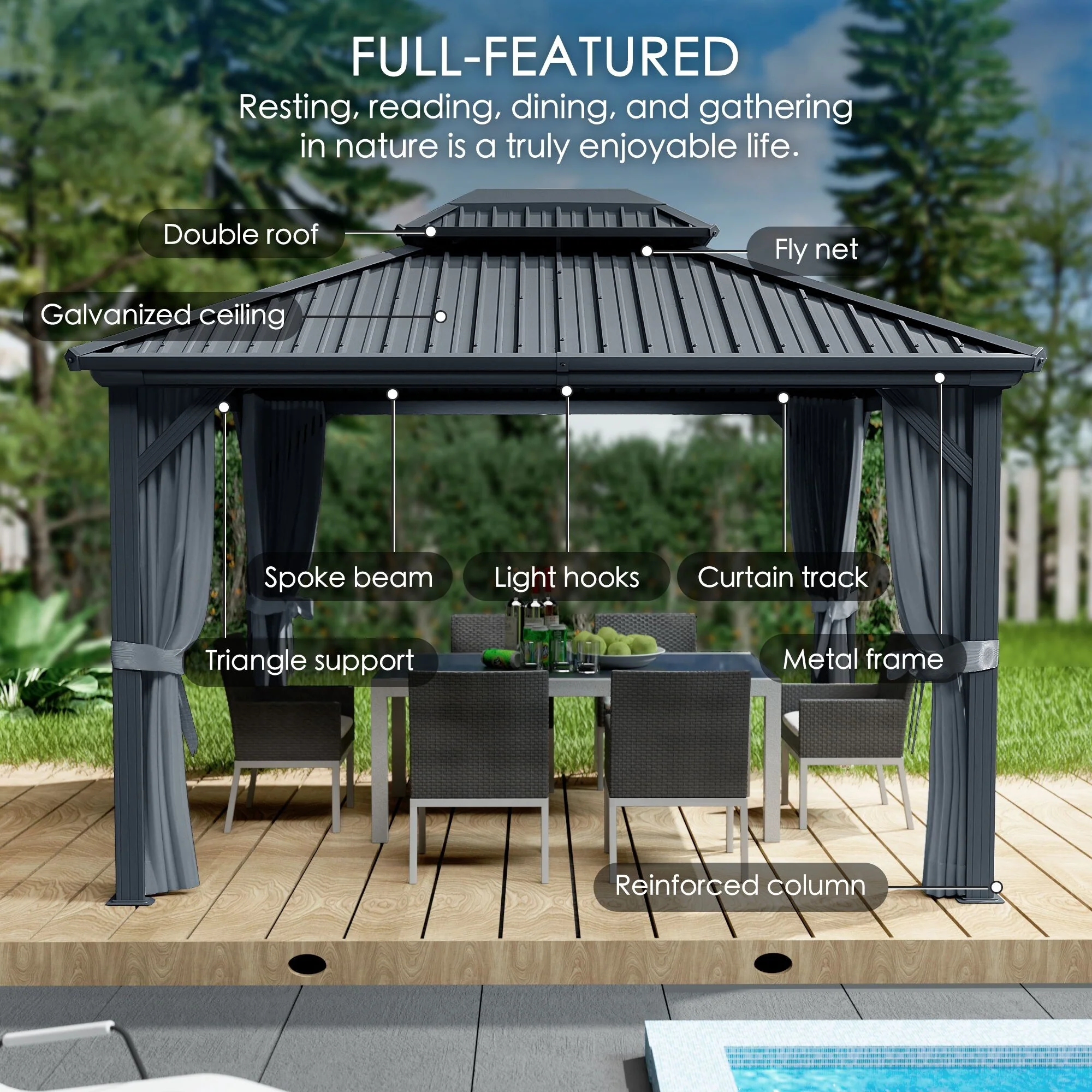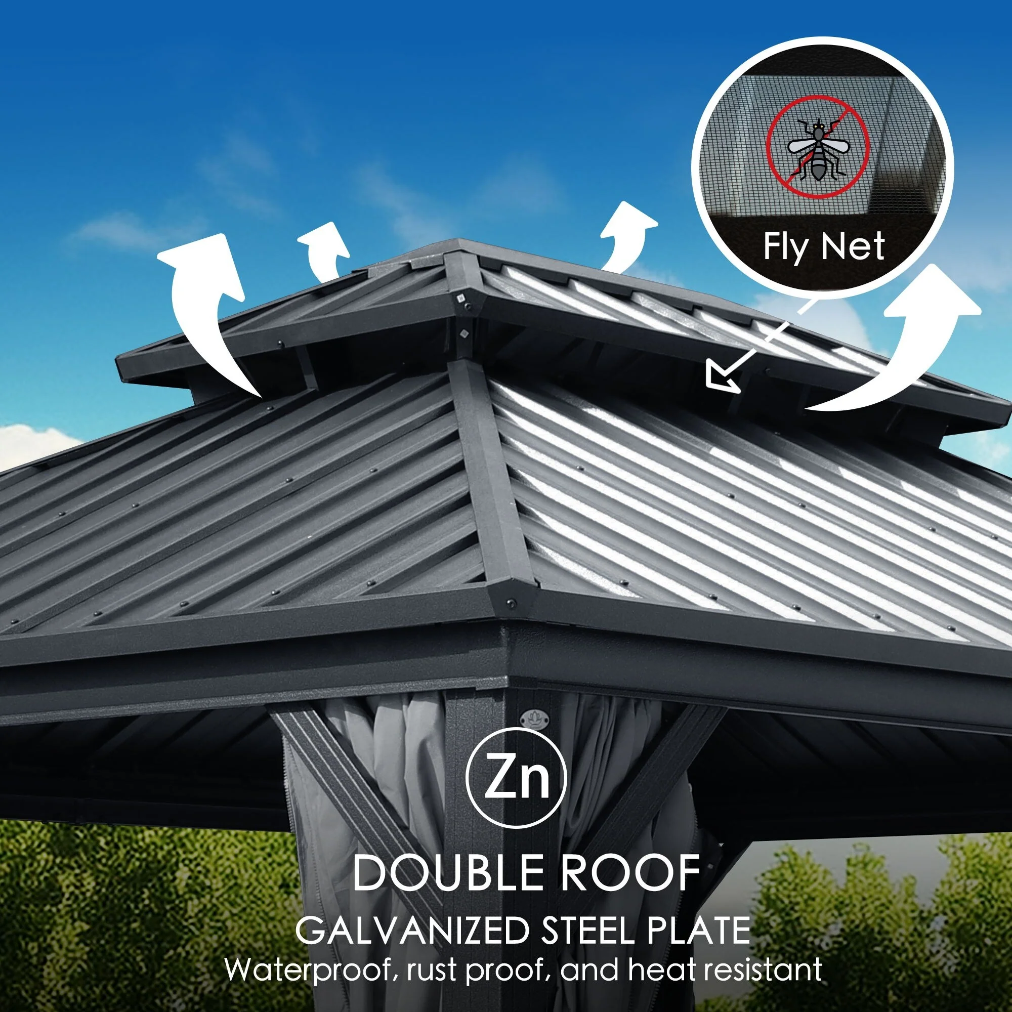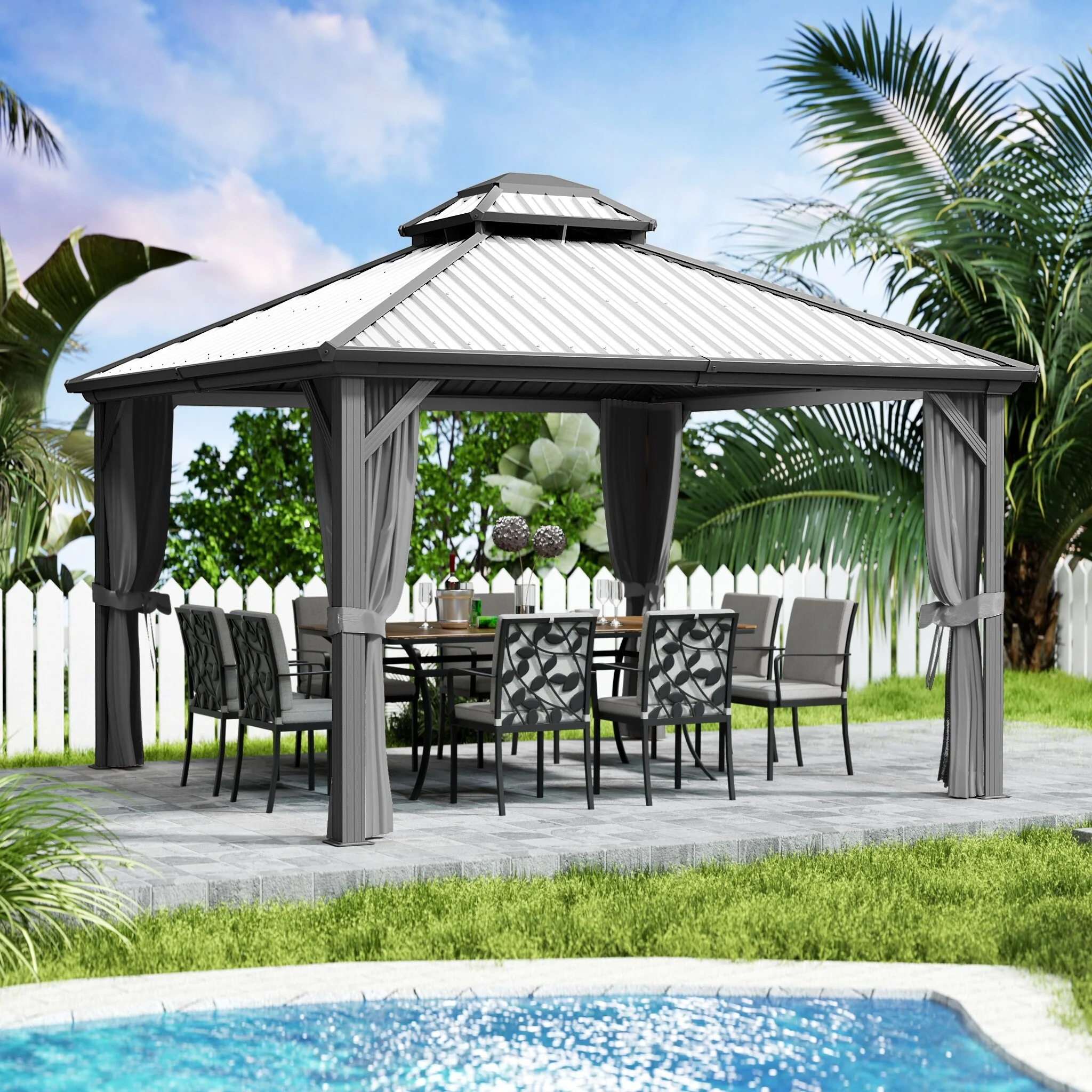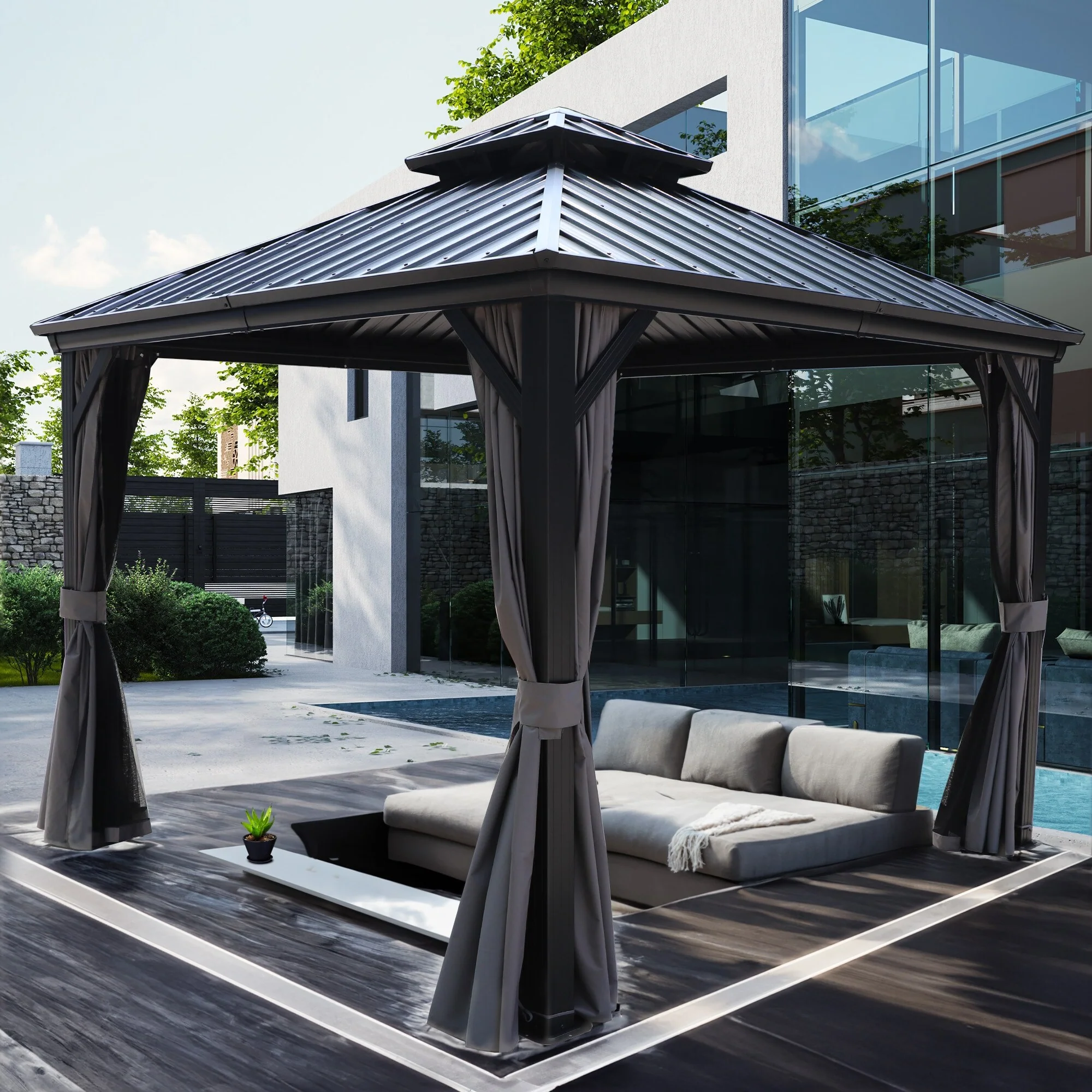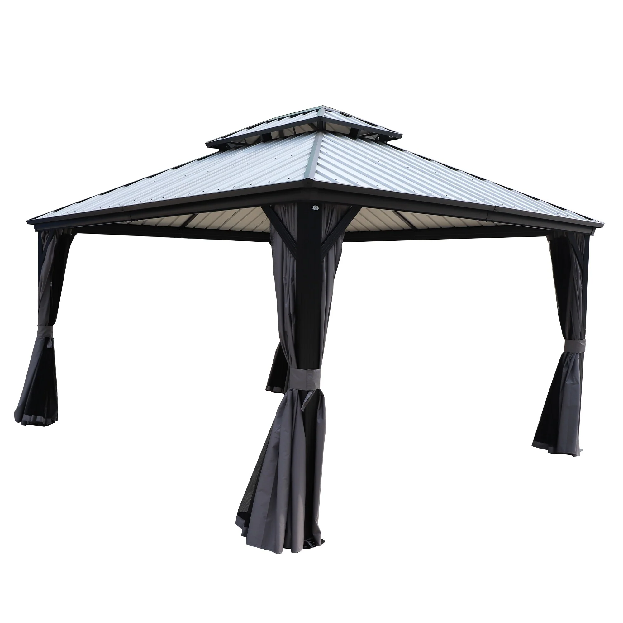 Kozyard Caesar Hardtop Gazebo with Steel Roof, Netting and Curtain