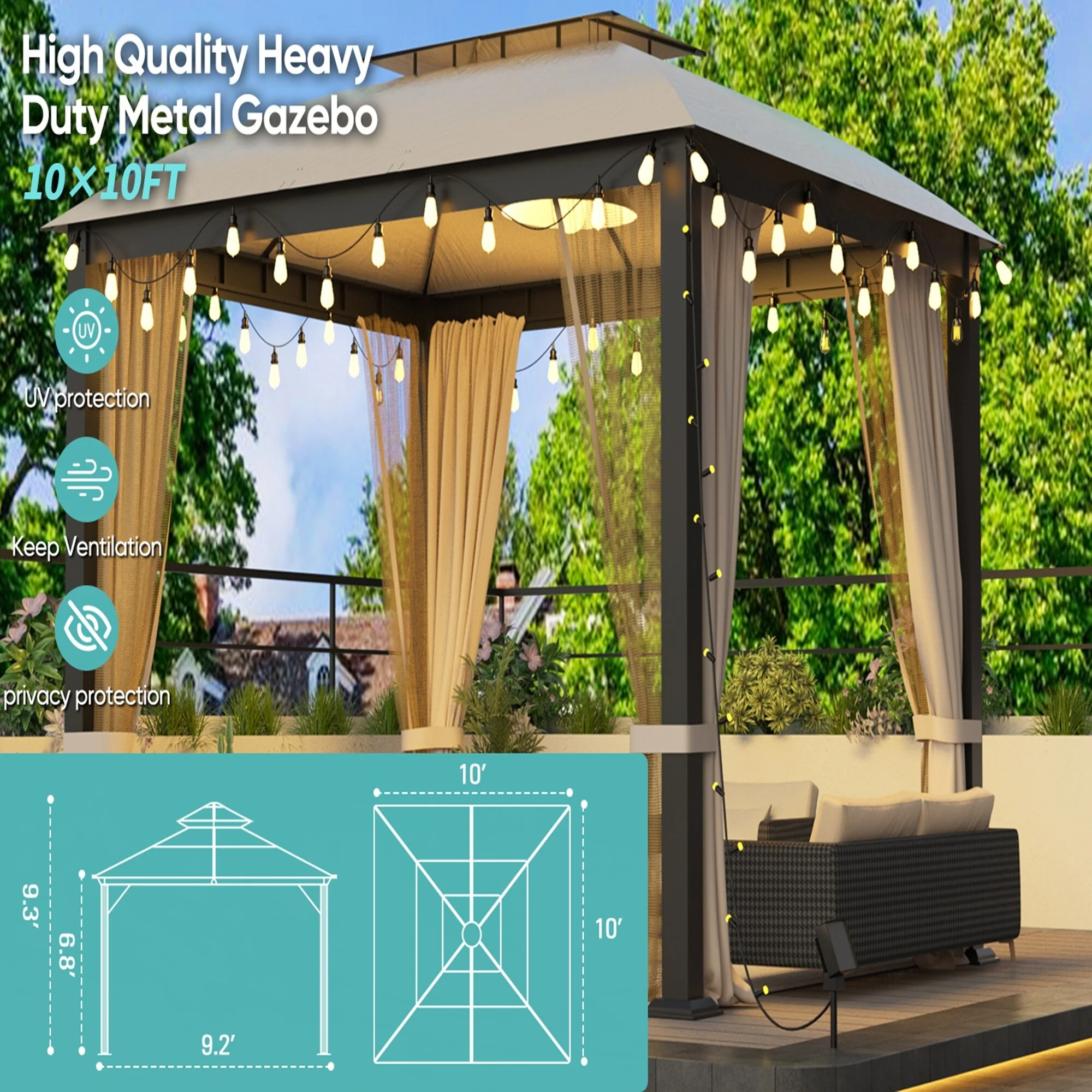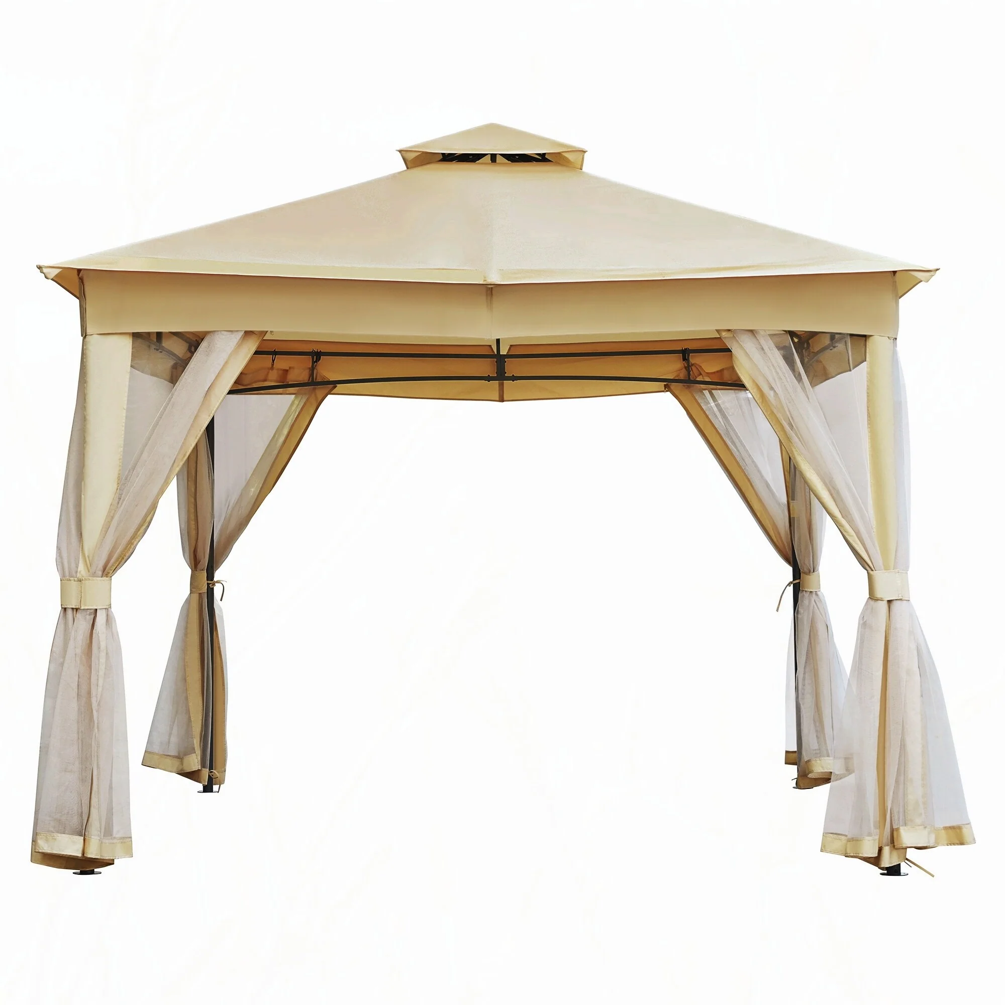 10X10FT Softtop Metal Gazebo with Mosquito Net,Sunshade Curtains