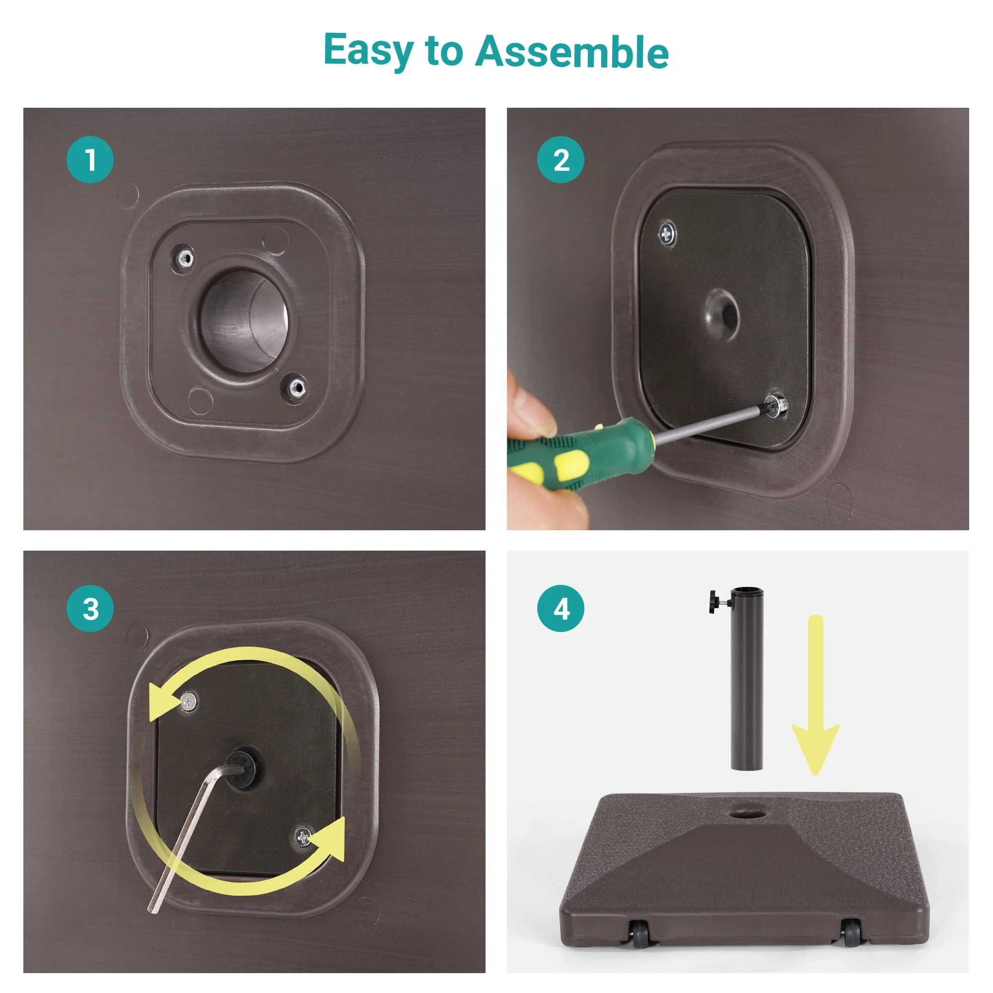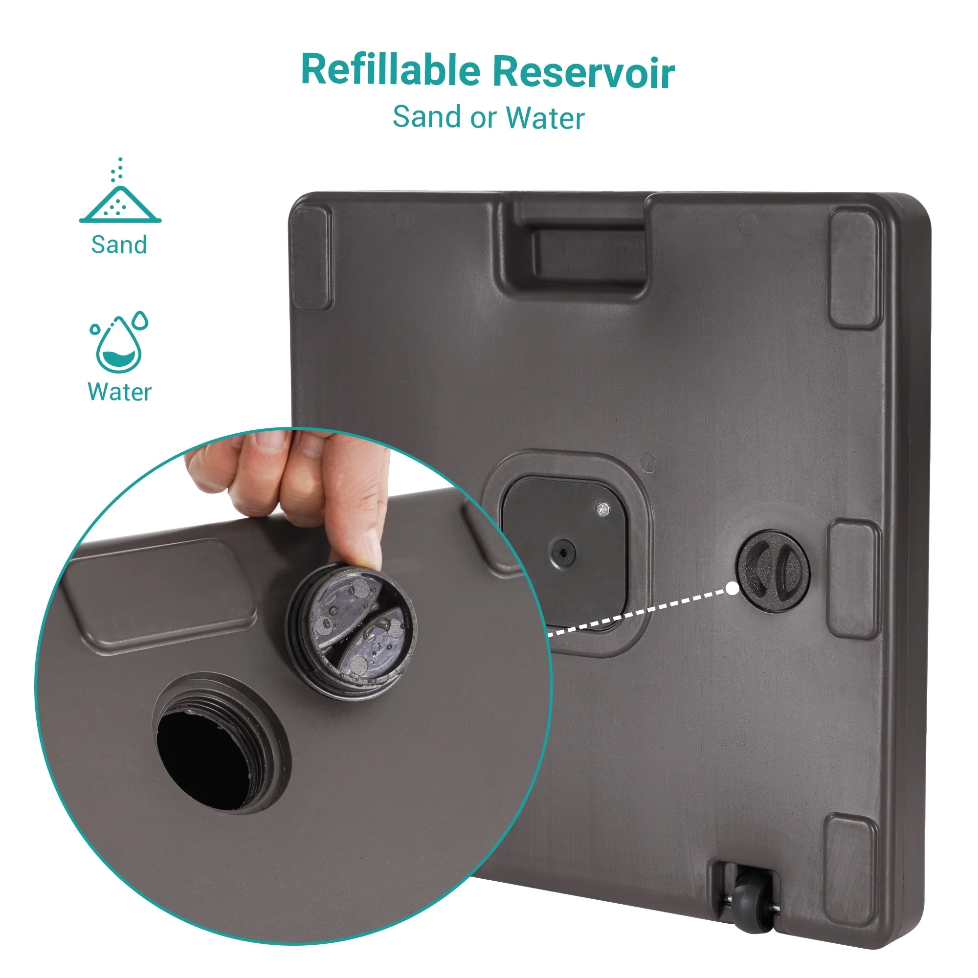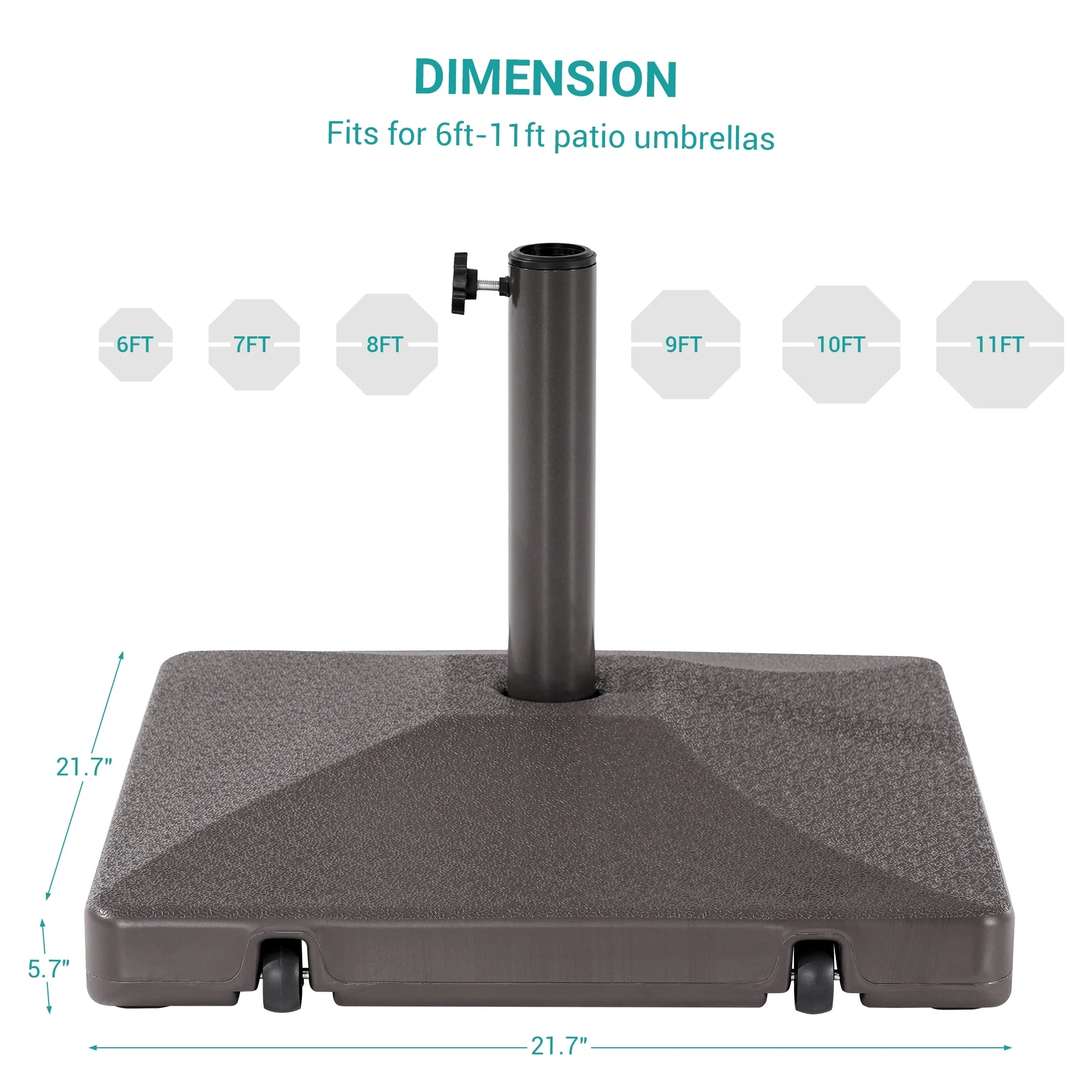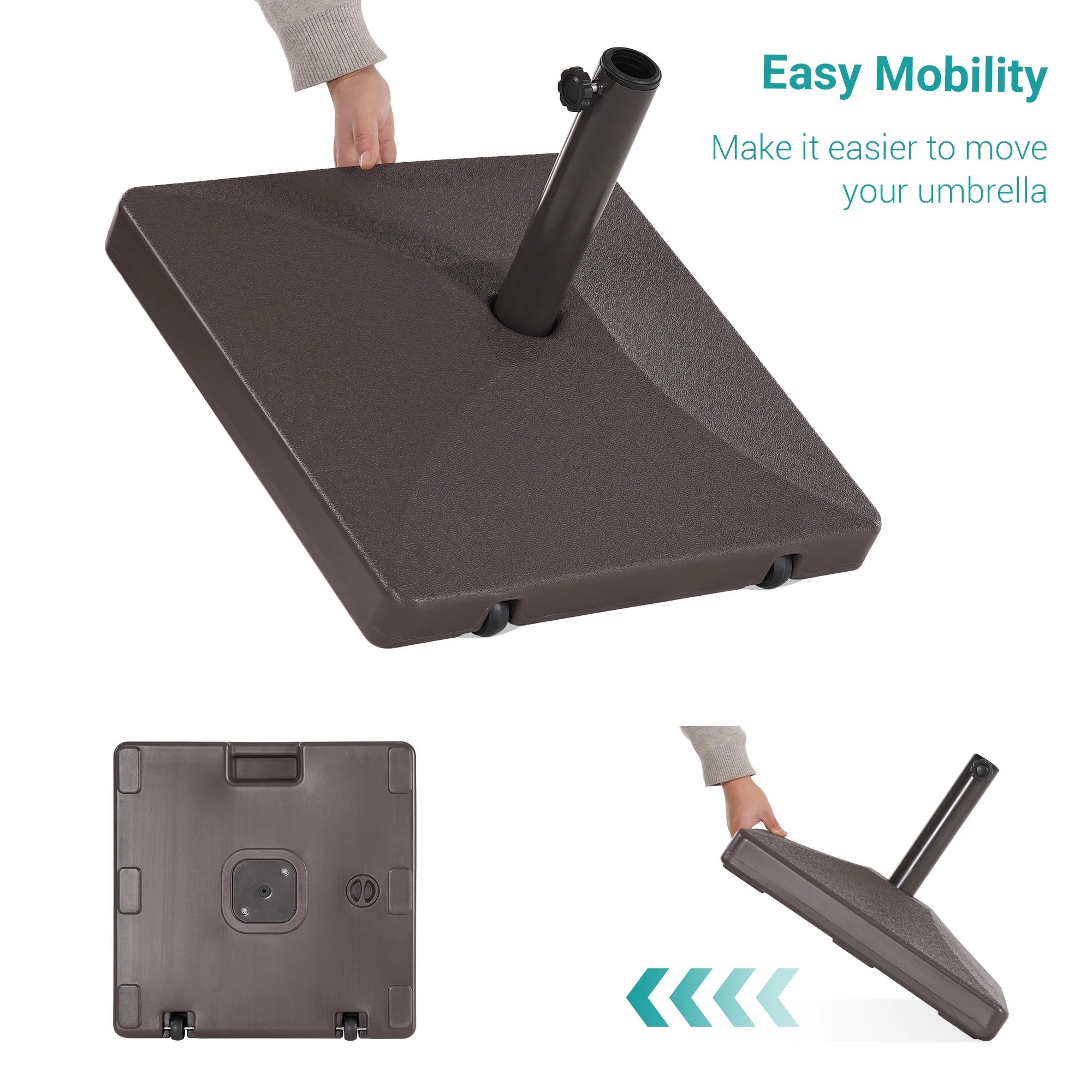 Roomfitters Square Rolling Umbrella Base, Heavy-Duty Wheeled Patio Stand, Teal