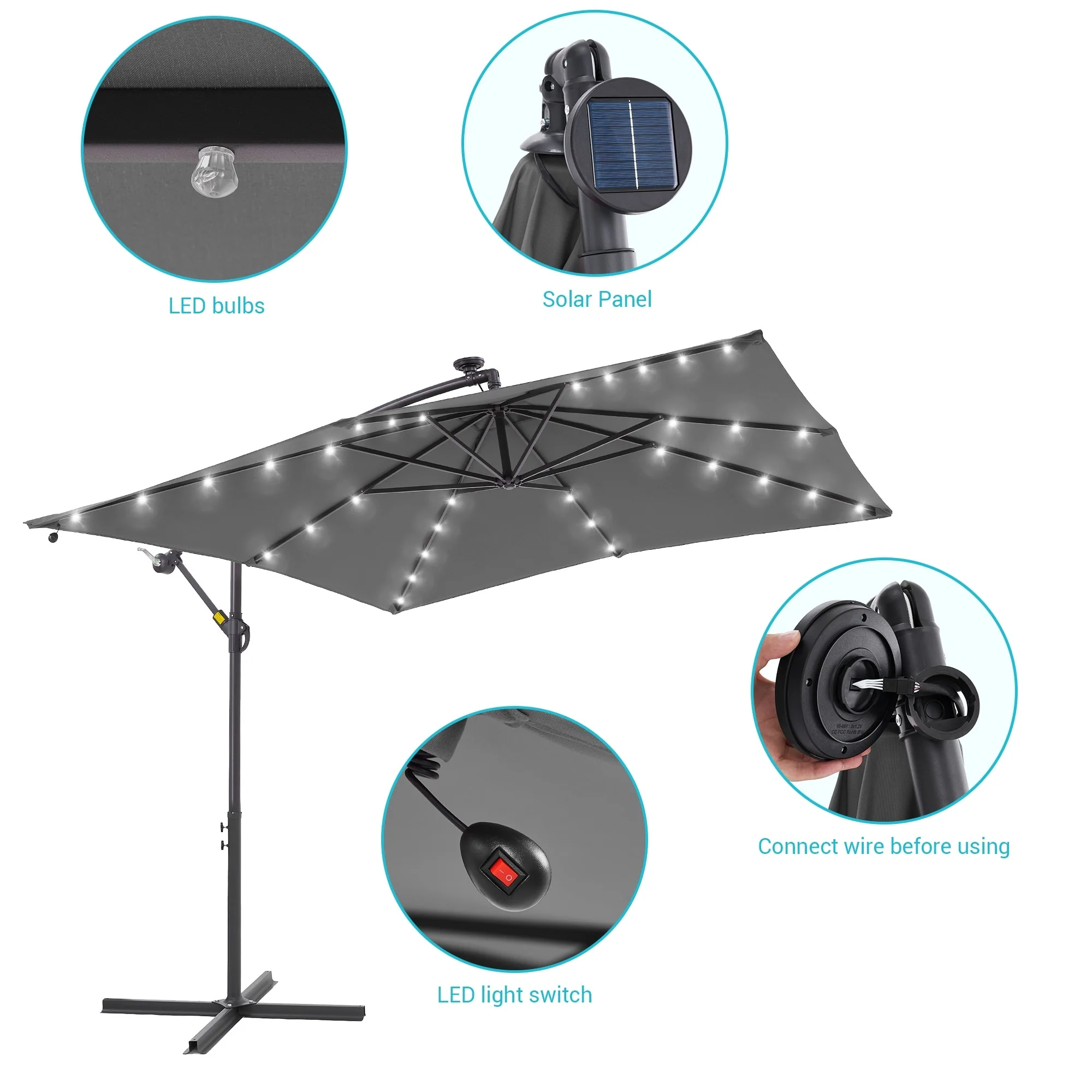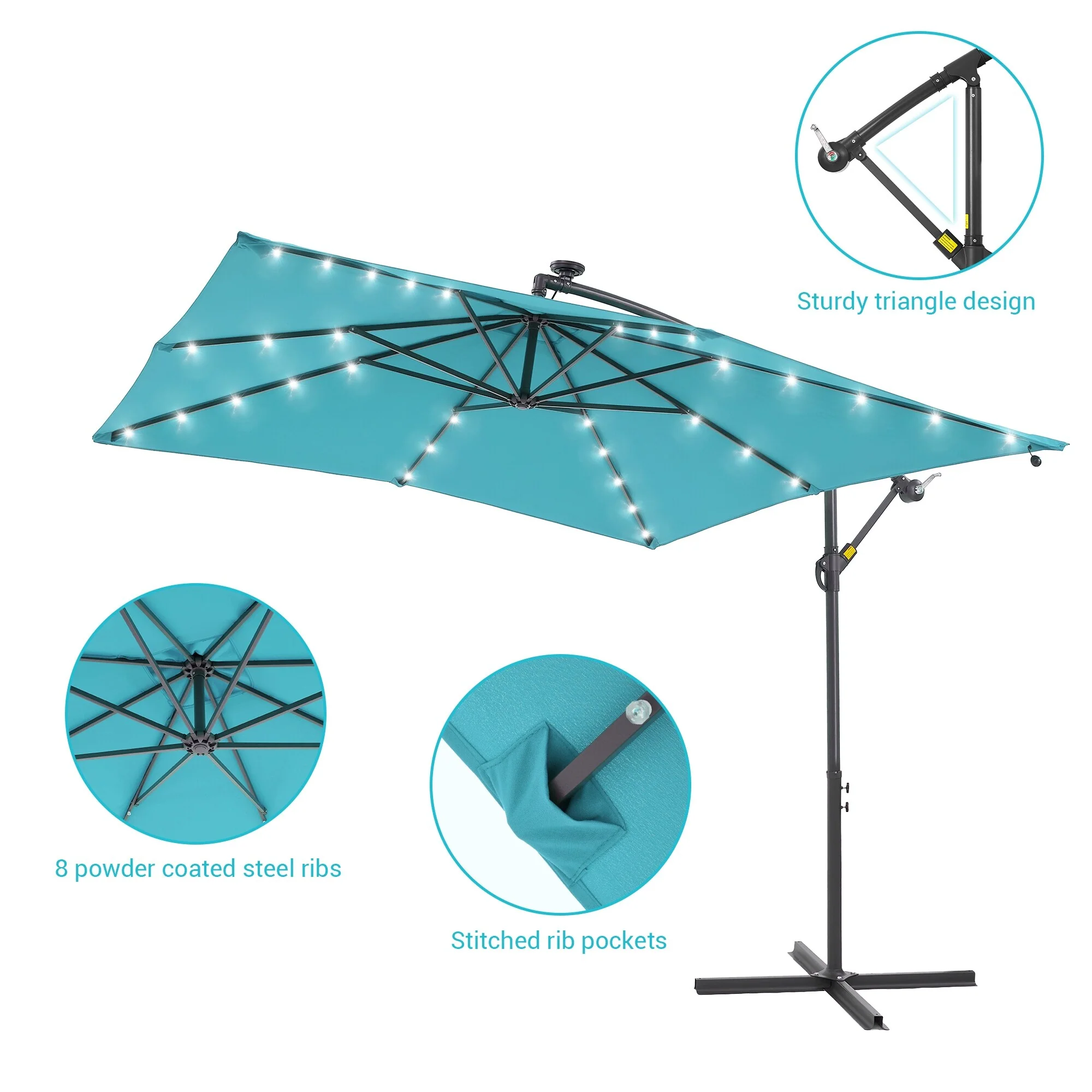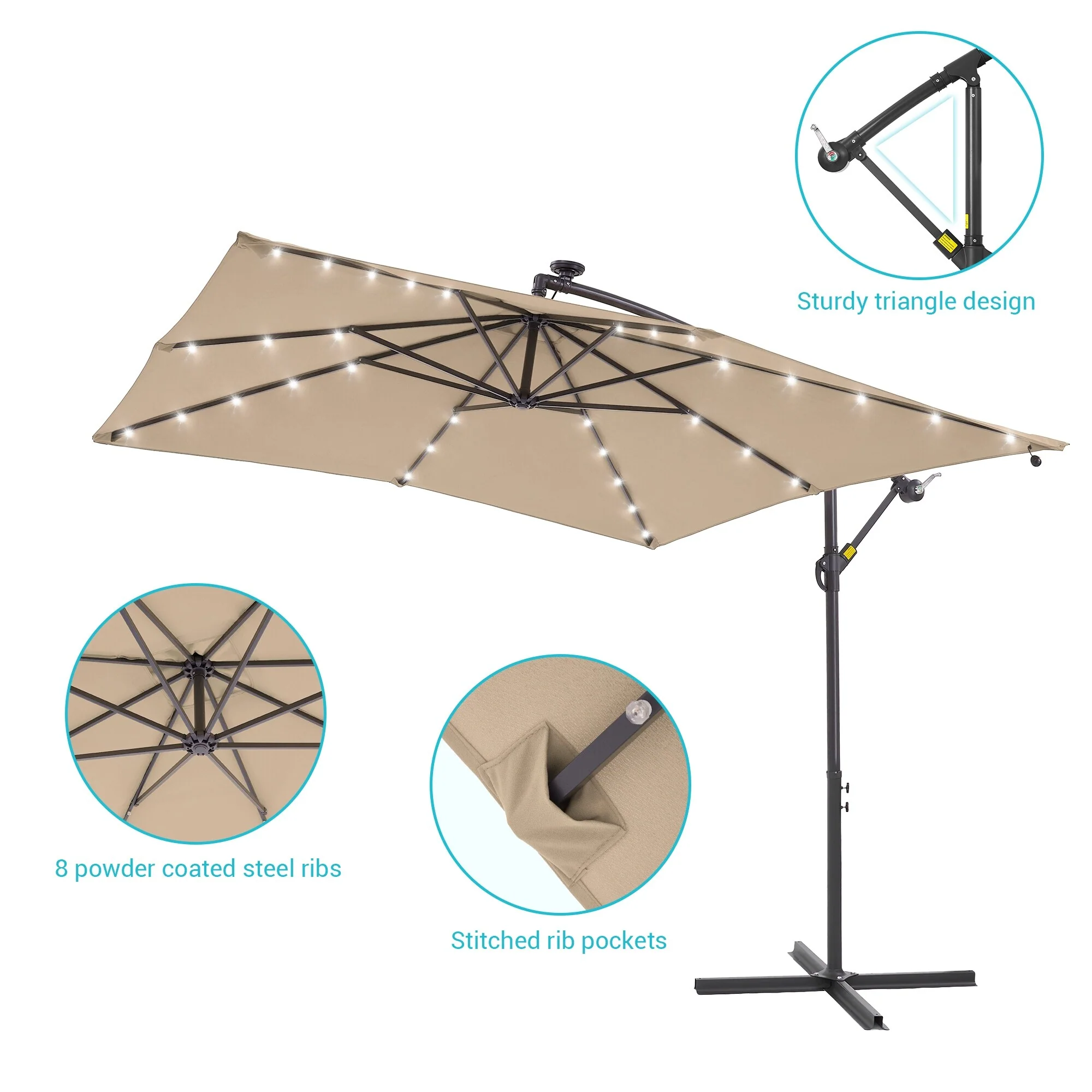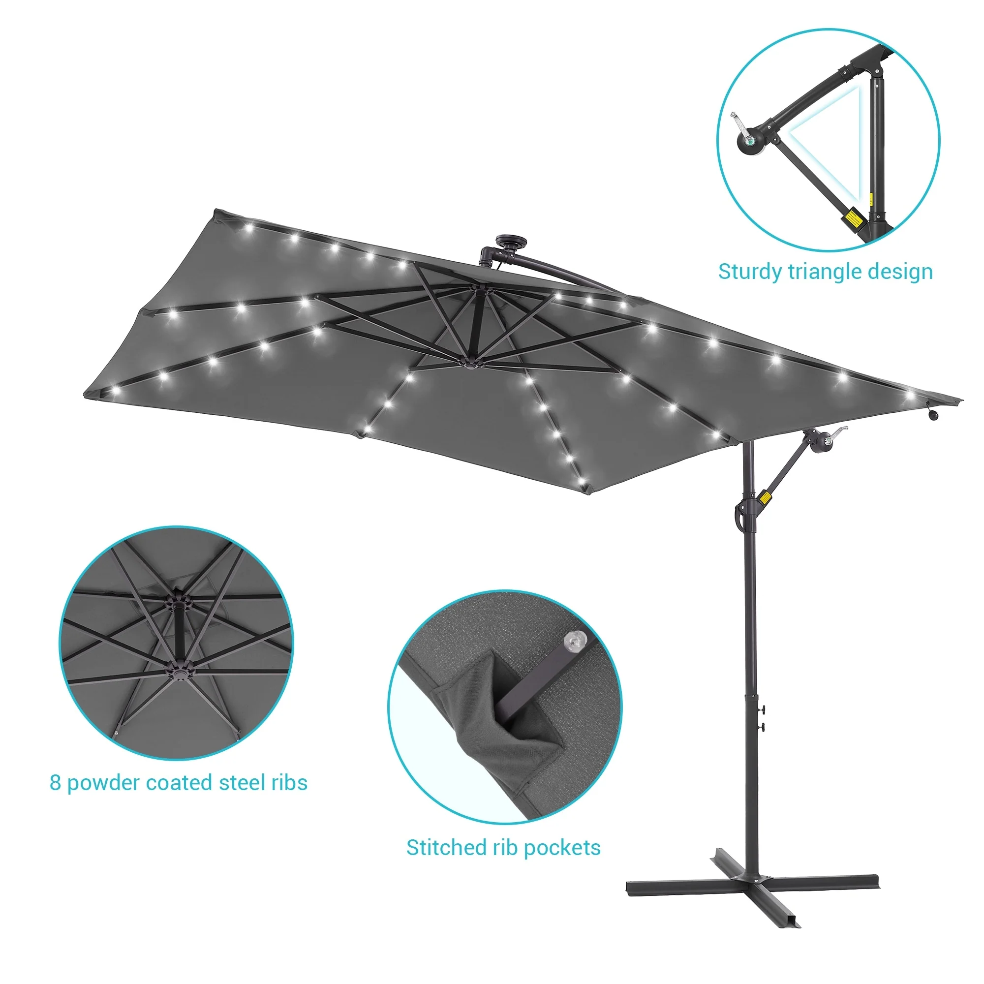 BONOSUKI Patio 8.2Ft LED Offset Umbrella,8 Steel Ribs w/Cross Base