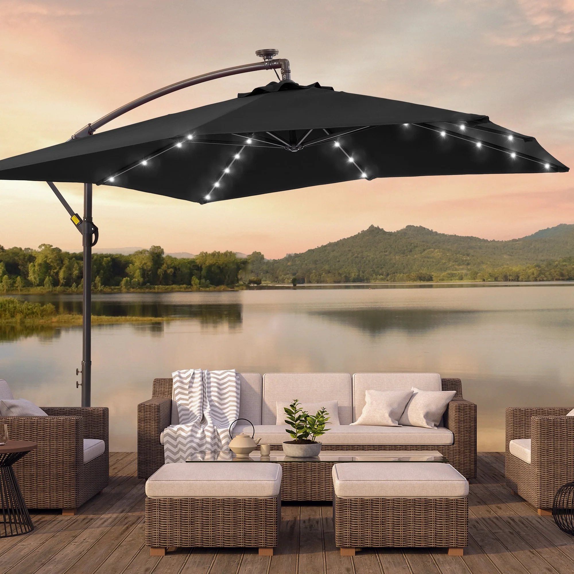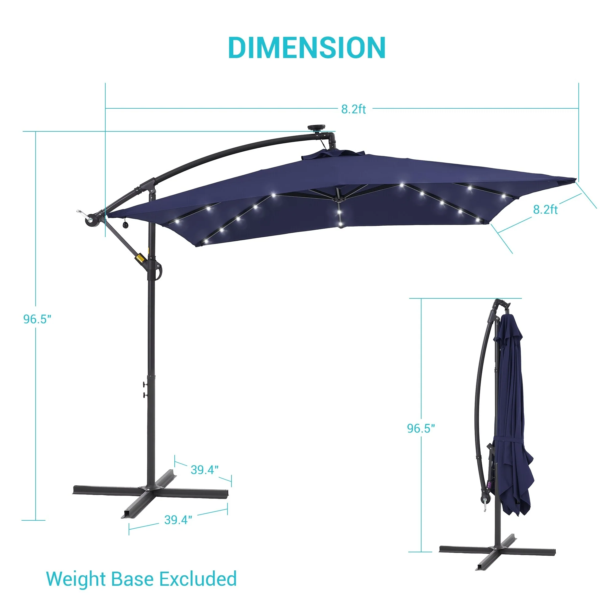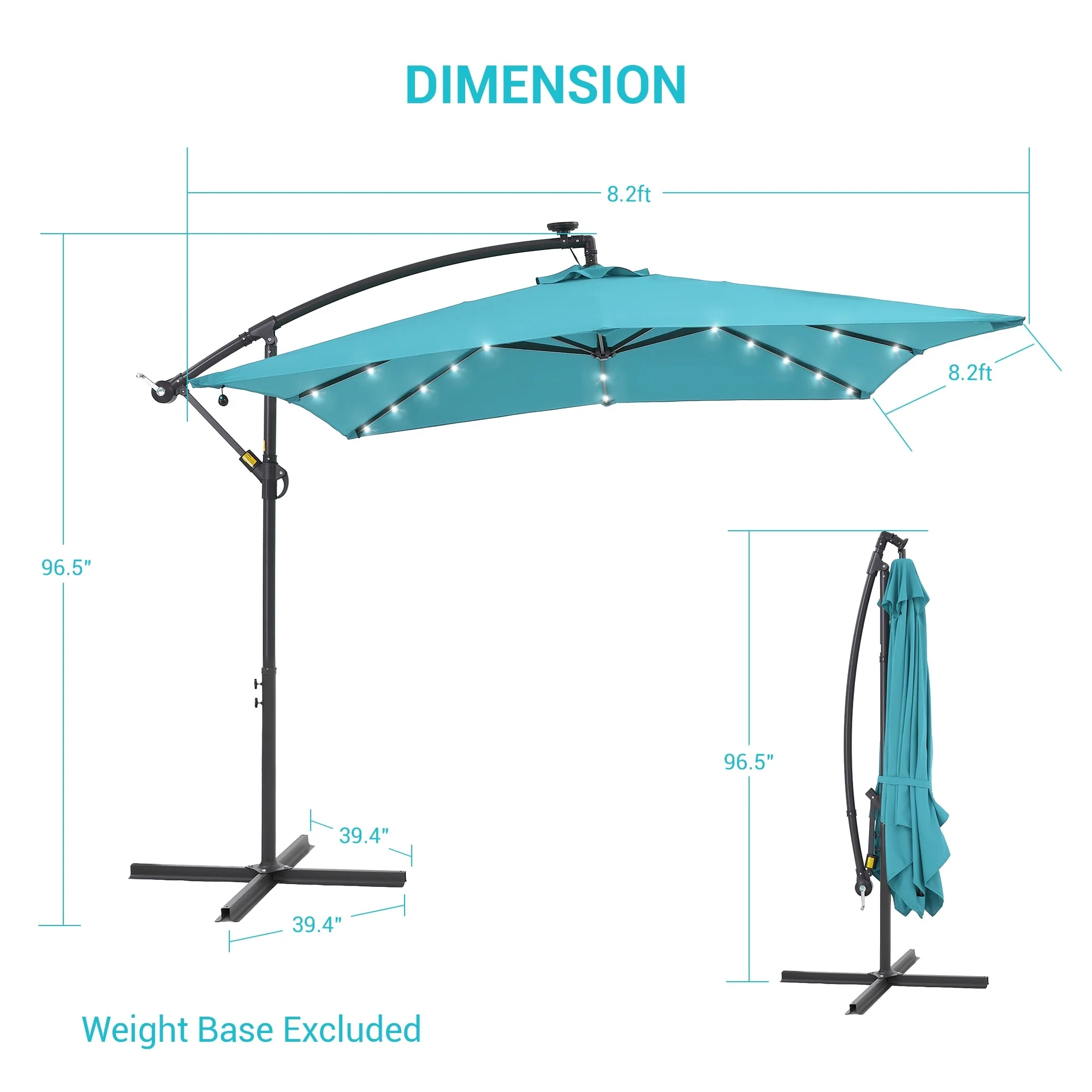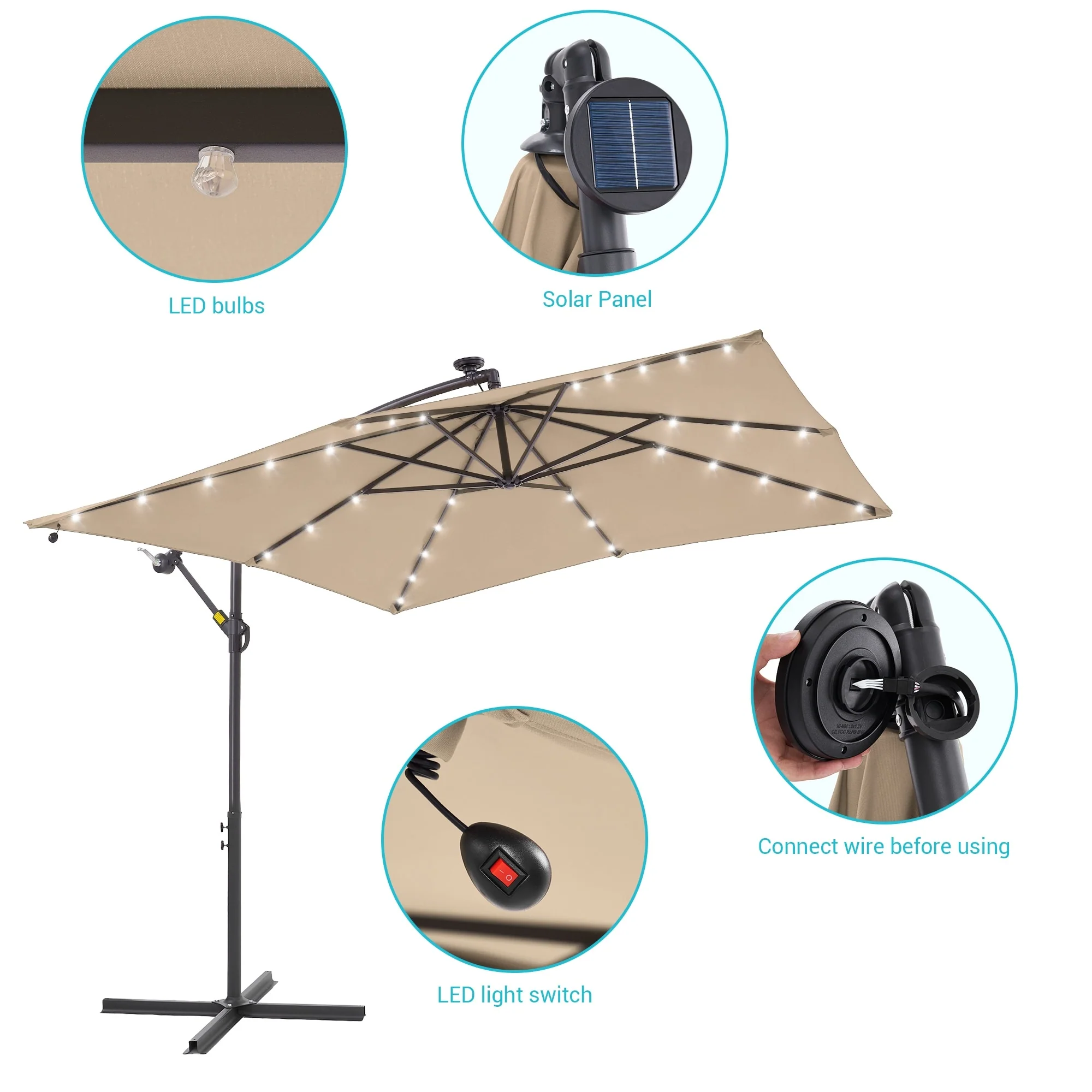 BONOSUKI Patio 8.2Ft LED Offset Umbrella,8 Steel Ribs w/Cross Base