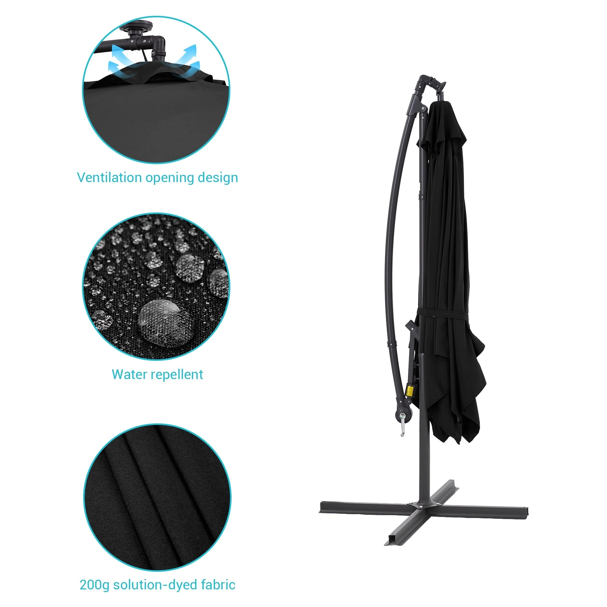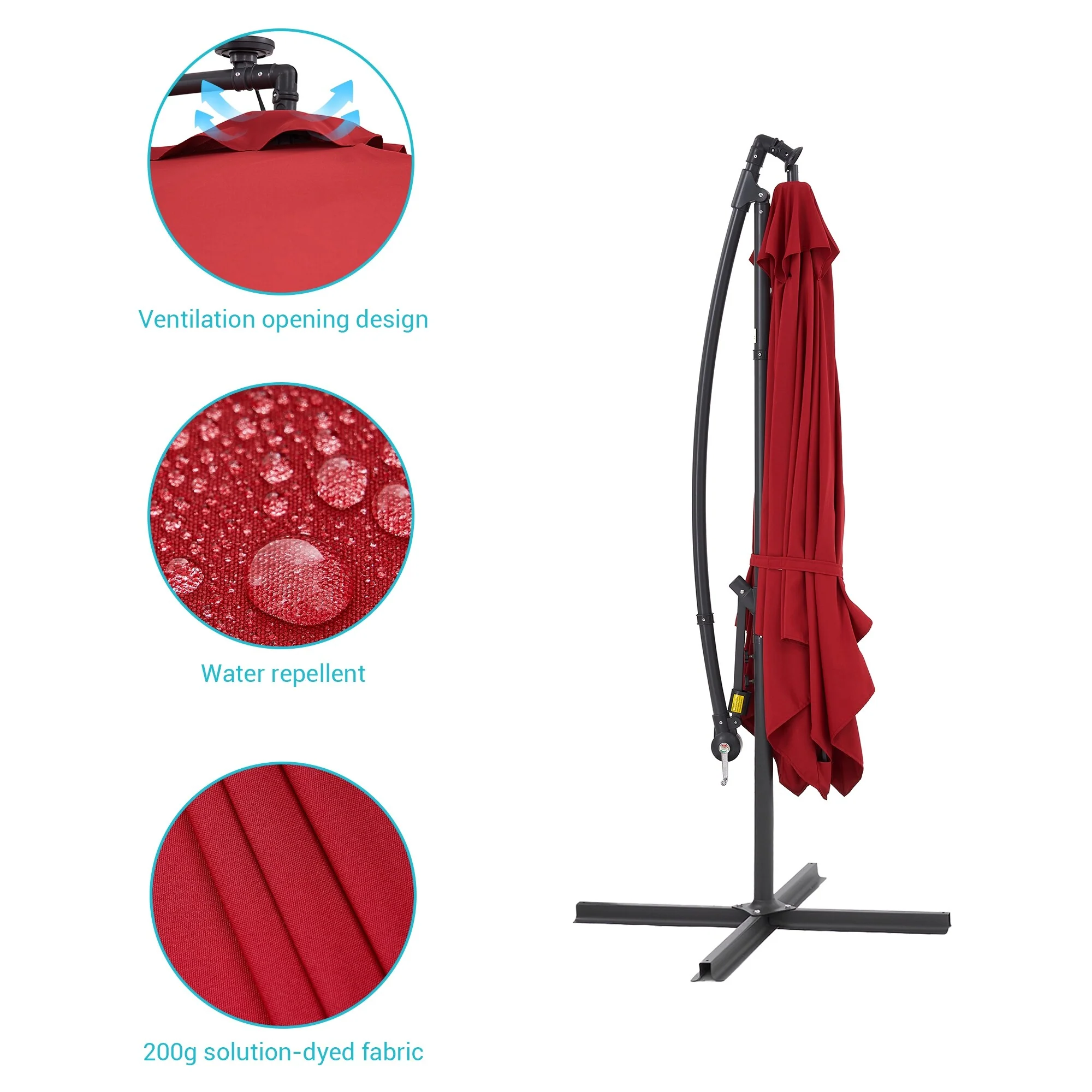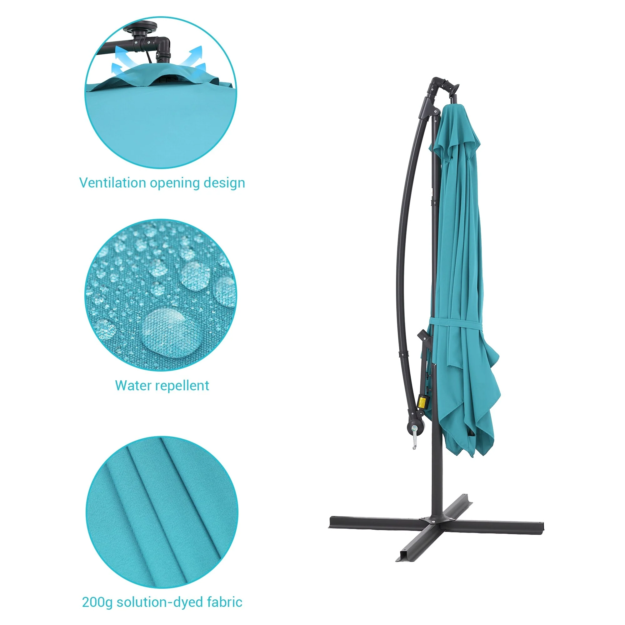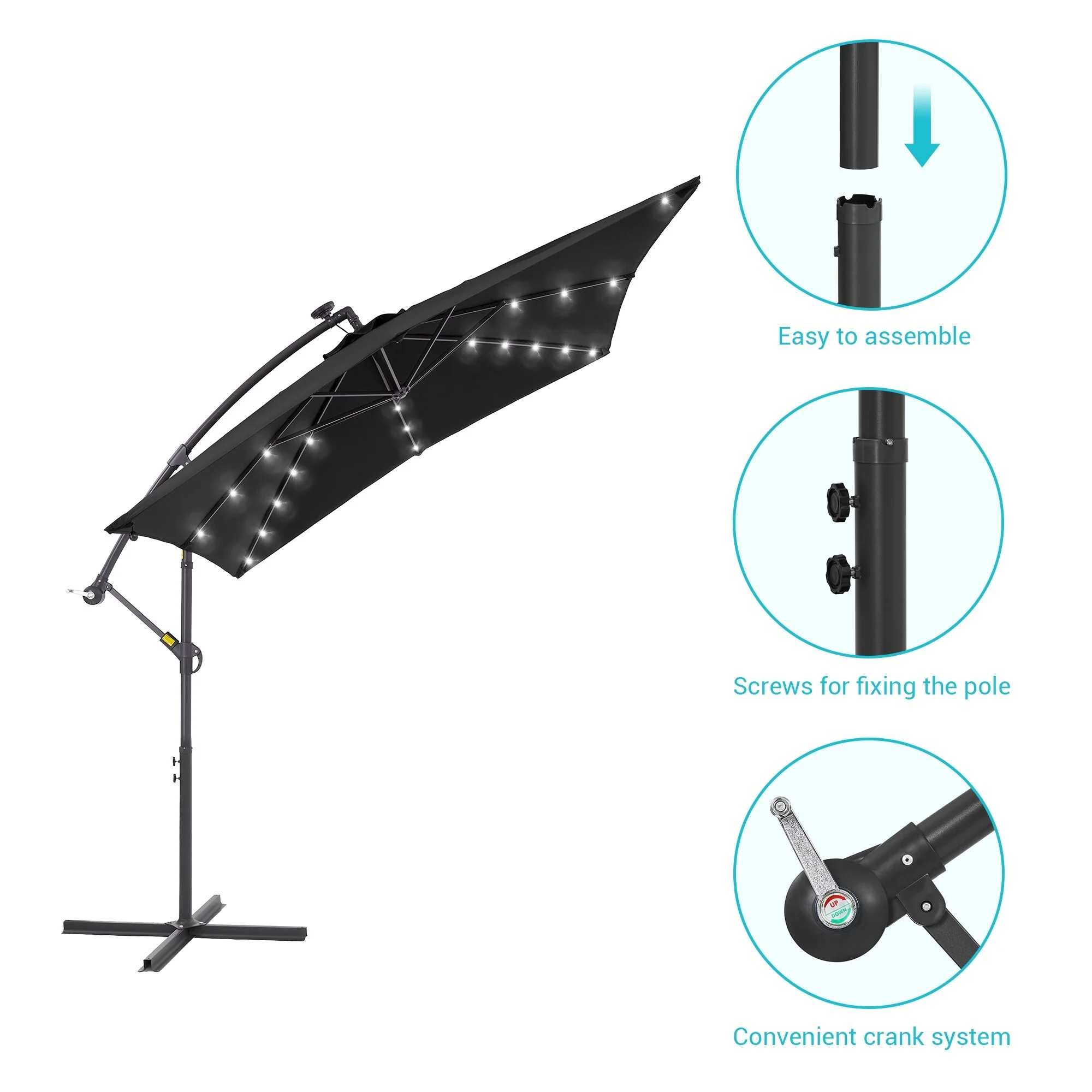 BONOSUKI Patio 8.2Ft LED Offset Umbrella,8 Steel Ribs w/Cross Base