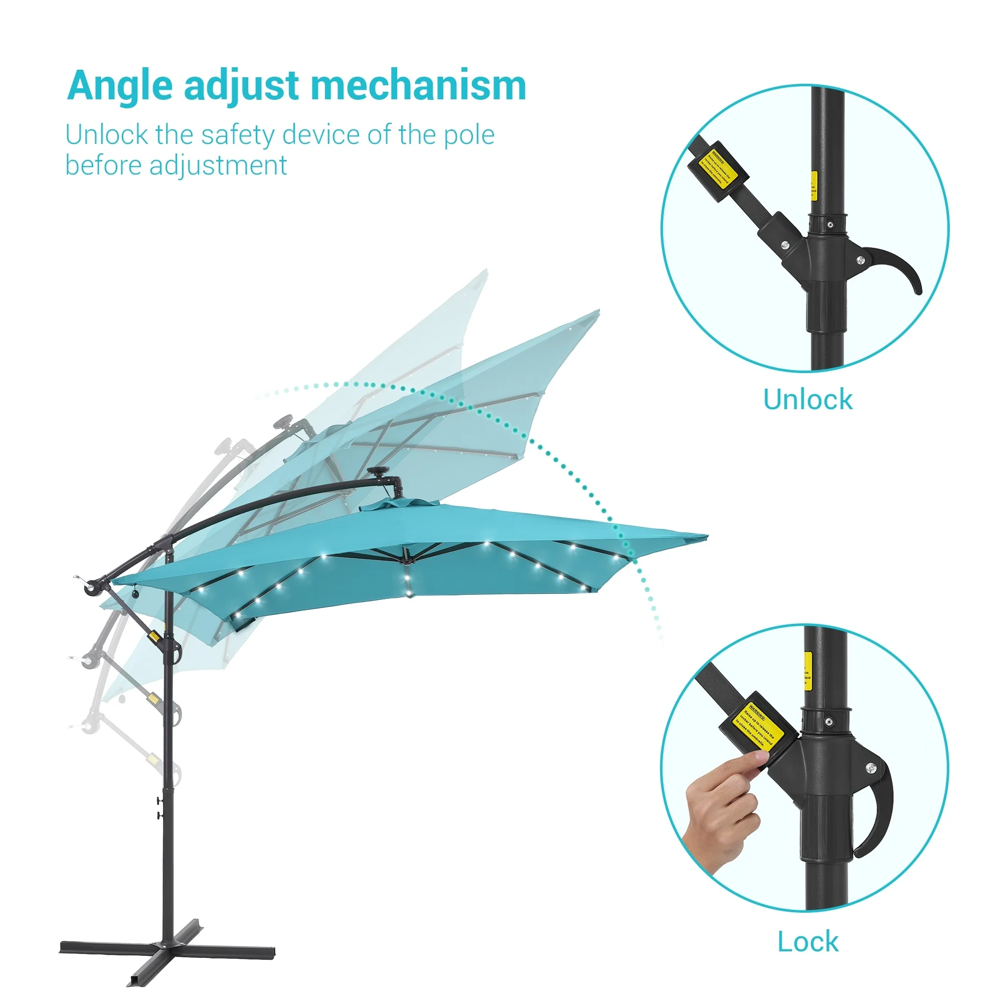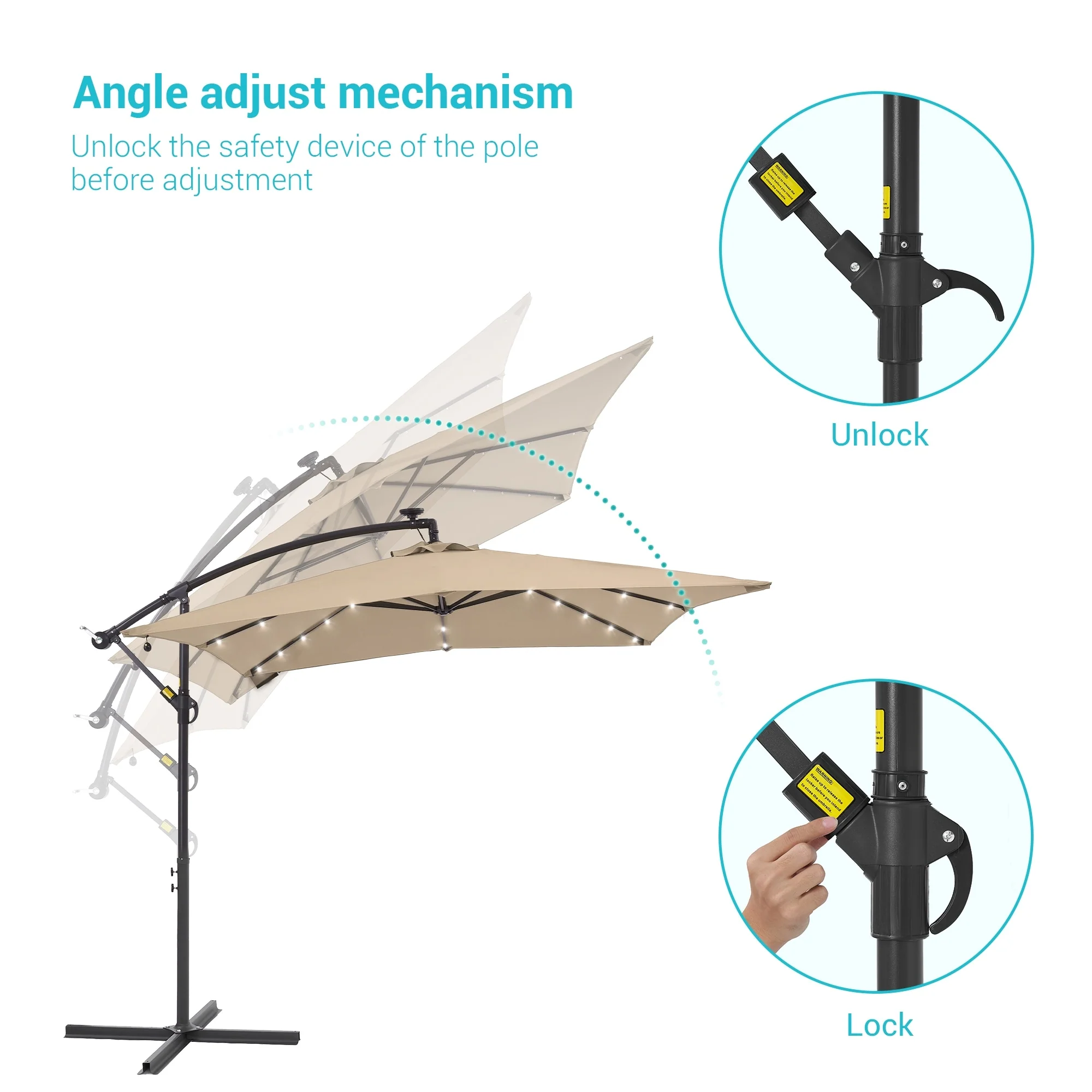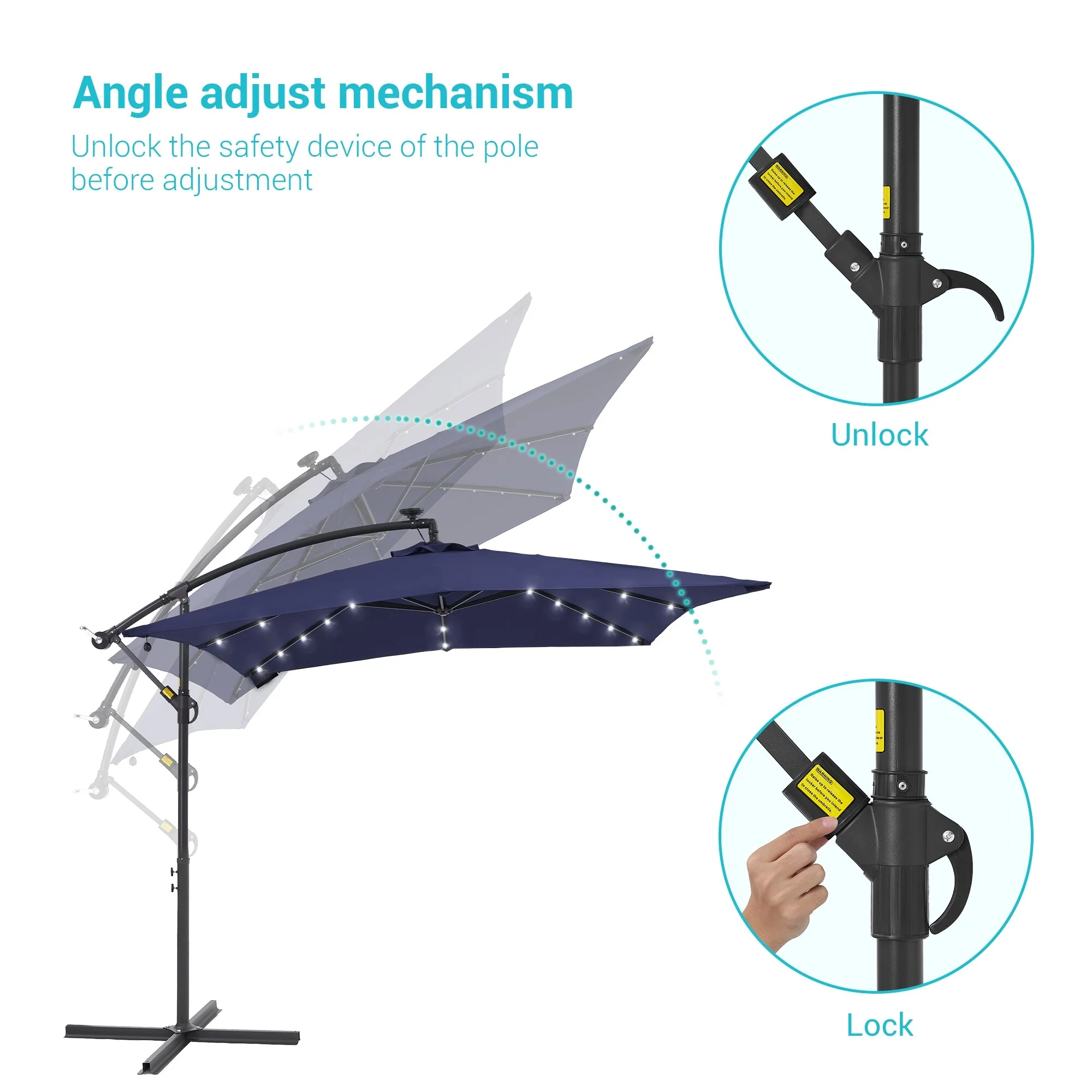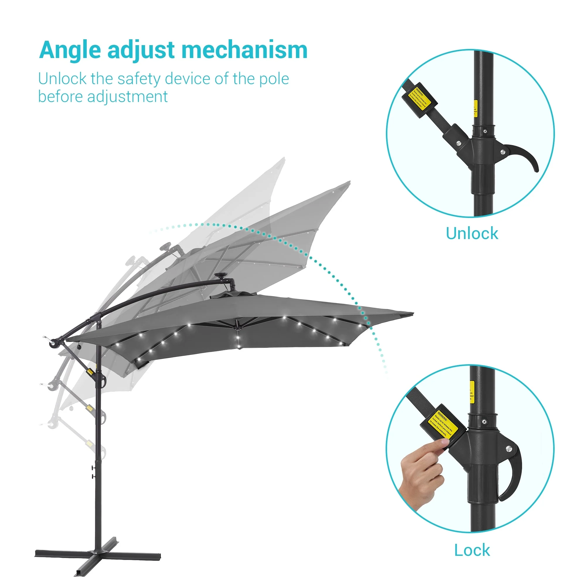 BONOSUKI Patio 8.2Ft LED Offset Umbrella,8 Steel Ribs w/Cross Base