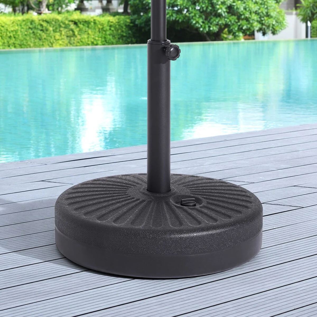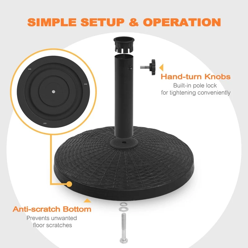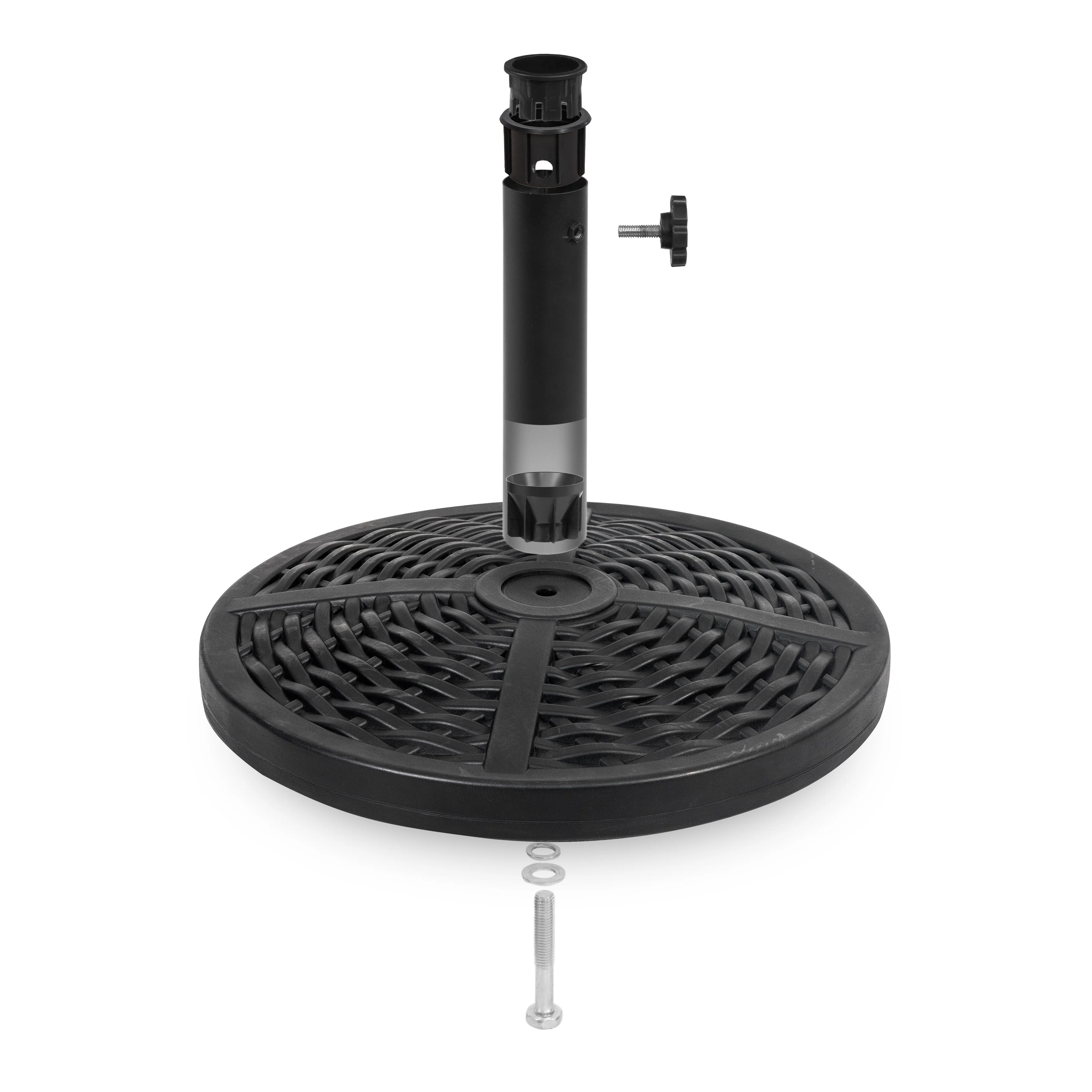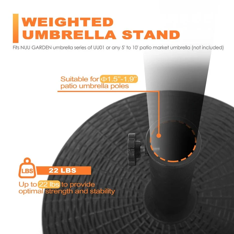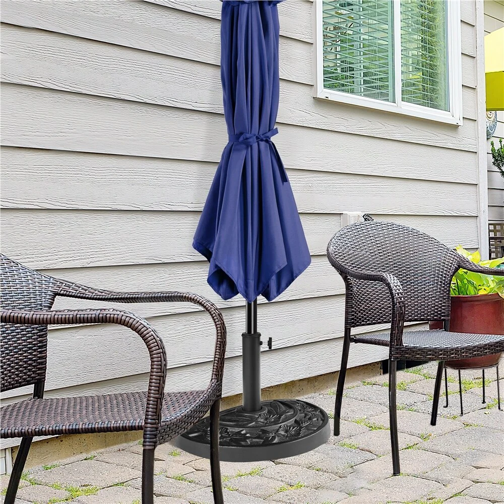 Outdoor Round Black Patio Umbrella Base, Resin and Concrete