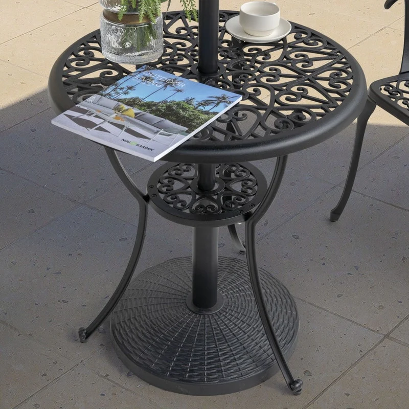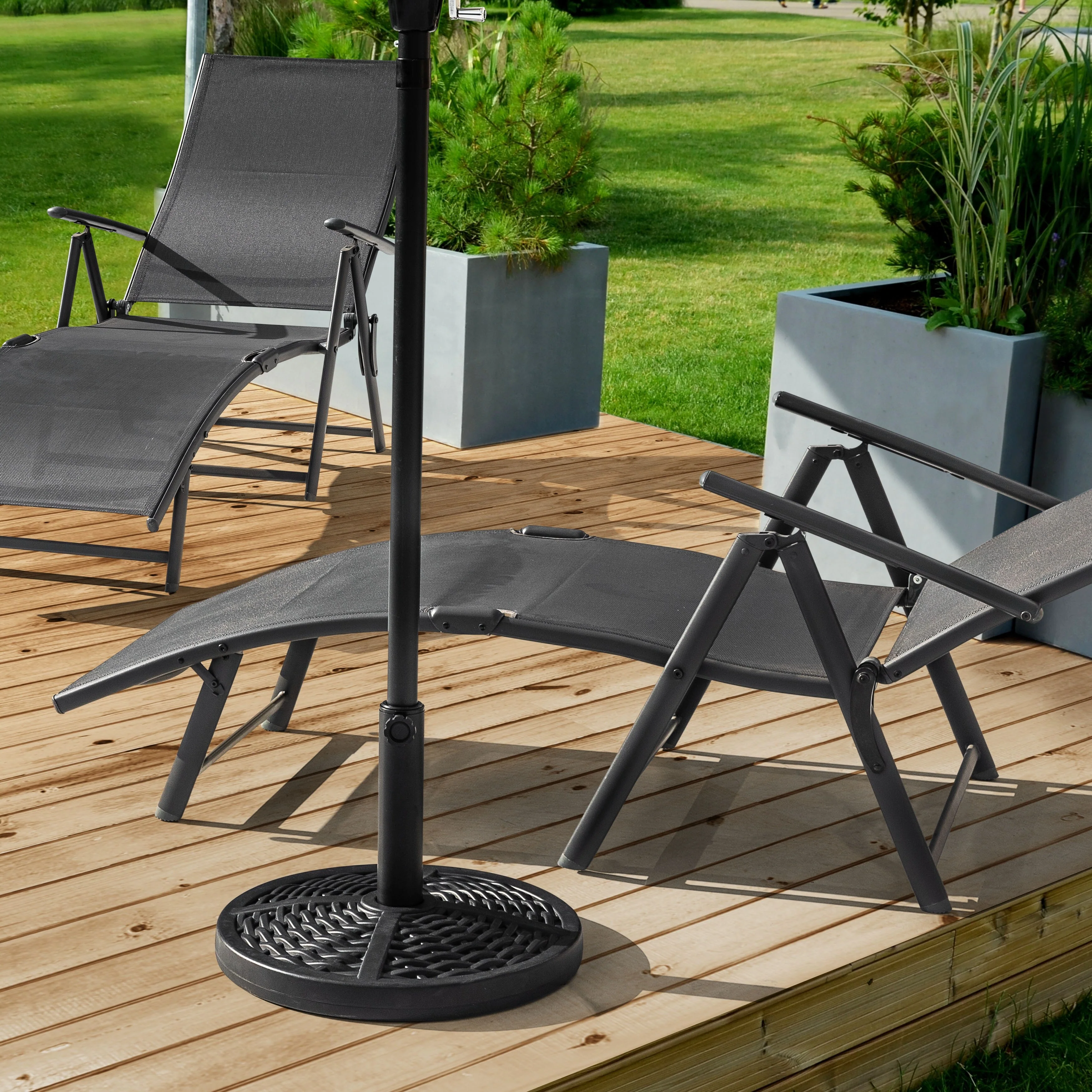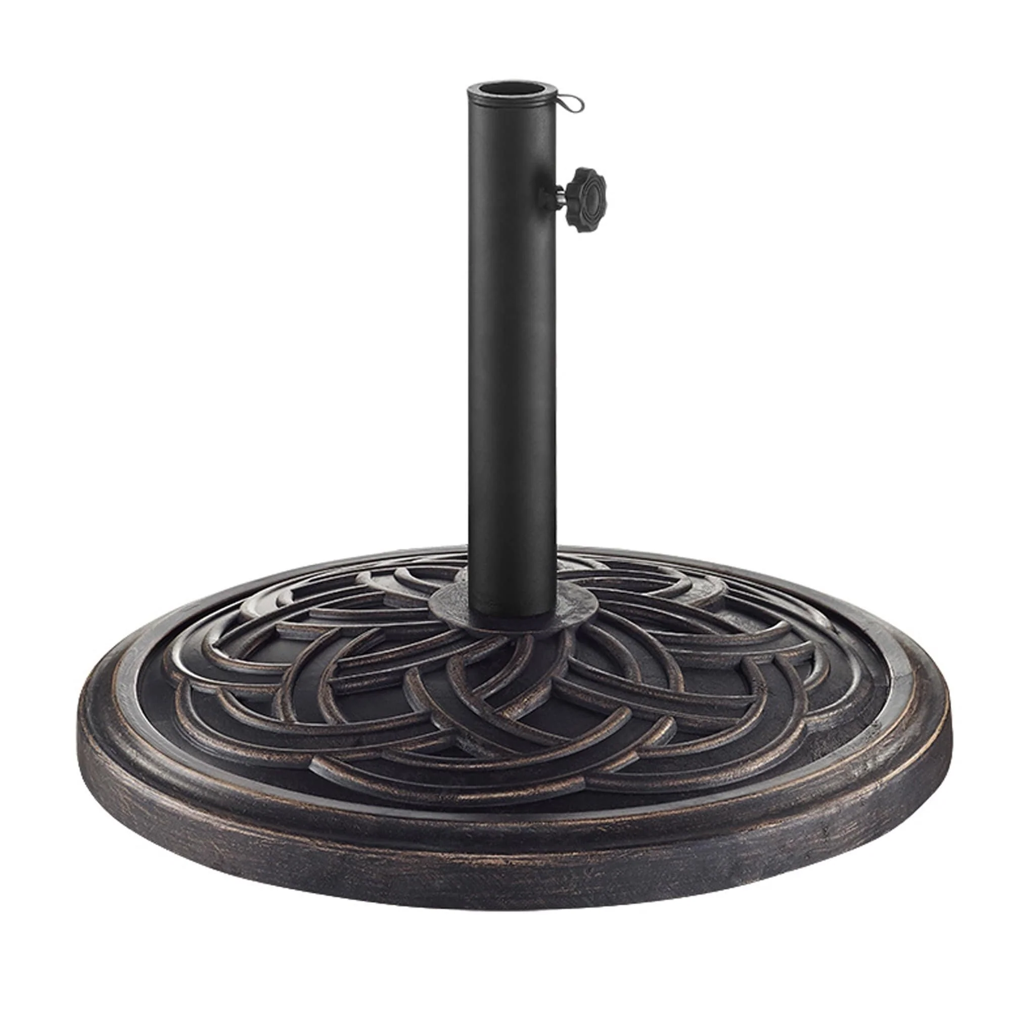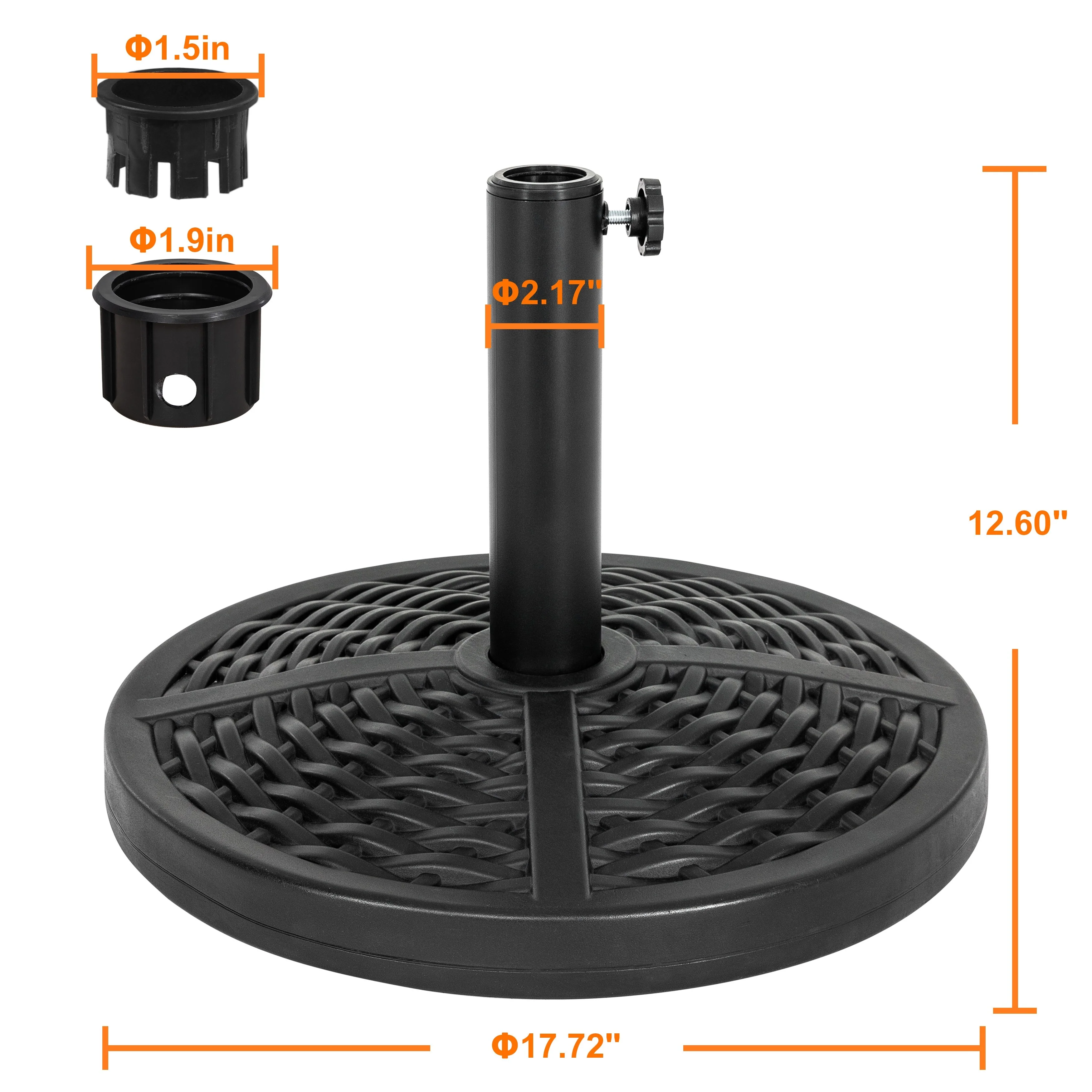 Outdoor Round Black Patio Umbrella Base, Resin and Concrete