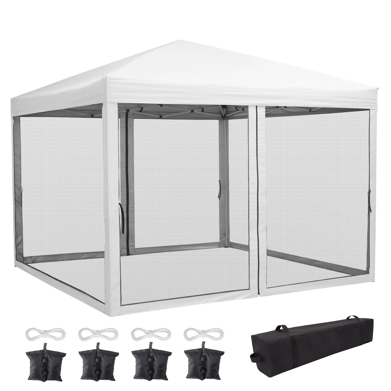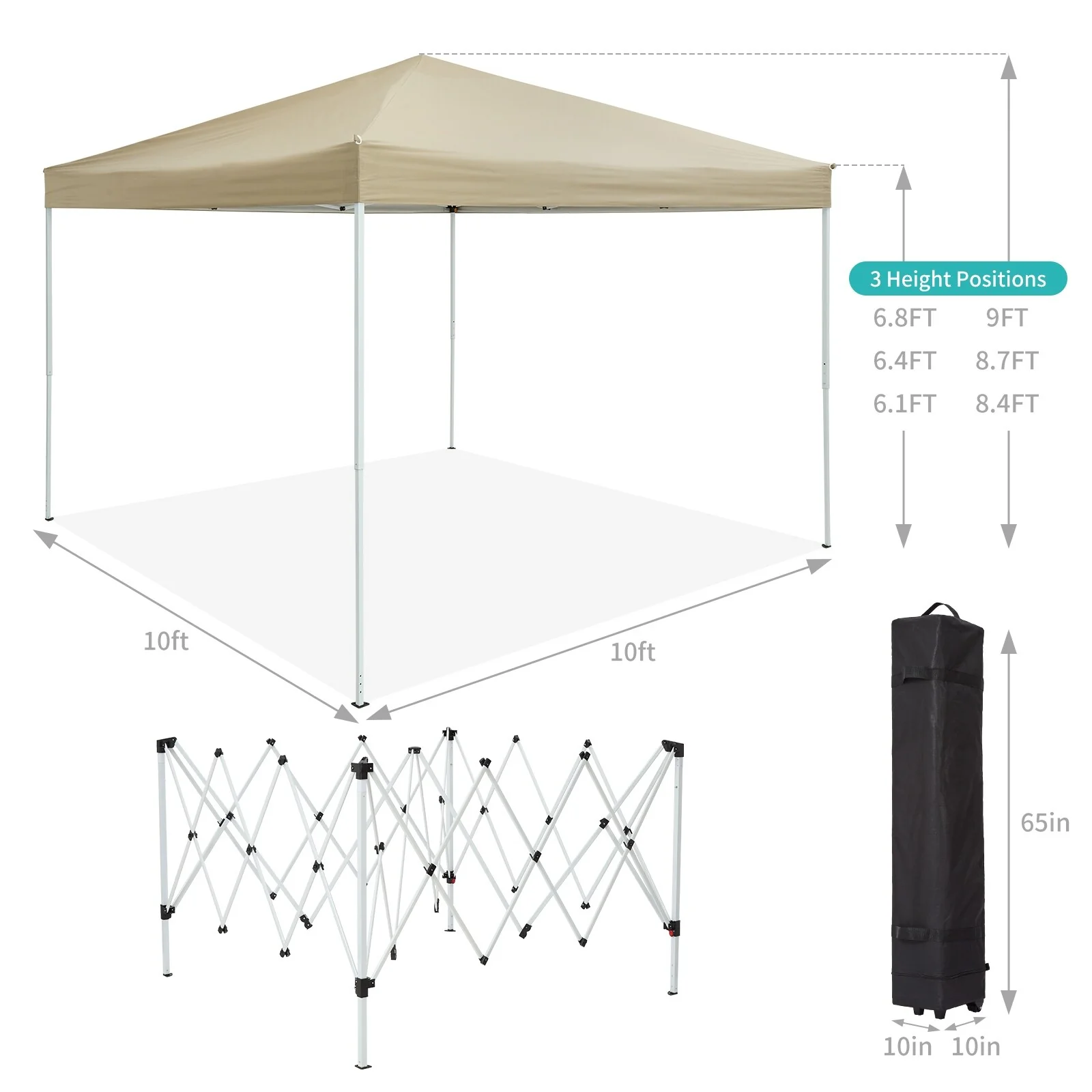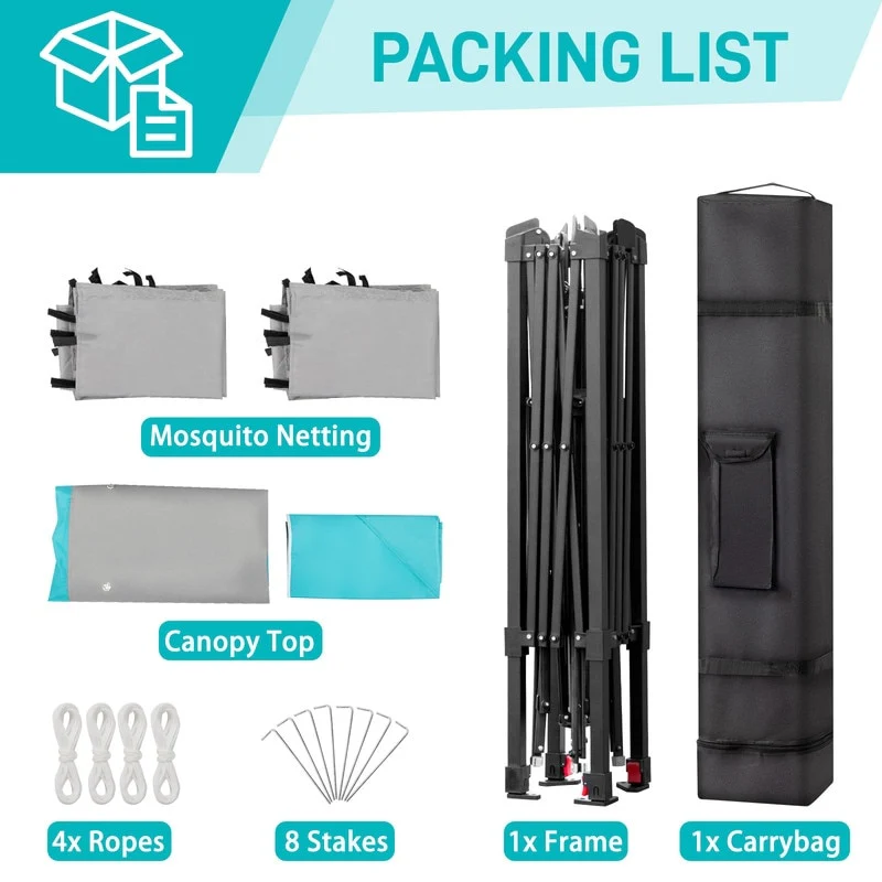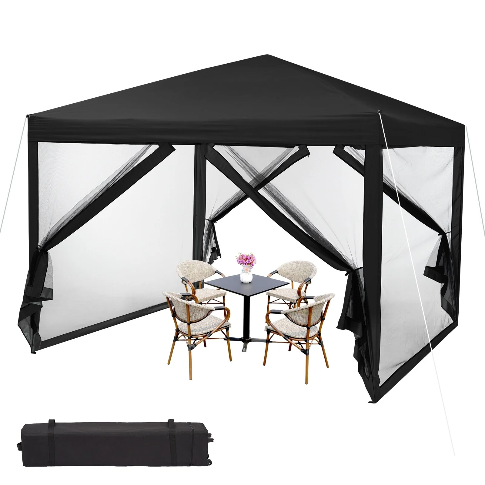 10x10 FT Pop Up Canopy Tent with Mosquito Netting, Adjustable Height, Portable Sun Shelter with Wheeled Bag