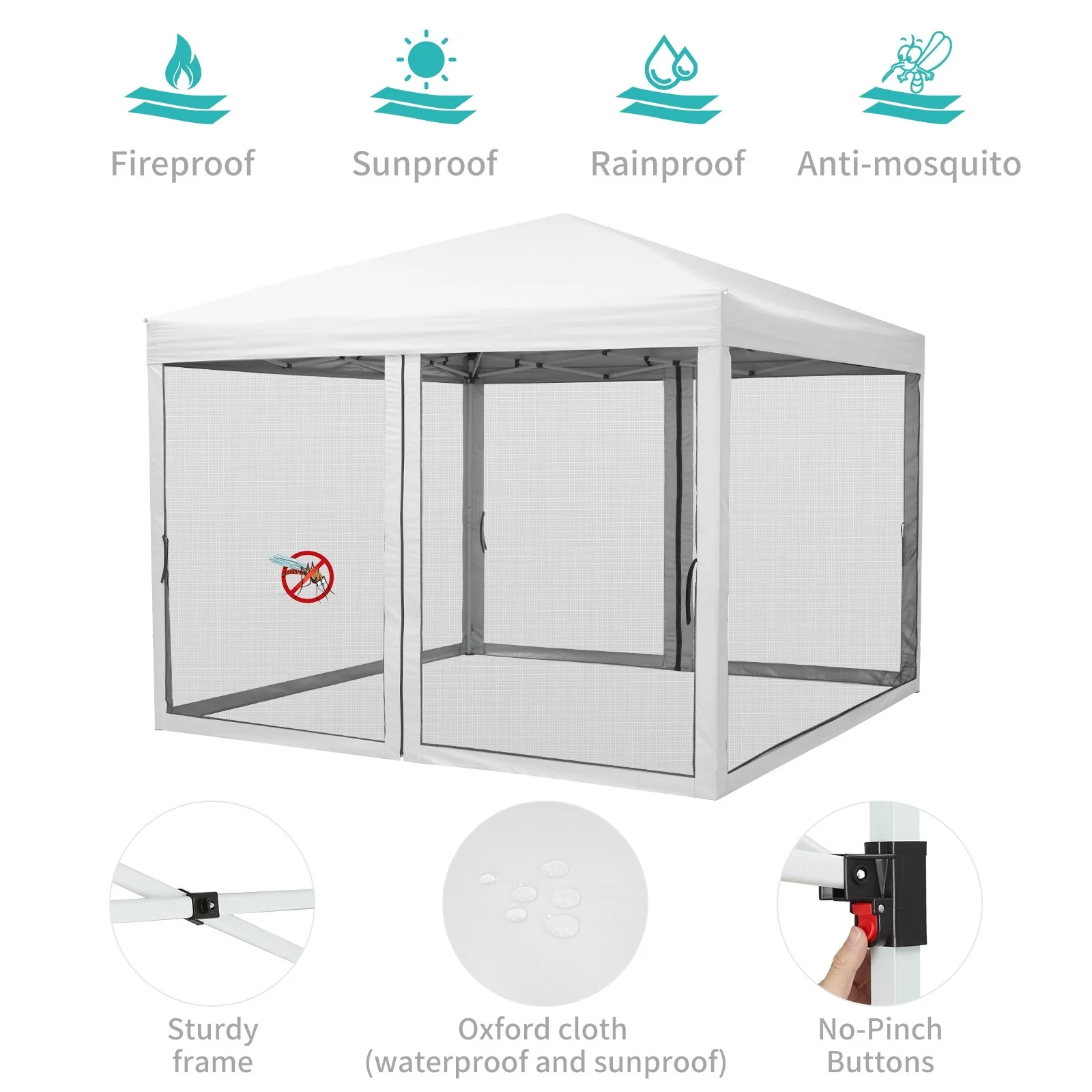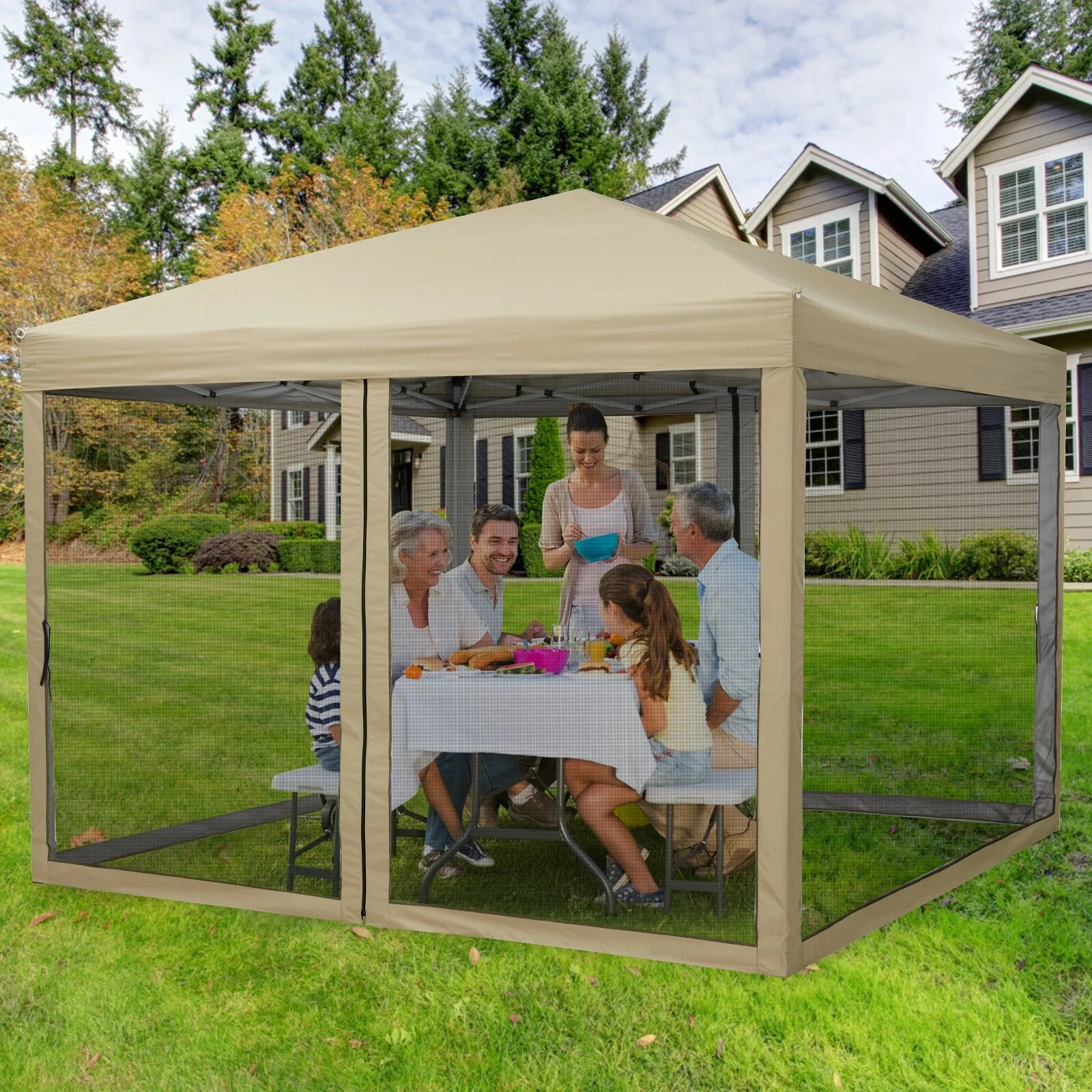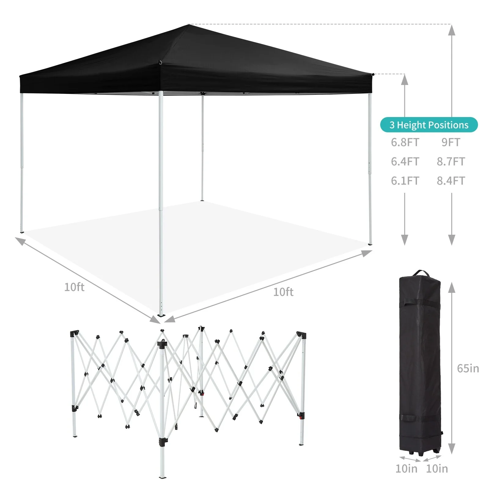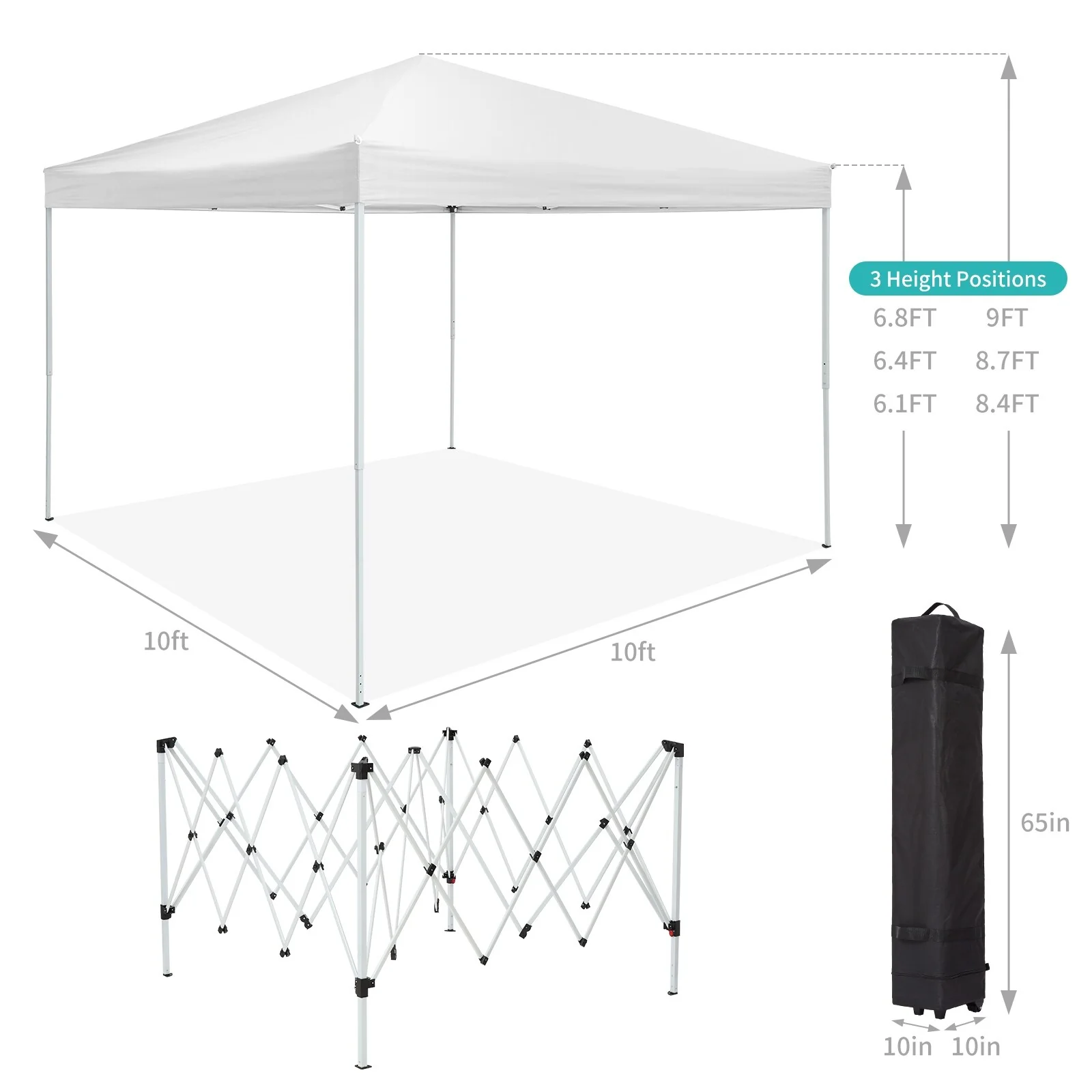 10x10 FT Pop Up Canopy Tent with Mosquito Netting, Adjustable Height, Portable Sun Shelter with Wheeled Bag