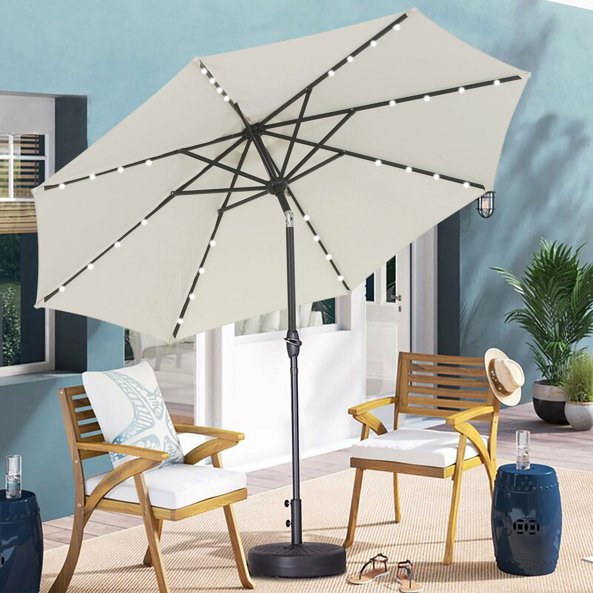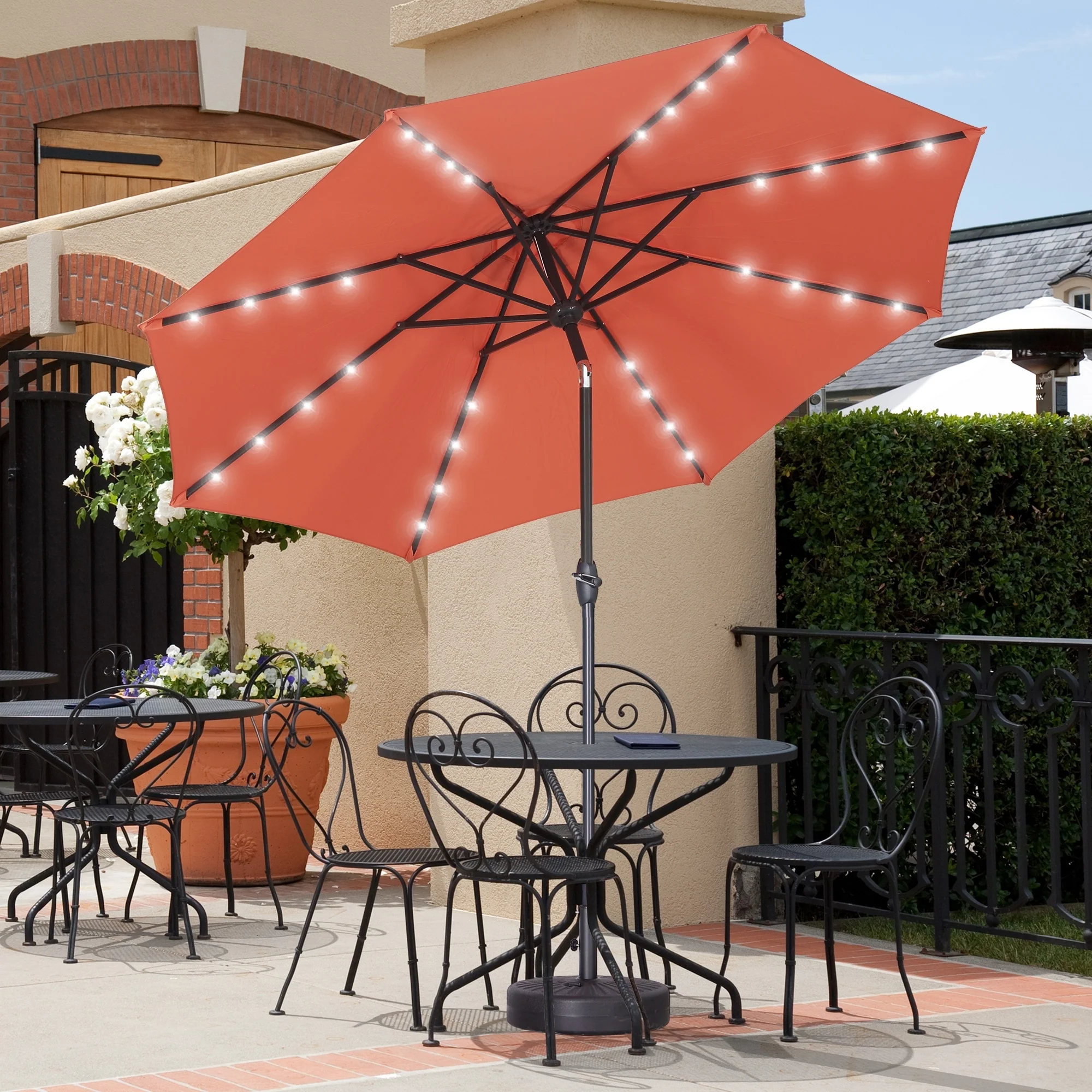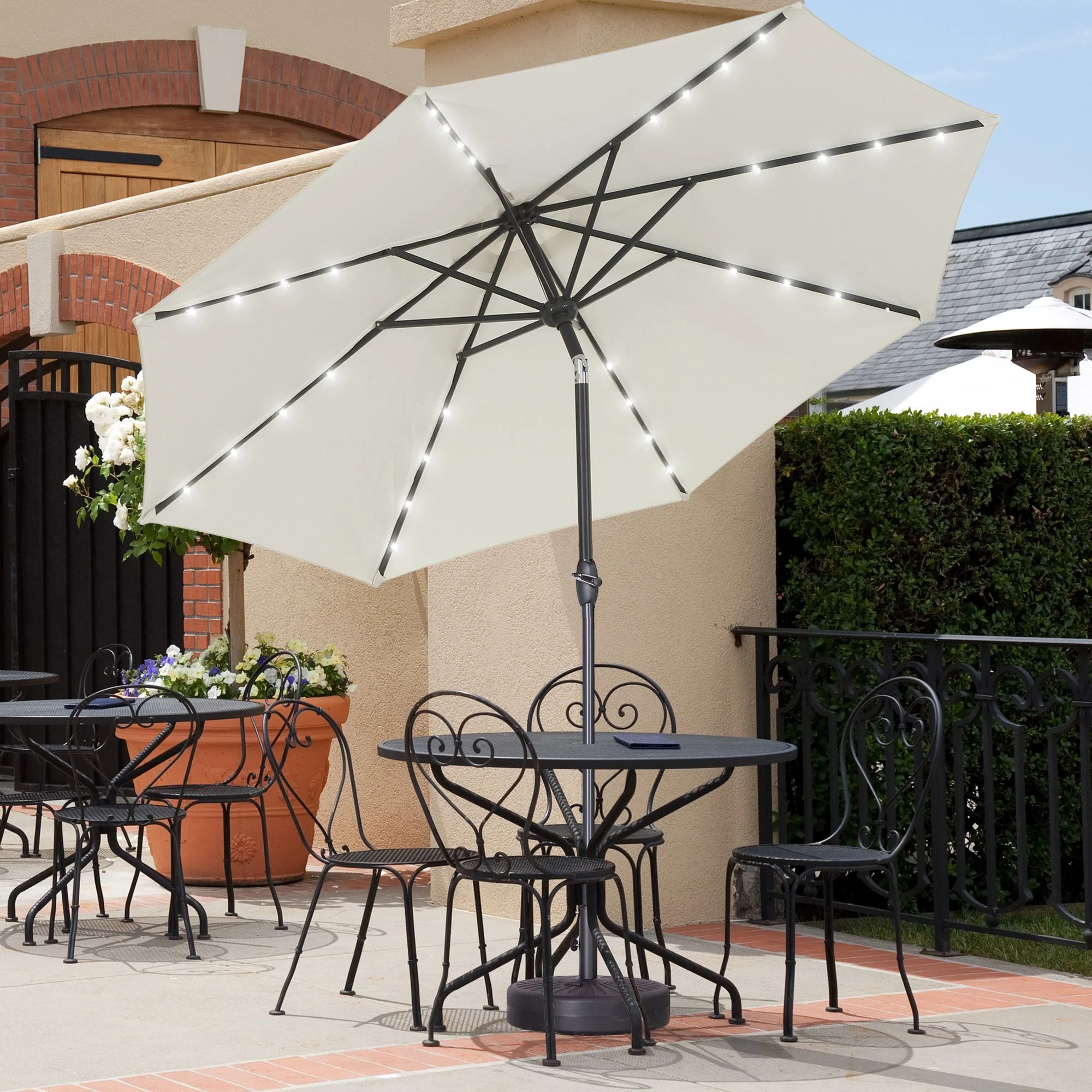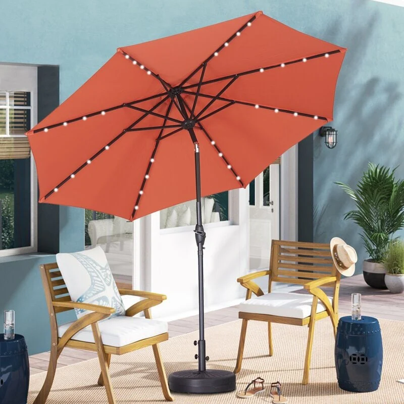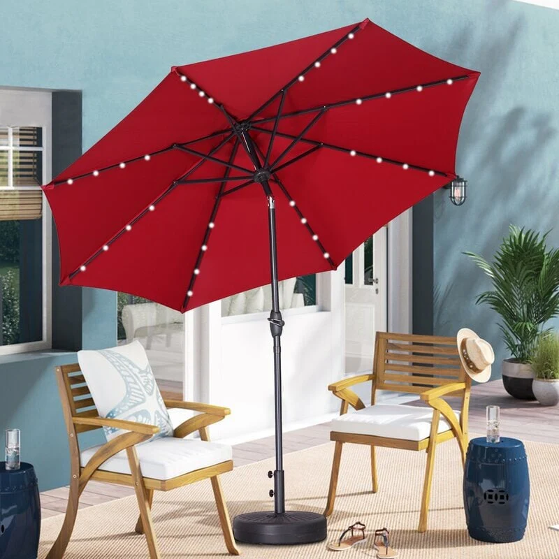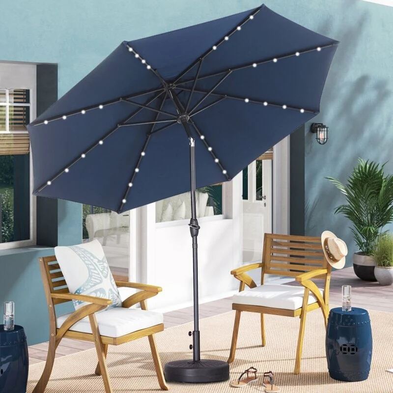 10ft Patio Umbrella with Lights Outdoor Umbrella with Crank Lift System