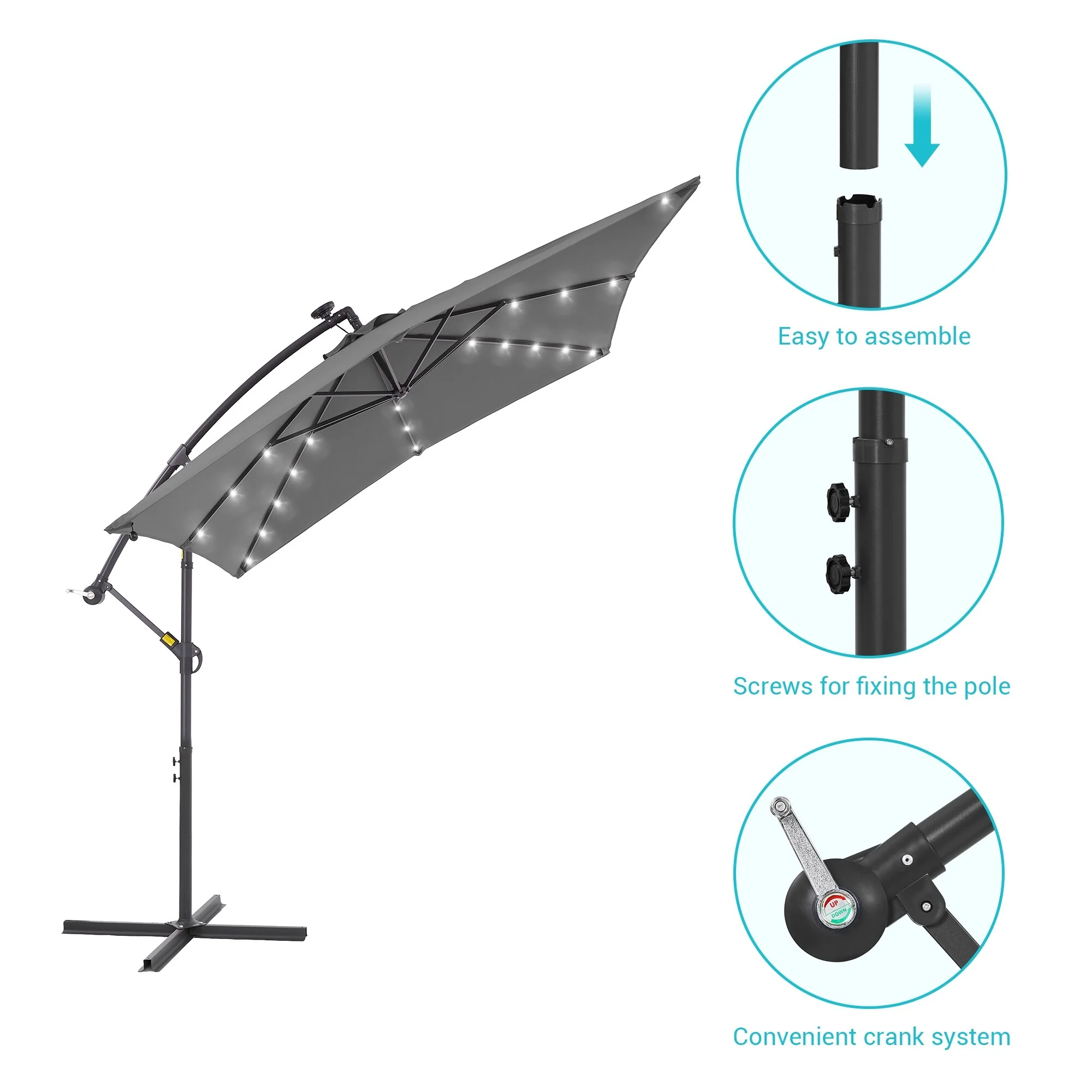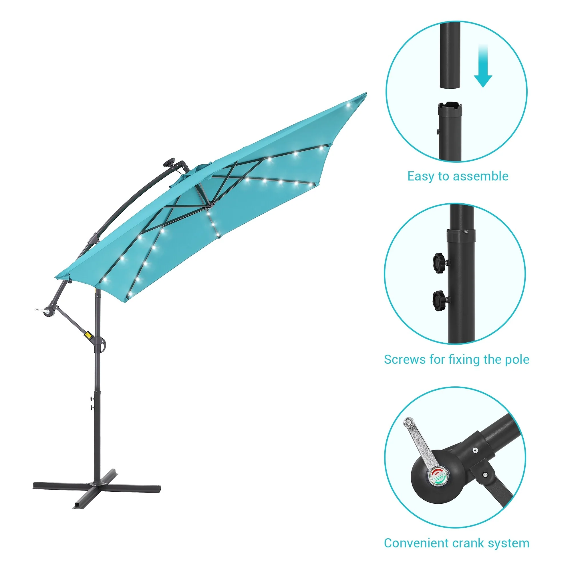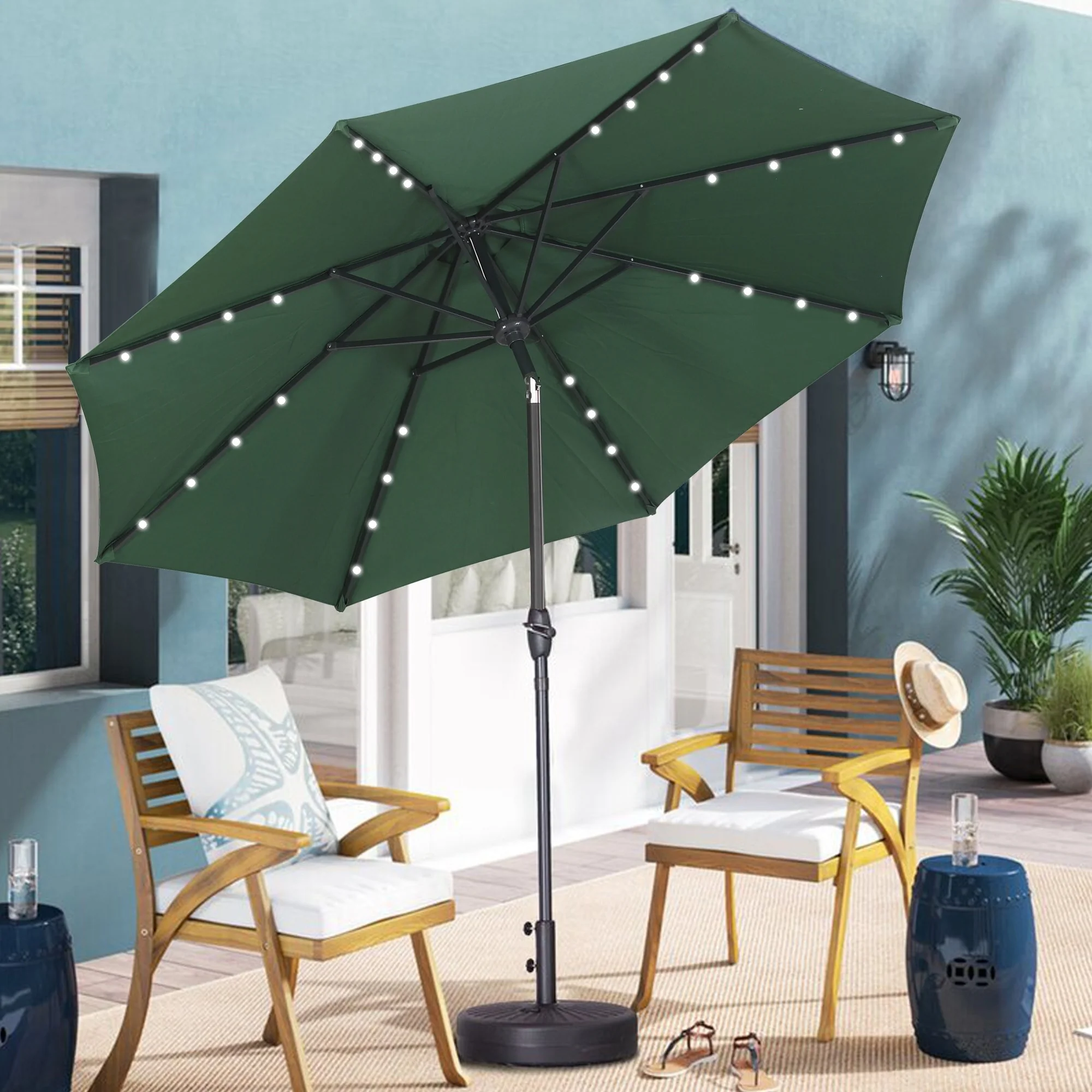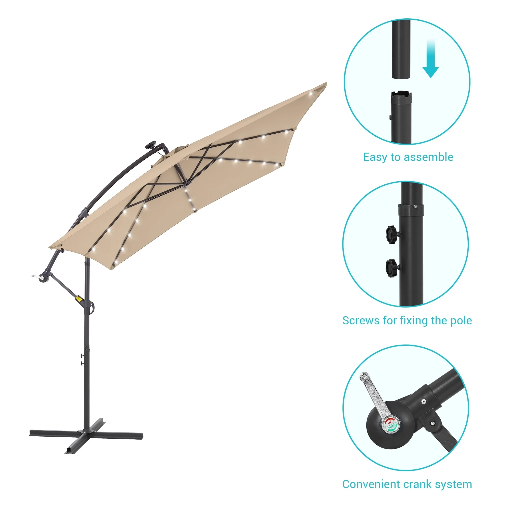 10ft Patio Umbrella with Lights Outdoor Umbrella with Crank Lift System