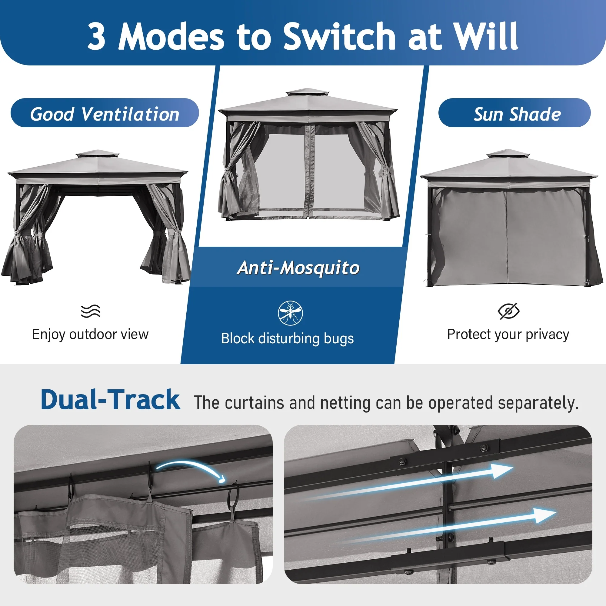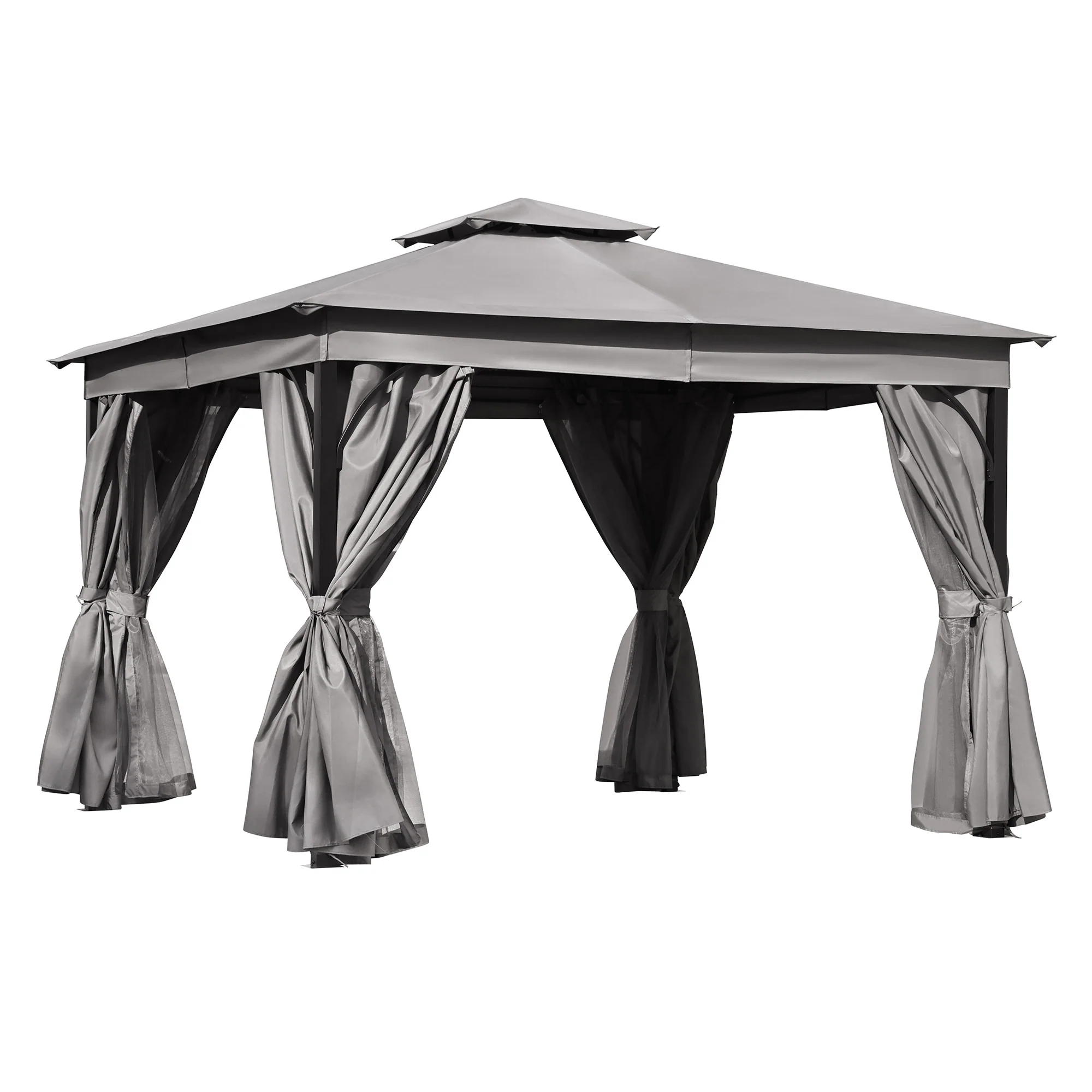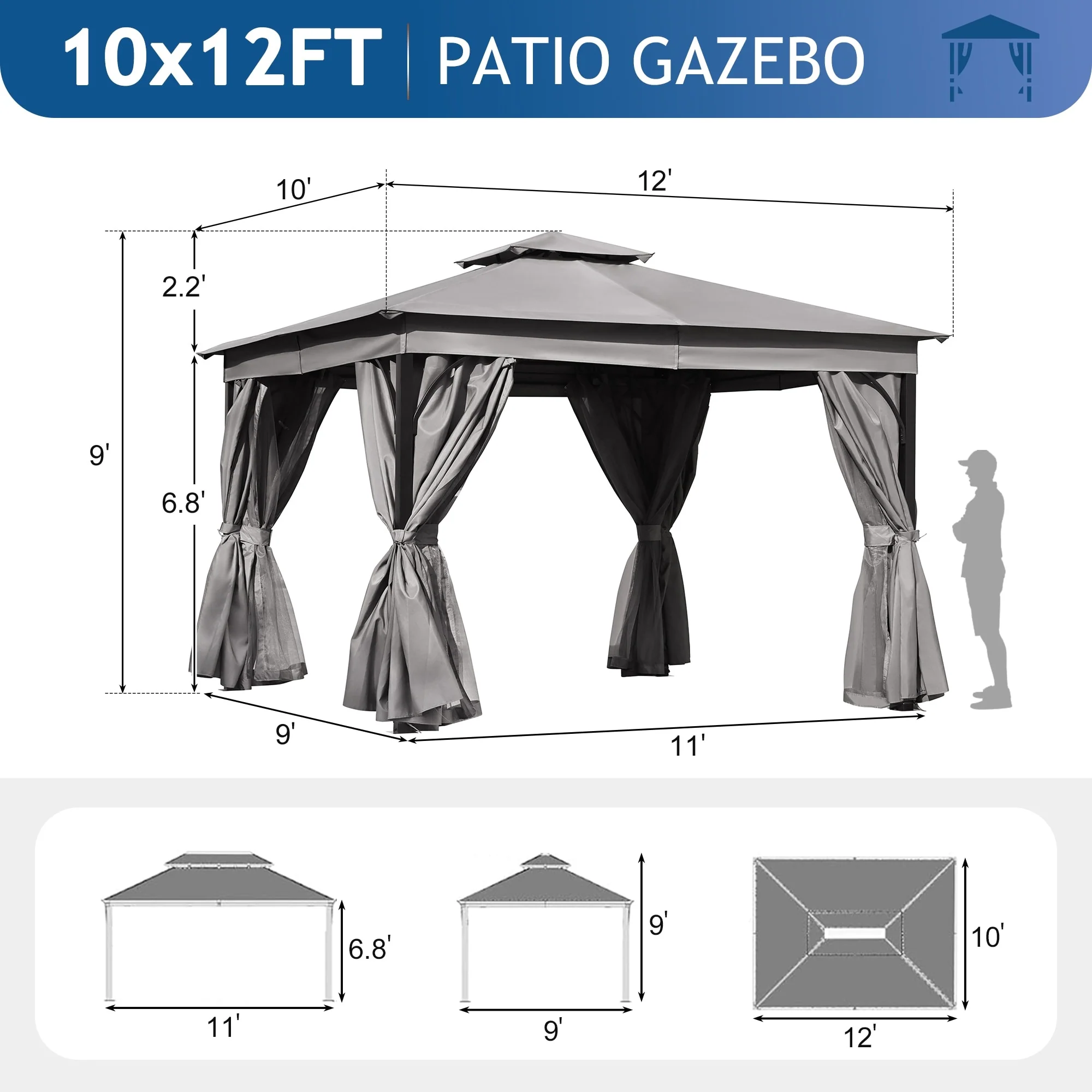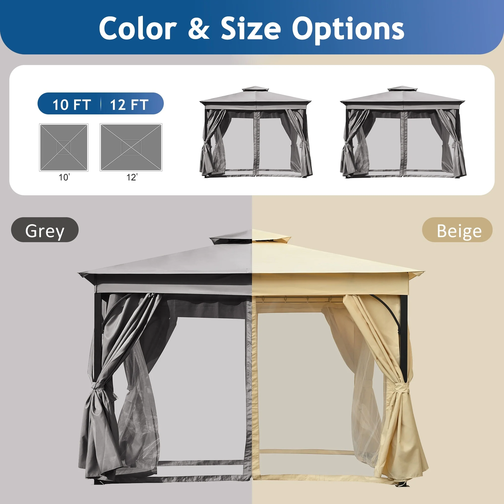 10x12 Outdoor Gazebo Tent with Double Roofs, Patio Gazebo with Mosquito Netting and Privacy Screens