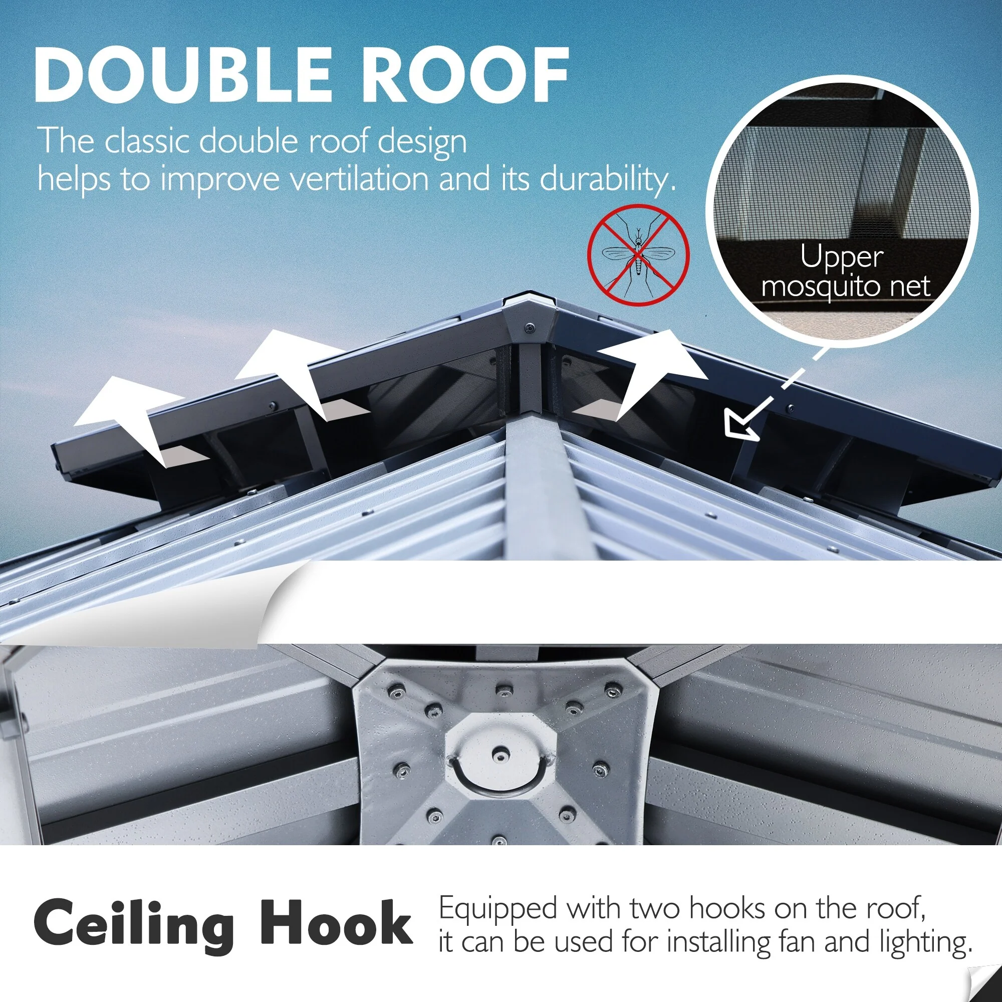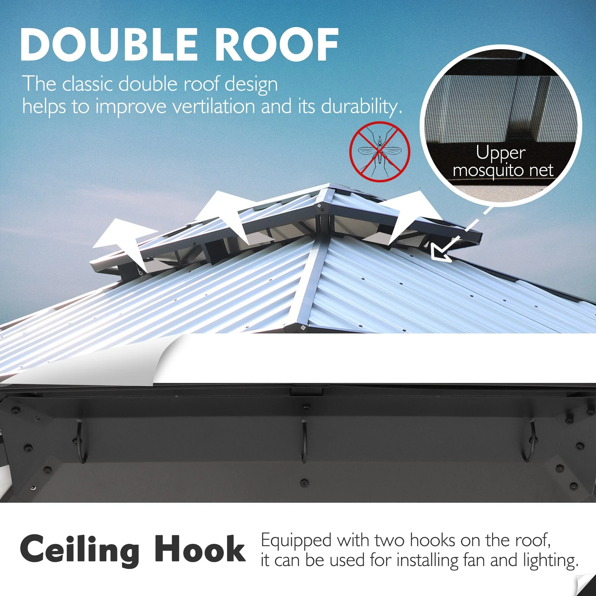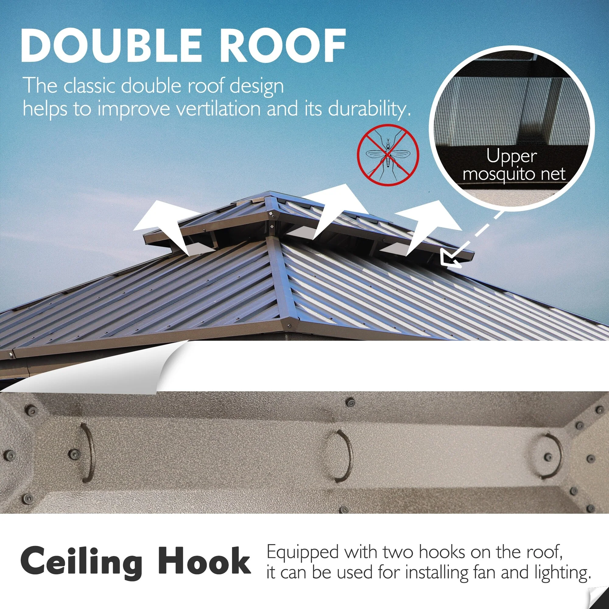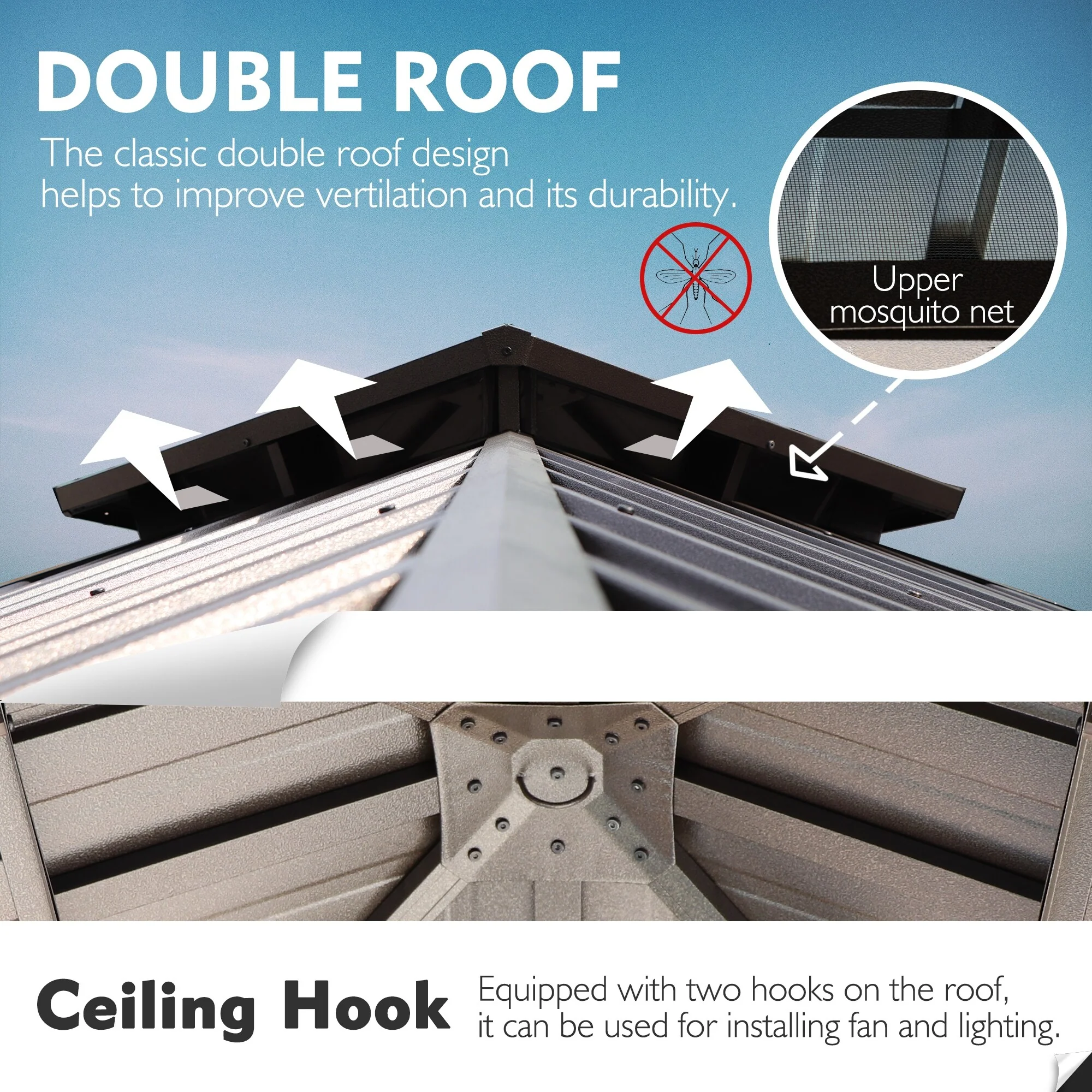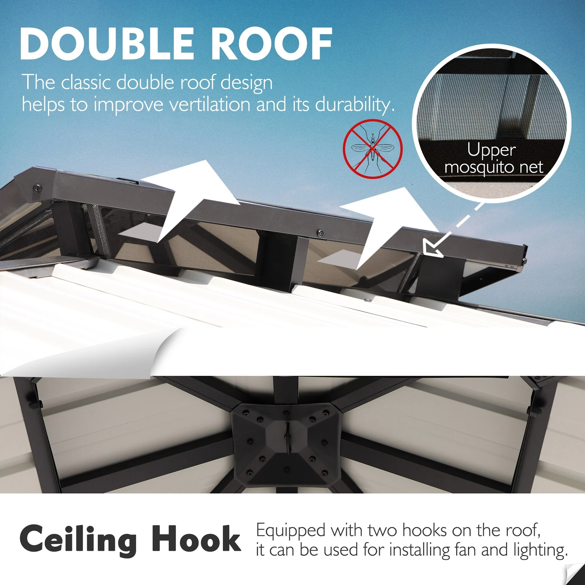10x12 Outdoor Gazebo Tent with Double Roofs, Patio Gazebo with Mosquito Netting and Privacy Screens