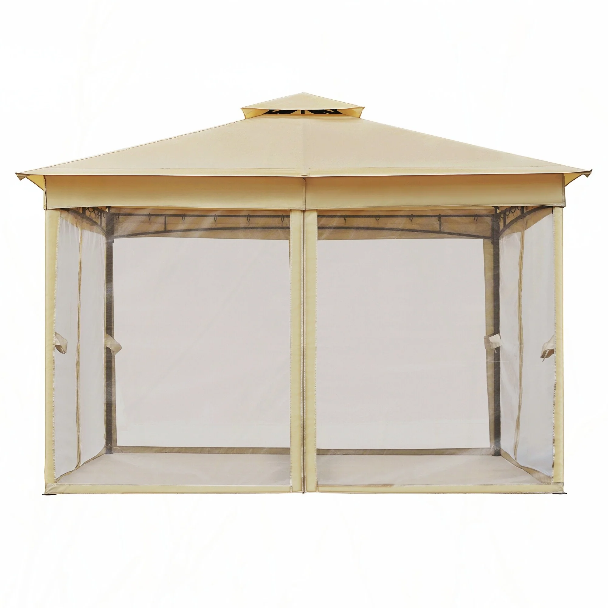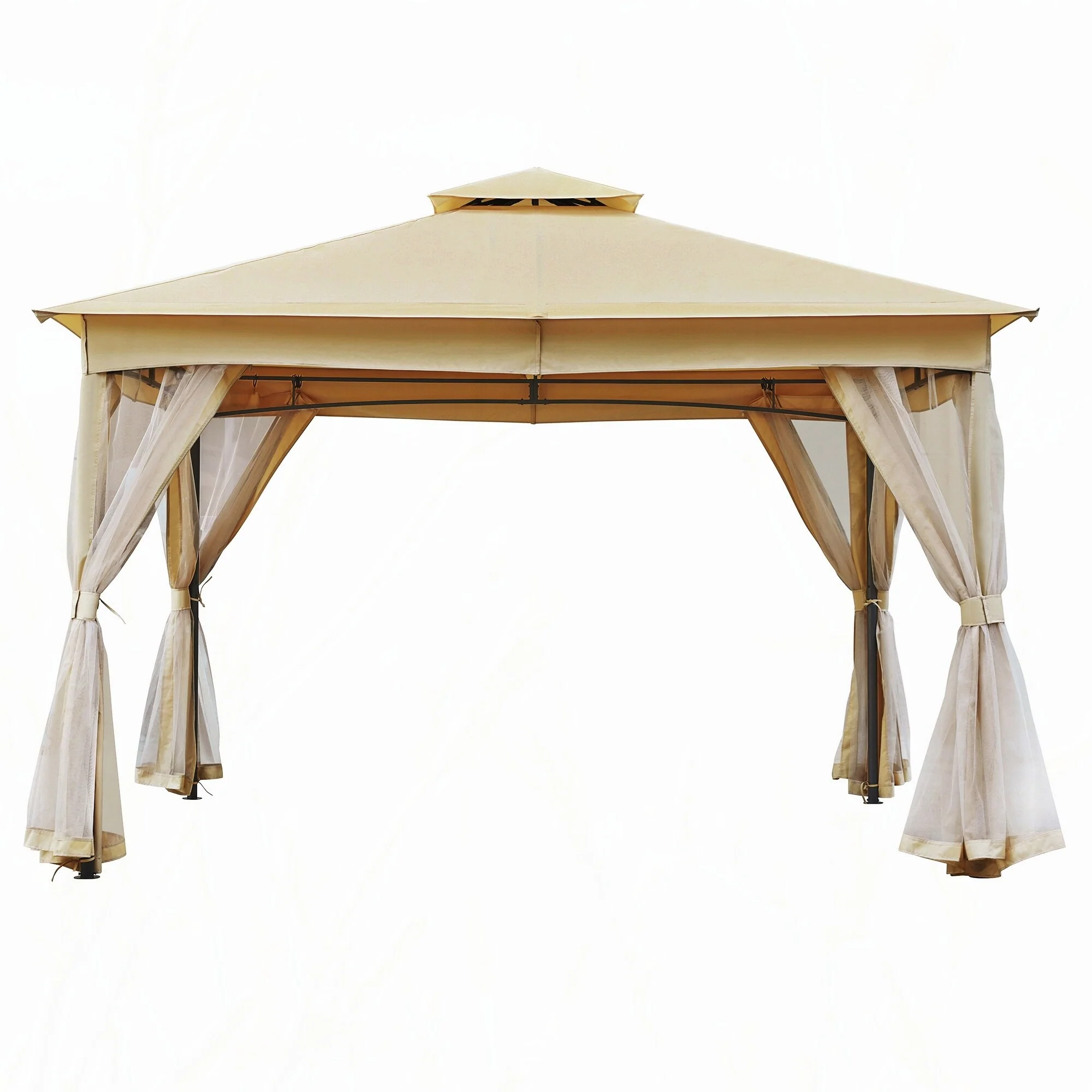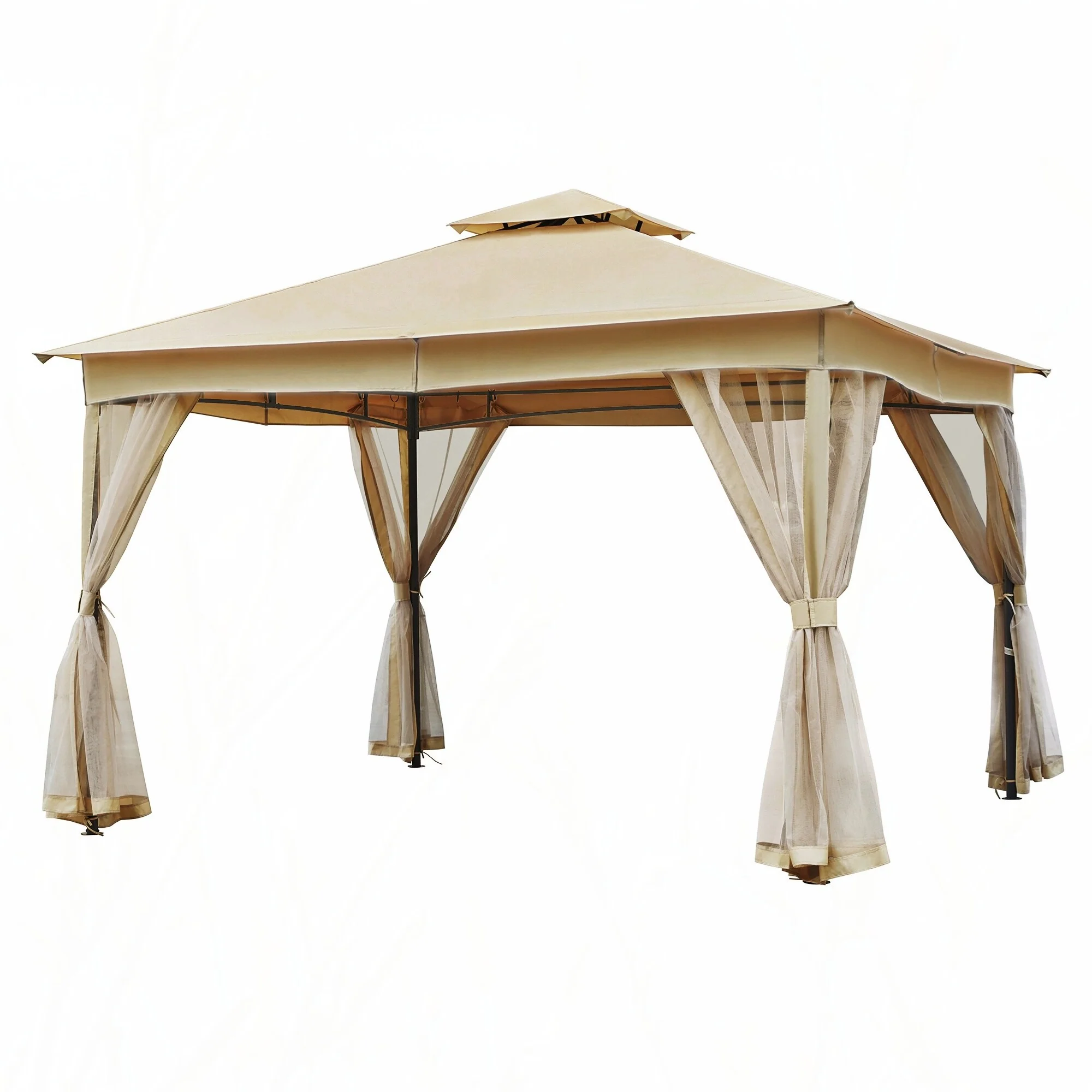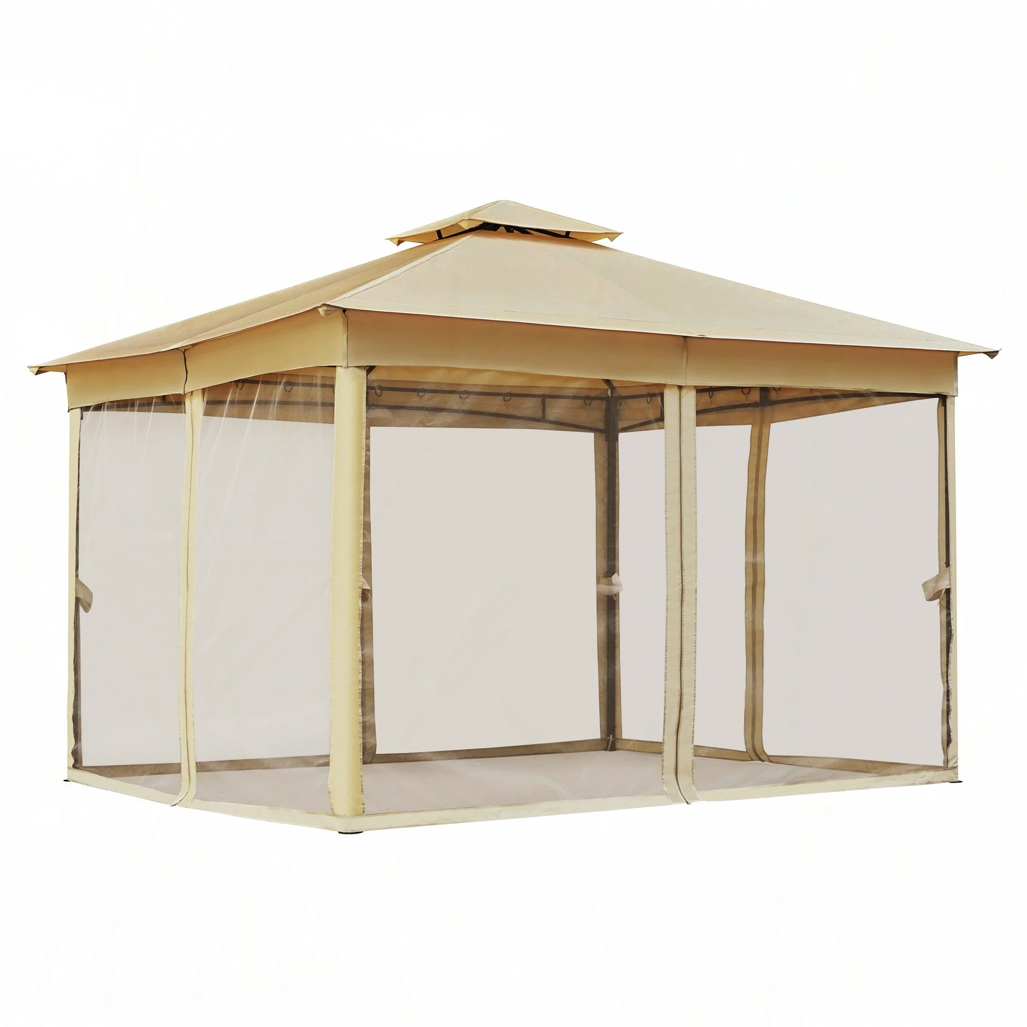 10x12 Outdoor Gazebo Tent with Double Roofs(Beige)