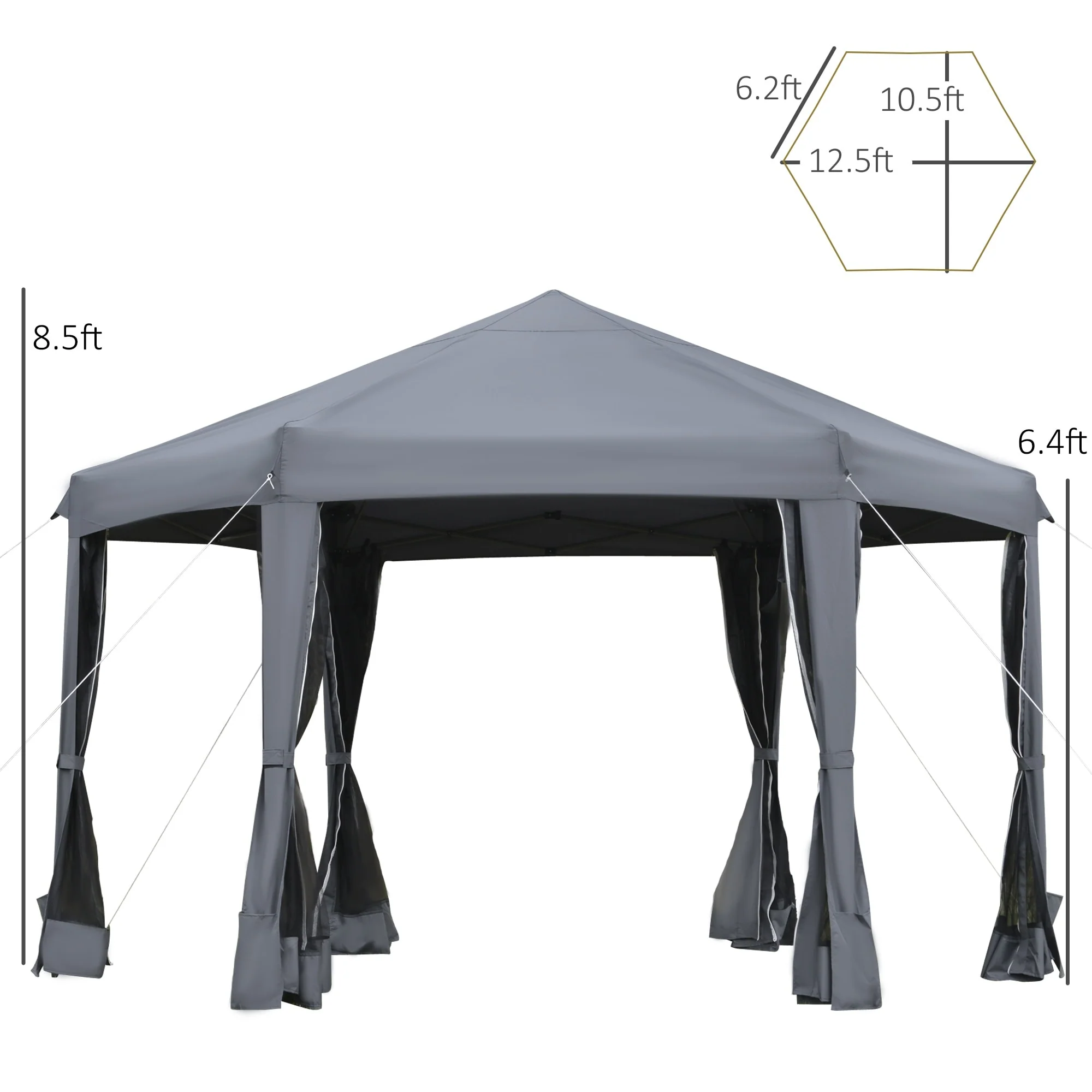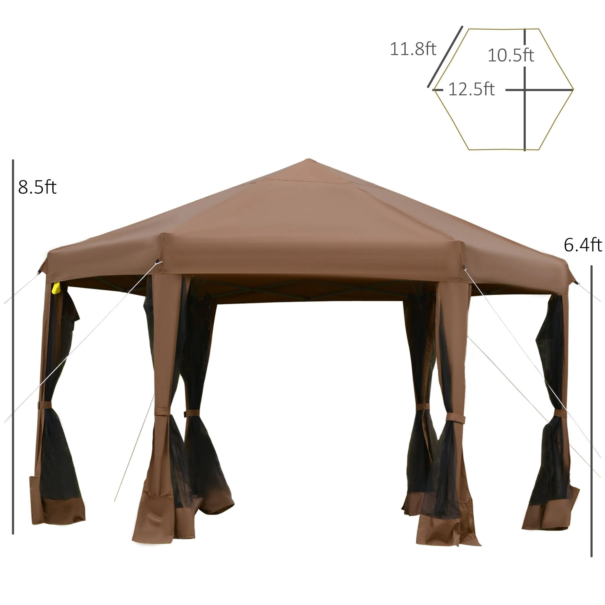 Outsunny 13' x 11' Hexagonal Pop Up Gazebo, Heavy Duty Outdoor Canopy Tent