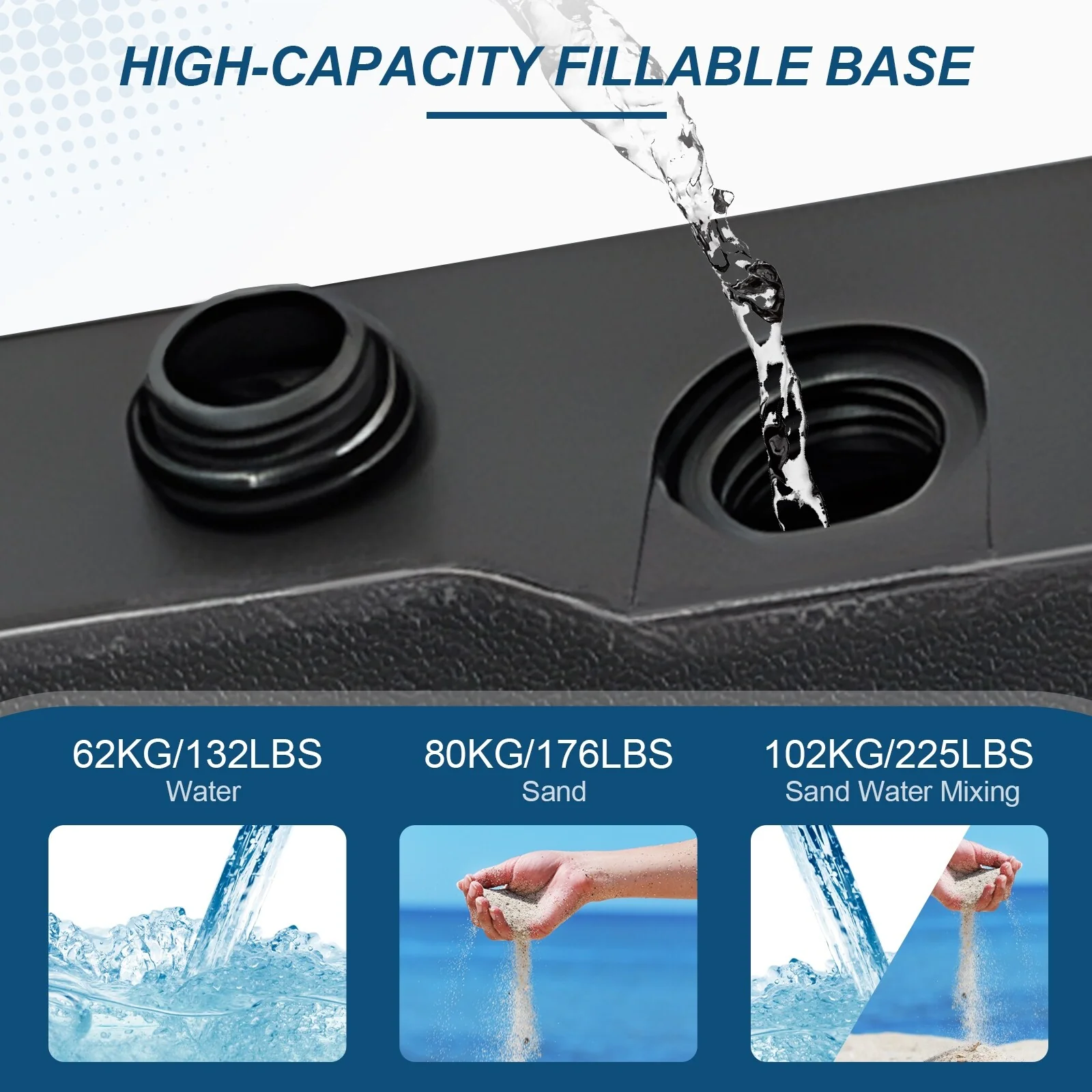 LIVOOSUN 57-90LBS HDPE Plastic Patio Market Umbrella Base