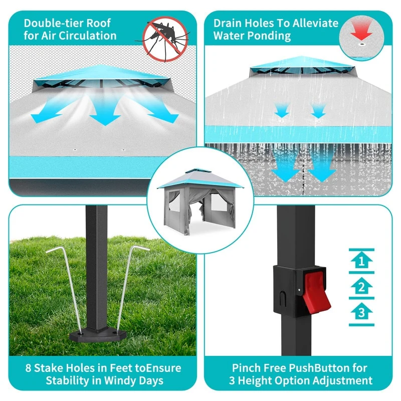 10FT Pop-up Canopy Grey Blue