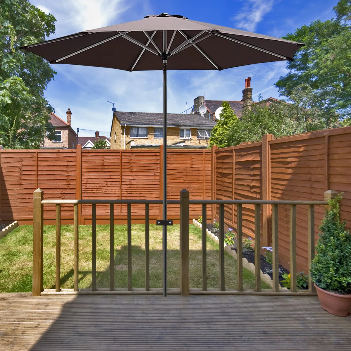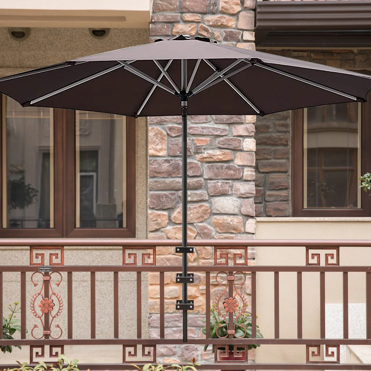 Metal Patio Umbrella Clamp for Fence Post, Railing, Bleachers, or Benches - Strong and Durable, Secure in Any Weather, 3 - Pack