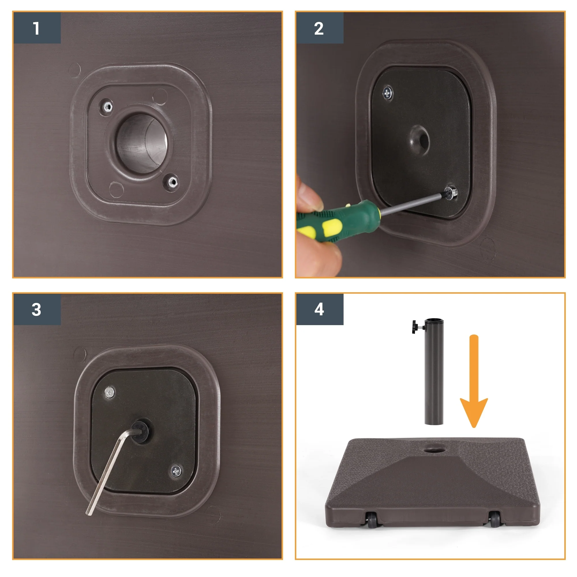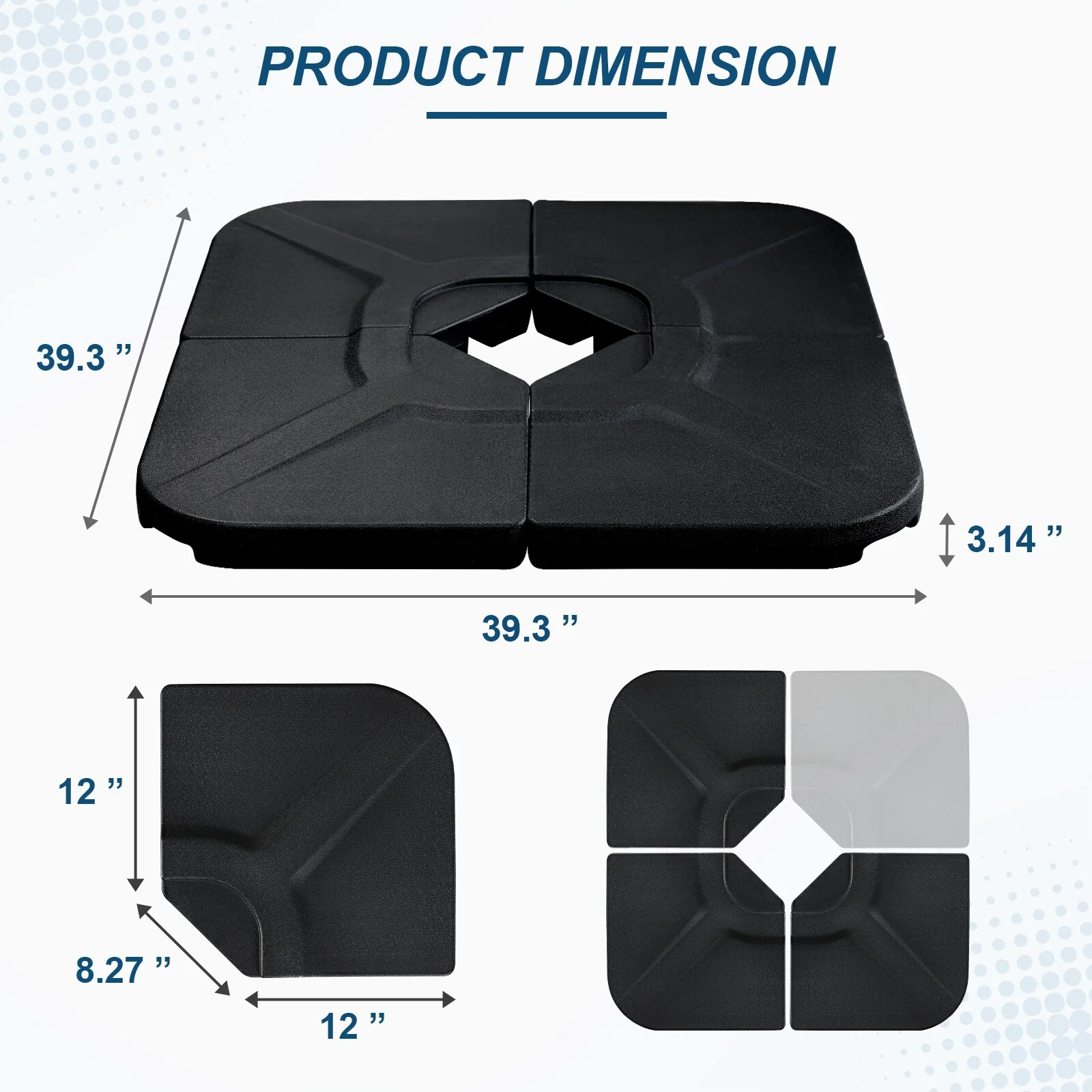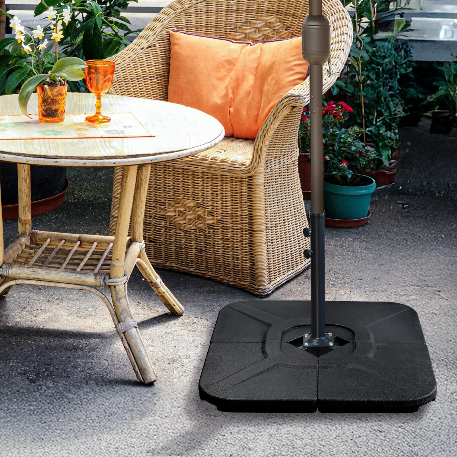 Aoodor Black 4 Pieces Umbrella Base Stand Patio Umbrella Stand Square Base Plate Heavy-Duty - 100x100x8cm