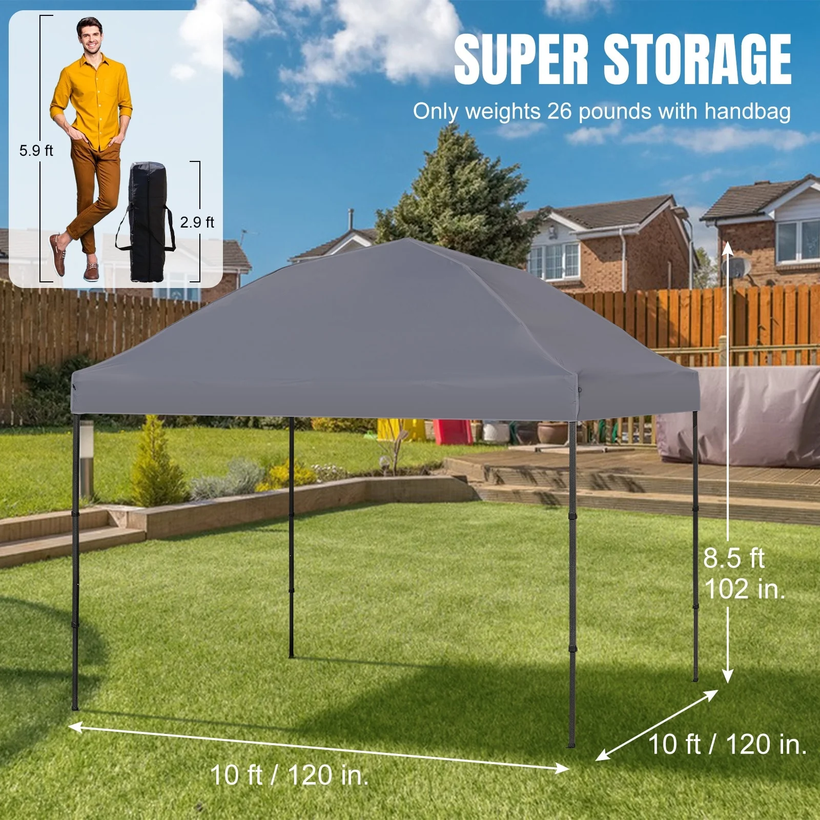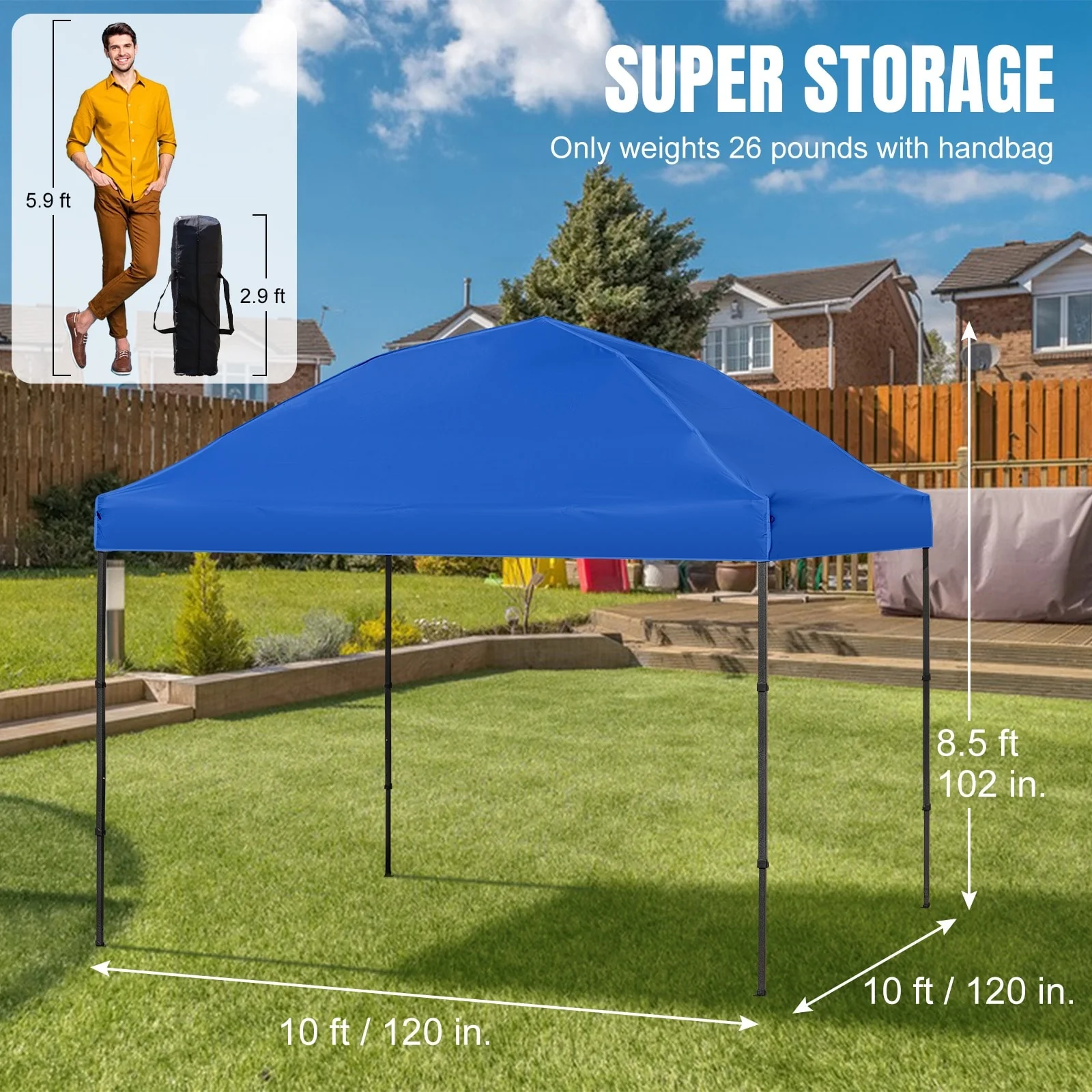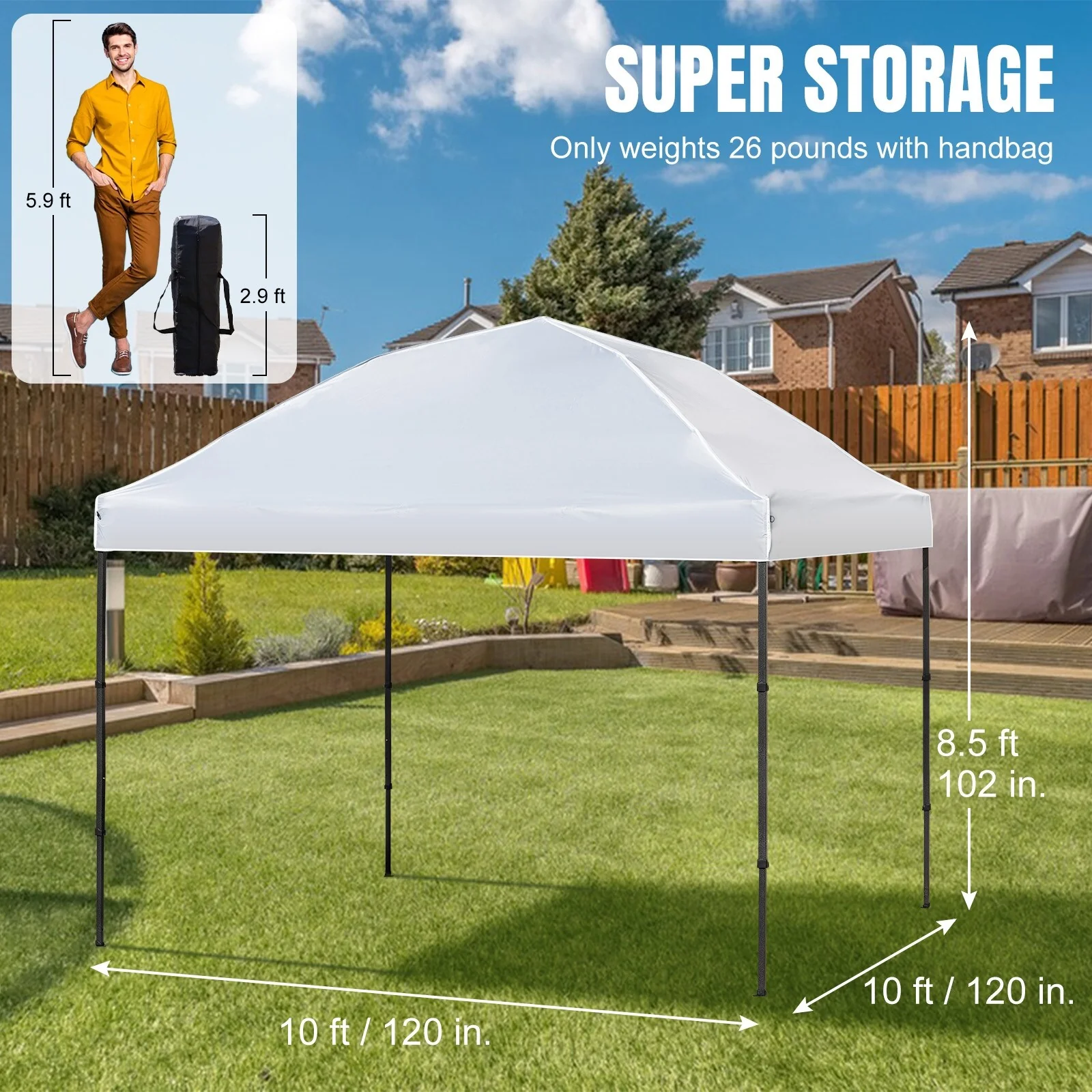 10' x 10' Pop Up Canopy Portable Folding Tent Removable - Size(in.)L W H: 117.60 * 117.60 * 100.80