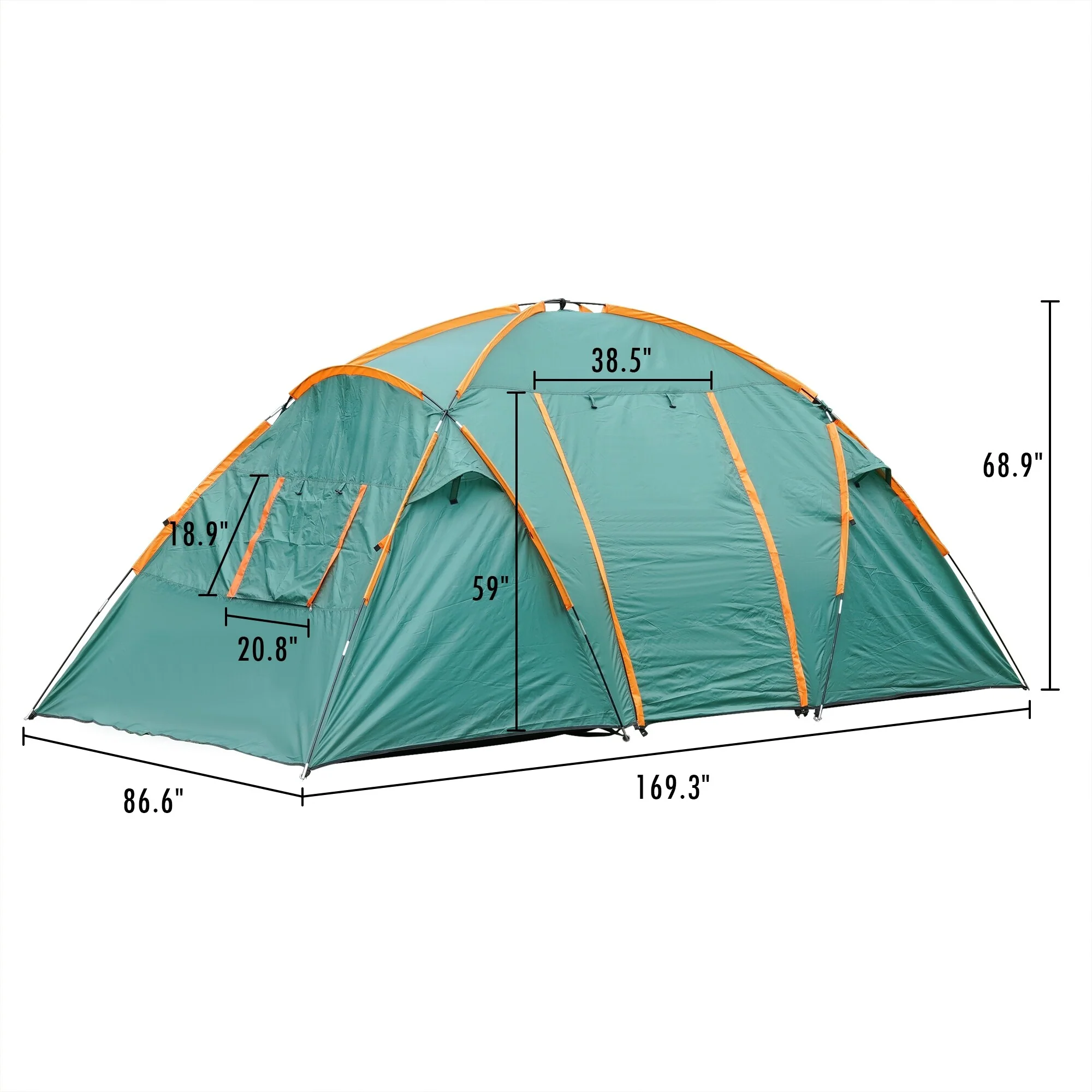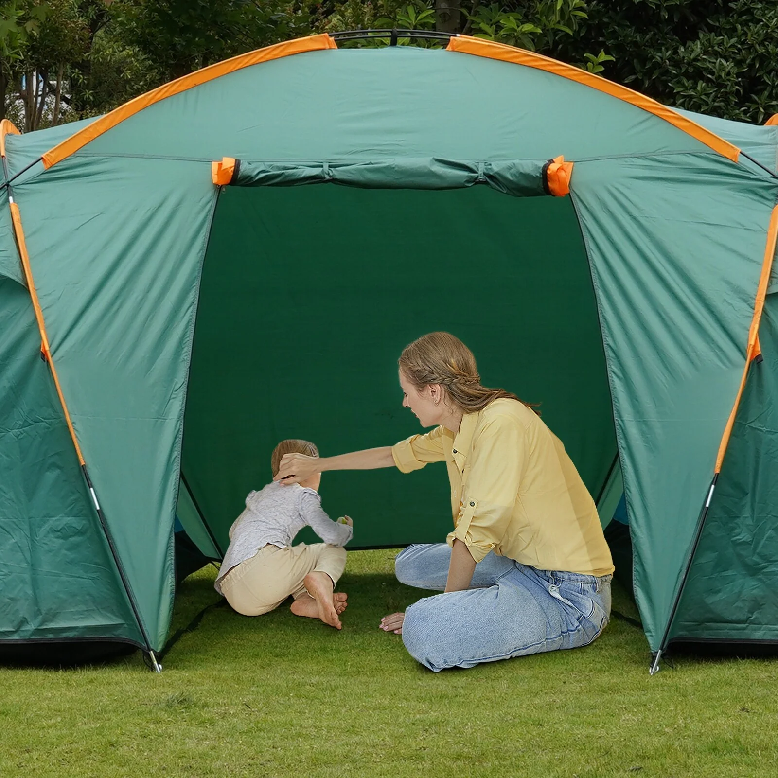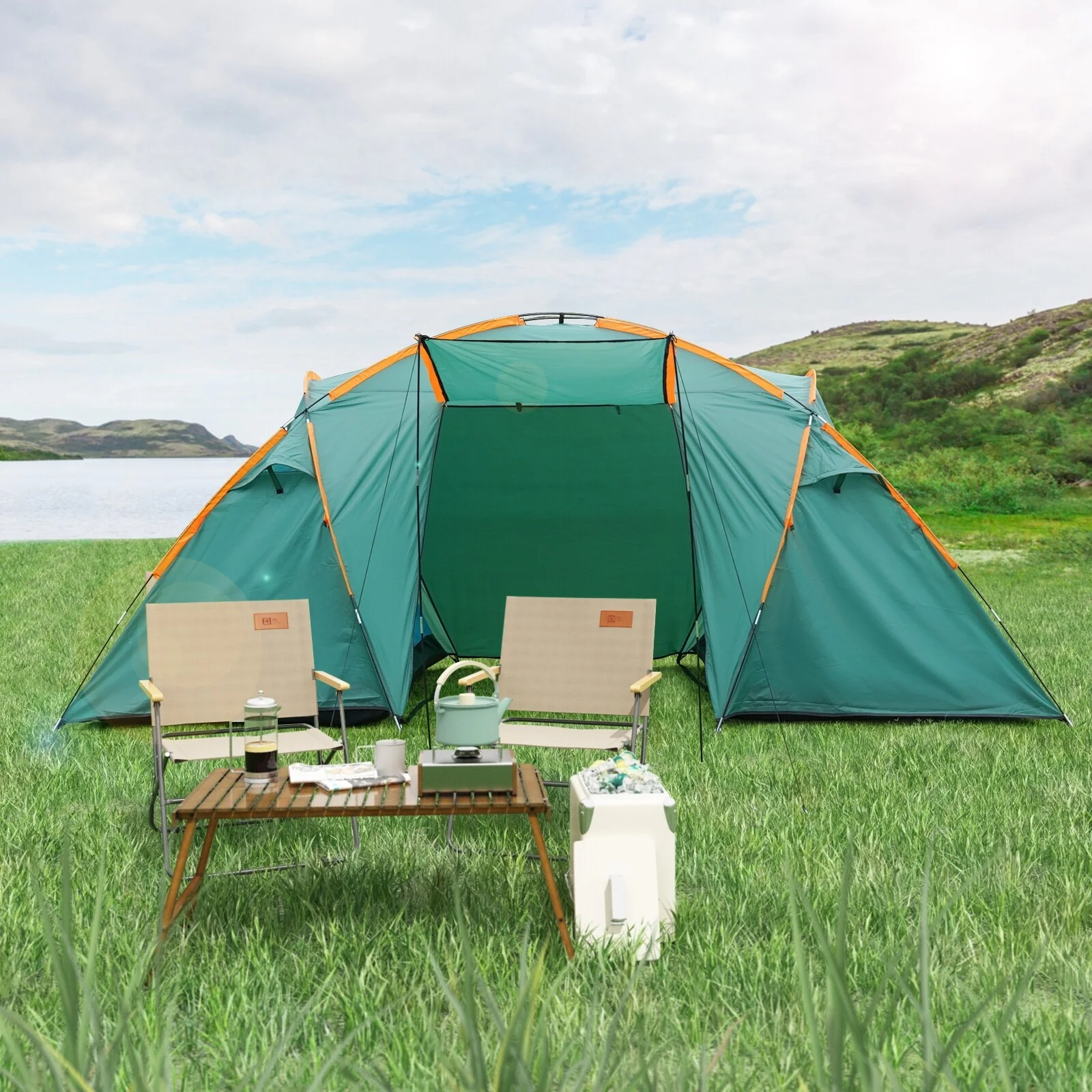 6 Person Beige Green Family Camping Tent - 6 person