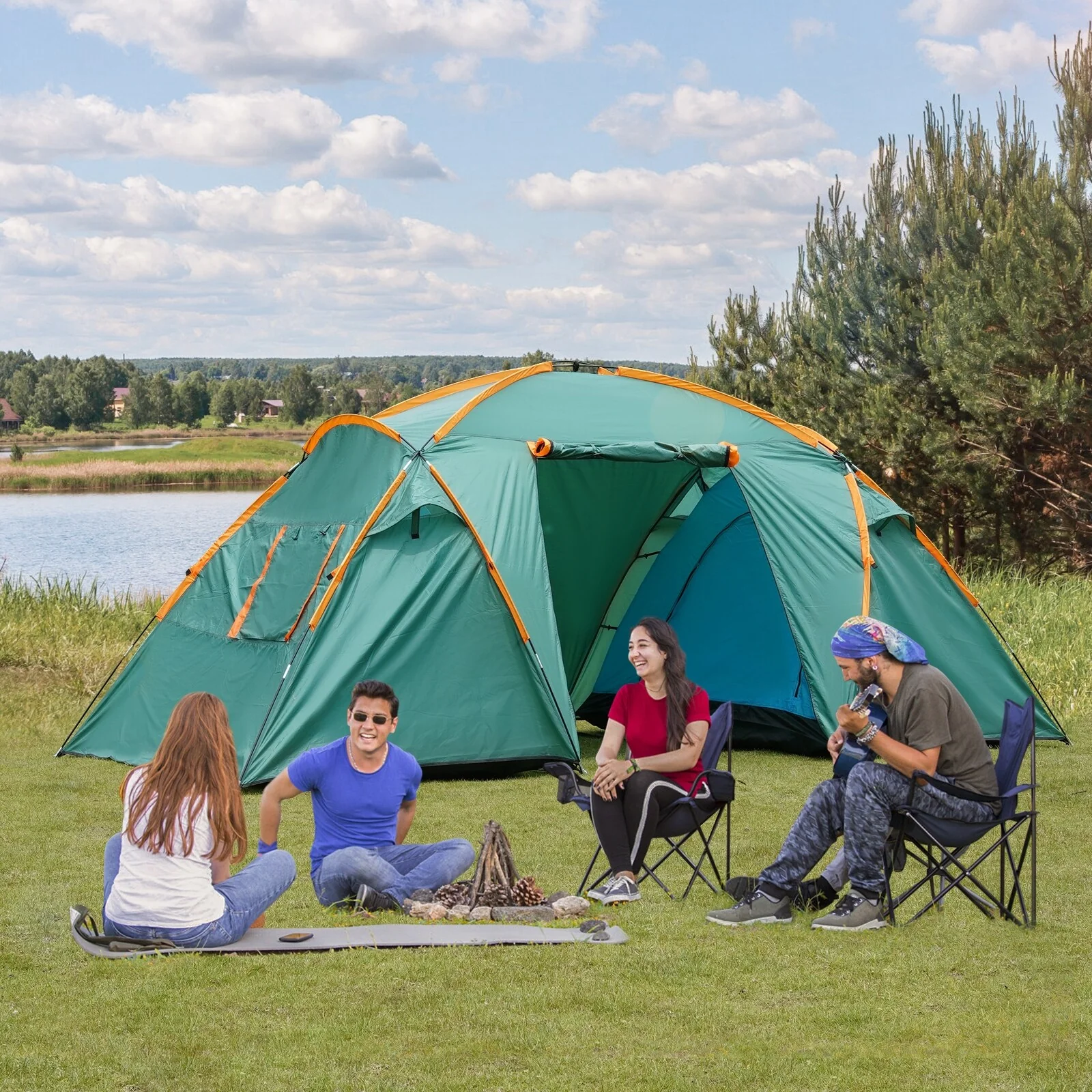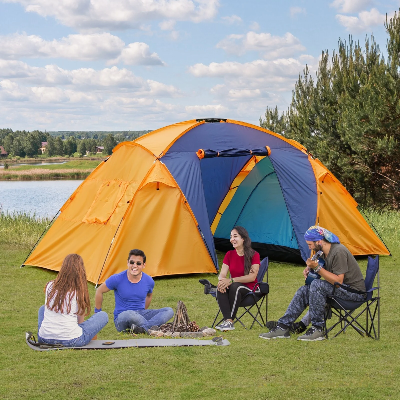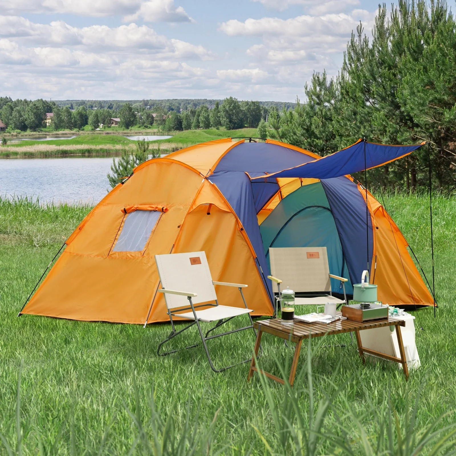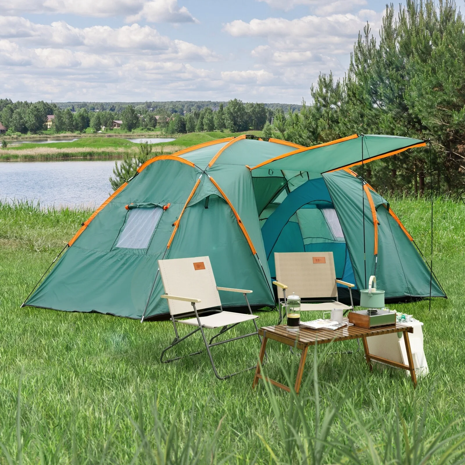 EchoSmile 5-Person Pop Up Camping Tent - 78.74"L x 110.24"W x 47.24"H