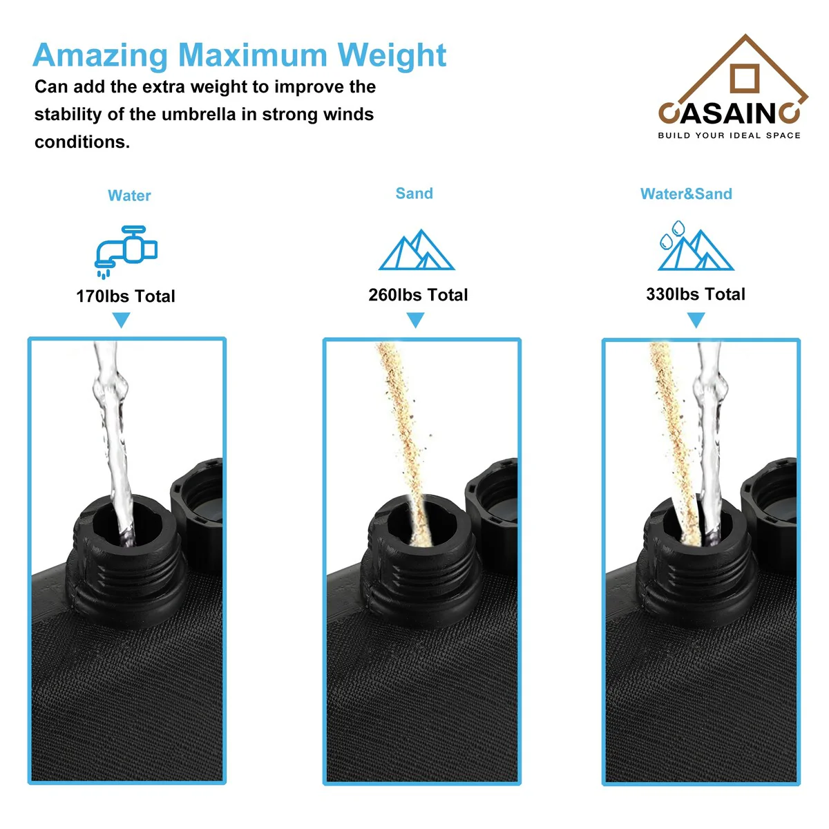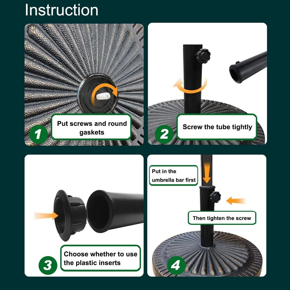 4-piece patio umbrella black base set, can withstand 330lb