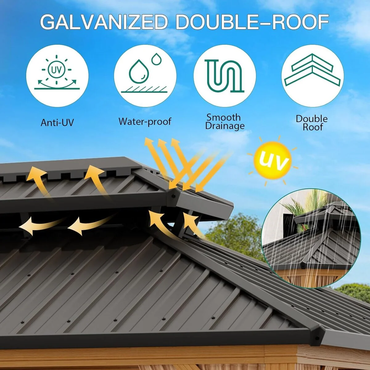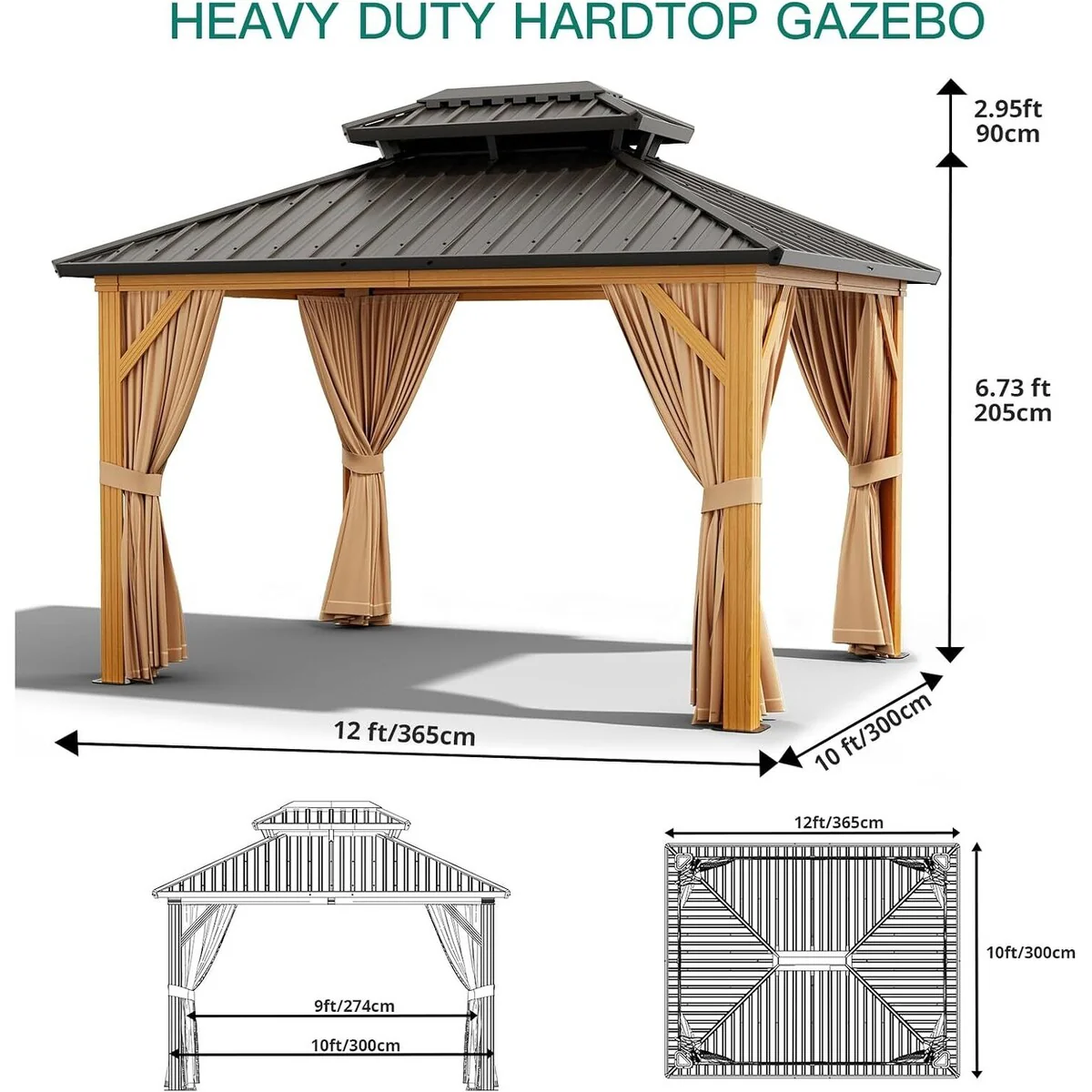 10 X 12 FT Heavy Duty Outdoor Galvanised Steel Hardtop Gazebo - 10 X 12 FT