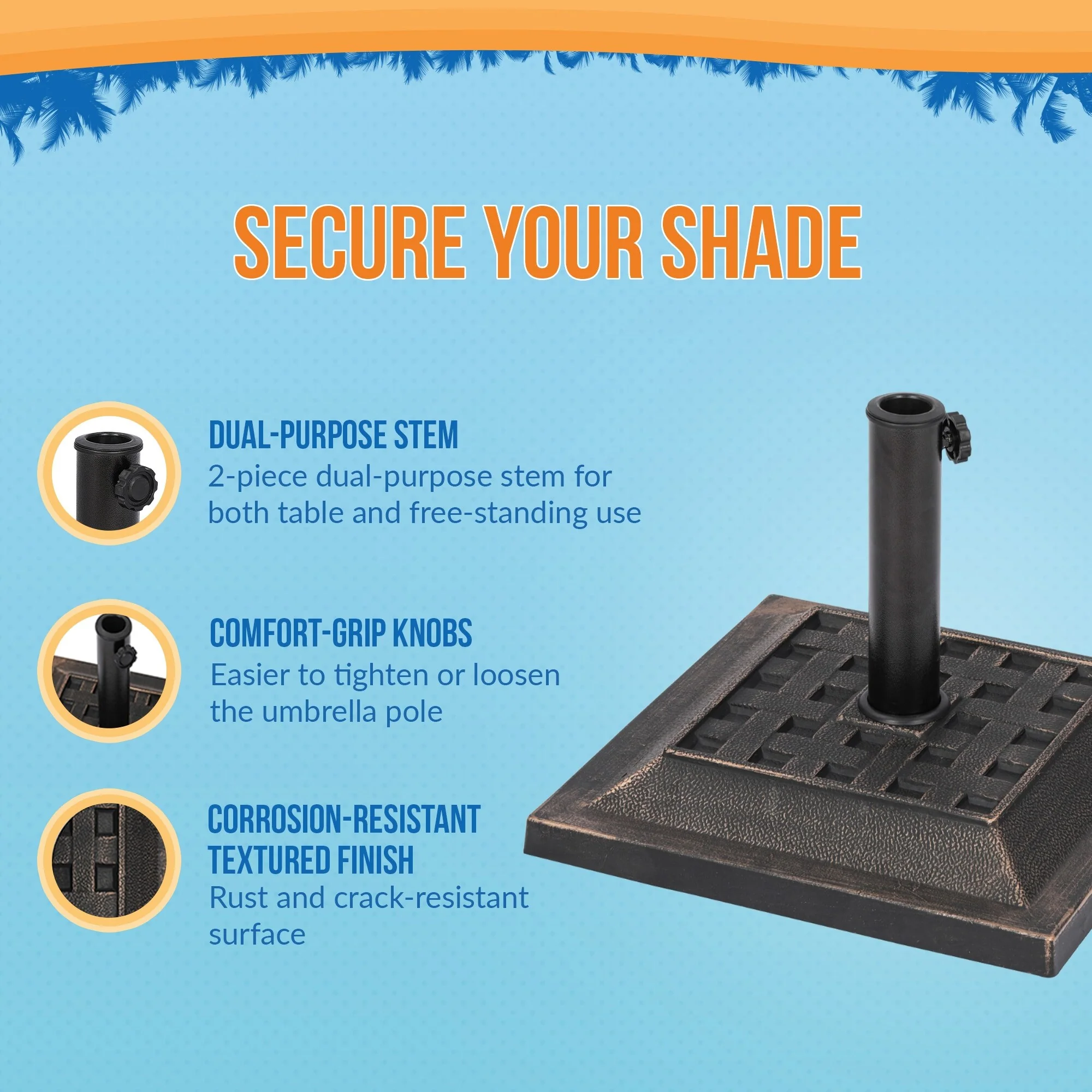 24.2 lb. Market Heavy Duty Patio Umbrella Base for Patio, Outdoor, Deck, Lawn, Garden in Bronze