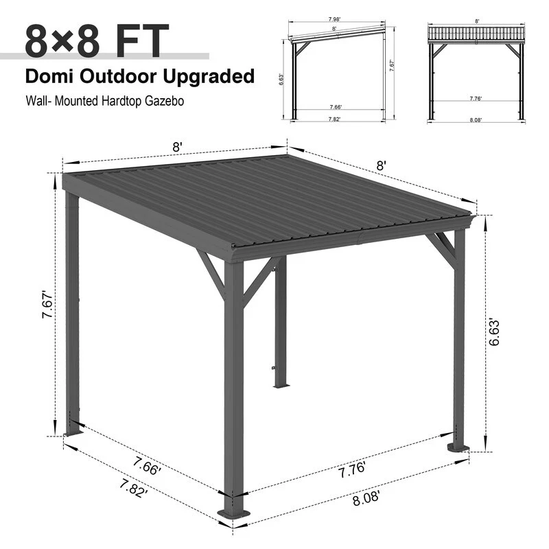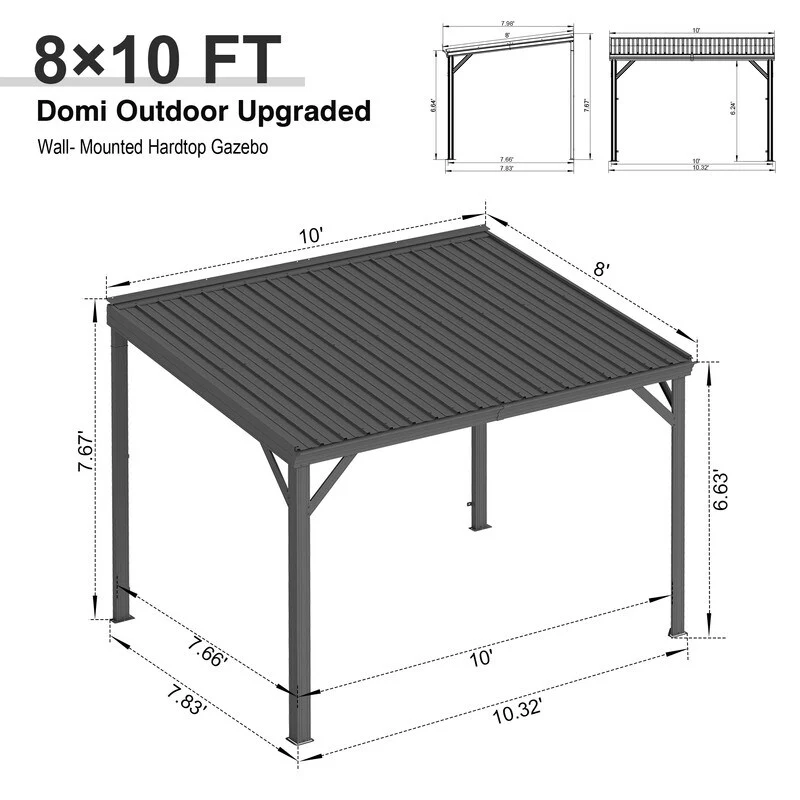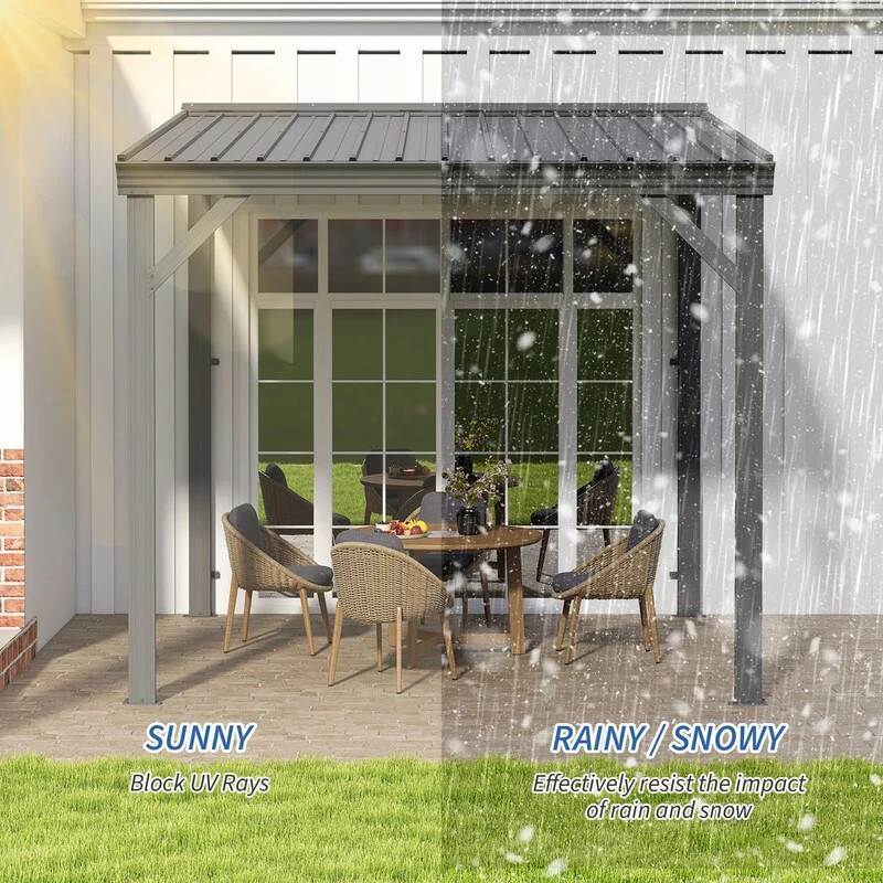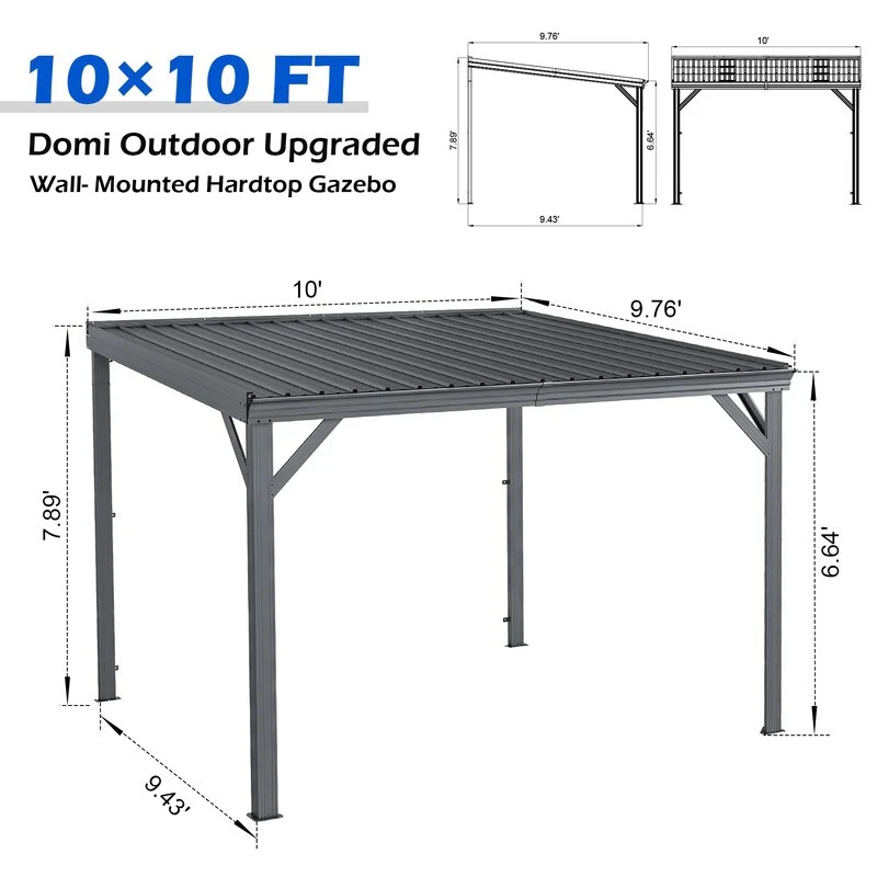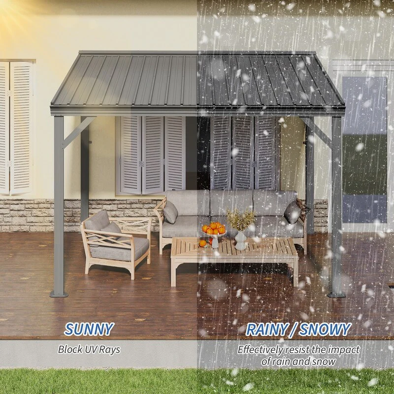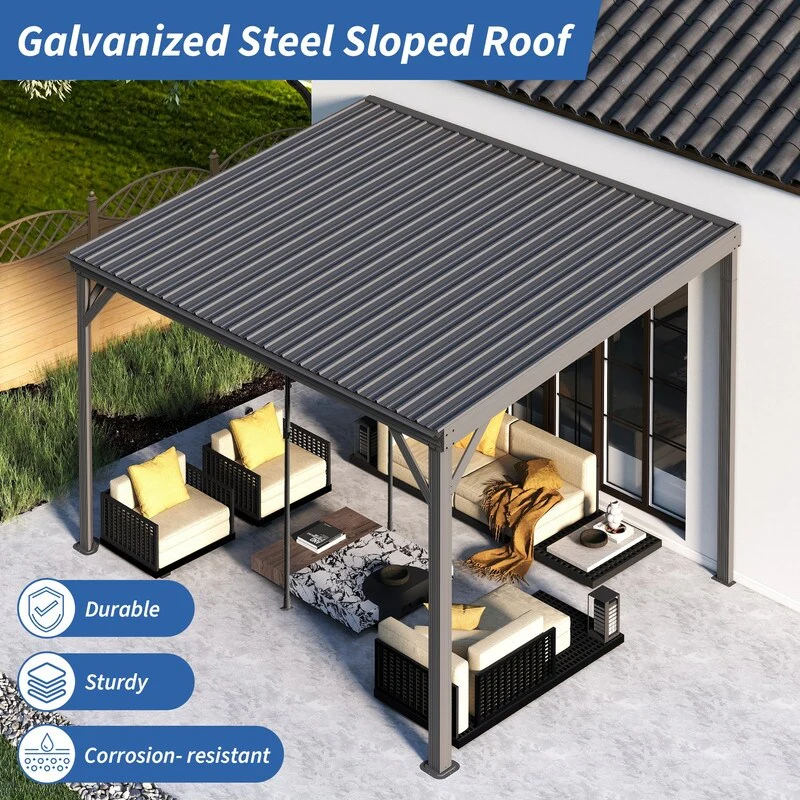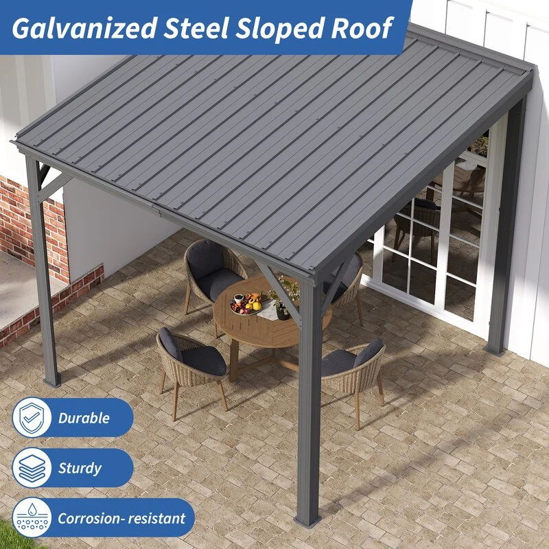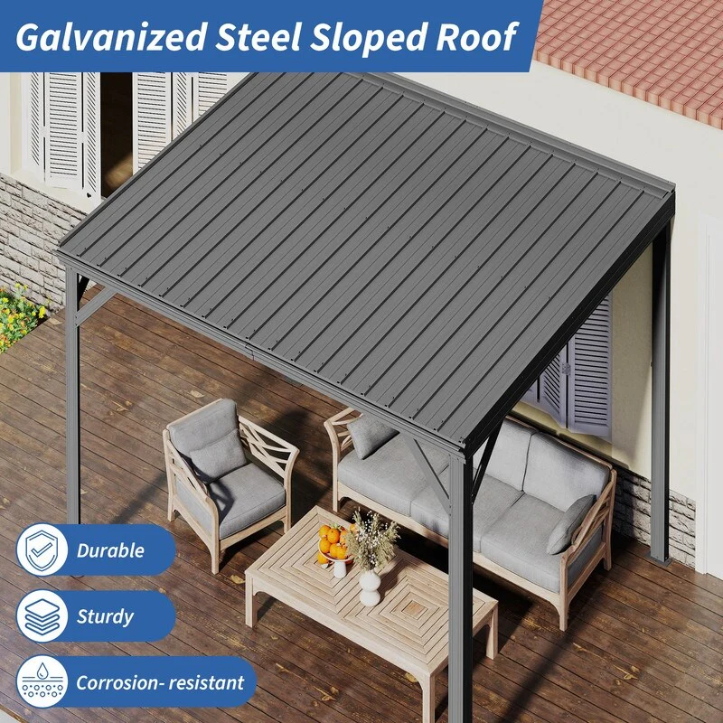 Domi Lean to Gazebo, Outdoor Hardtop Wall Mounted Gazebo with Sloping Galvanized Steel Roof
