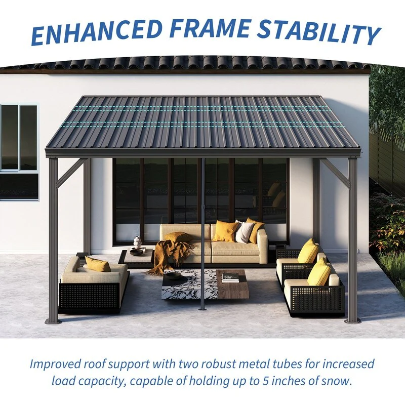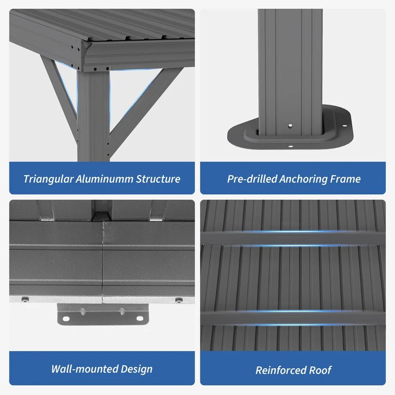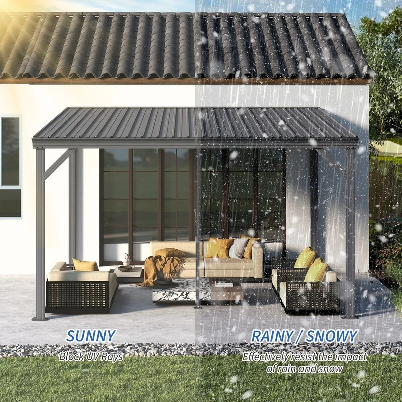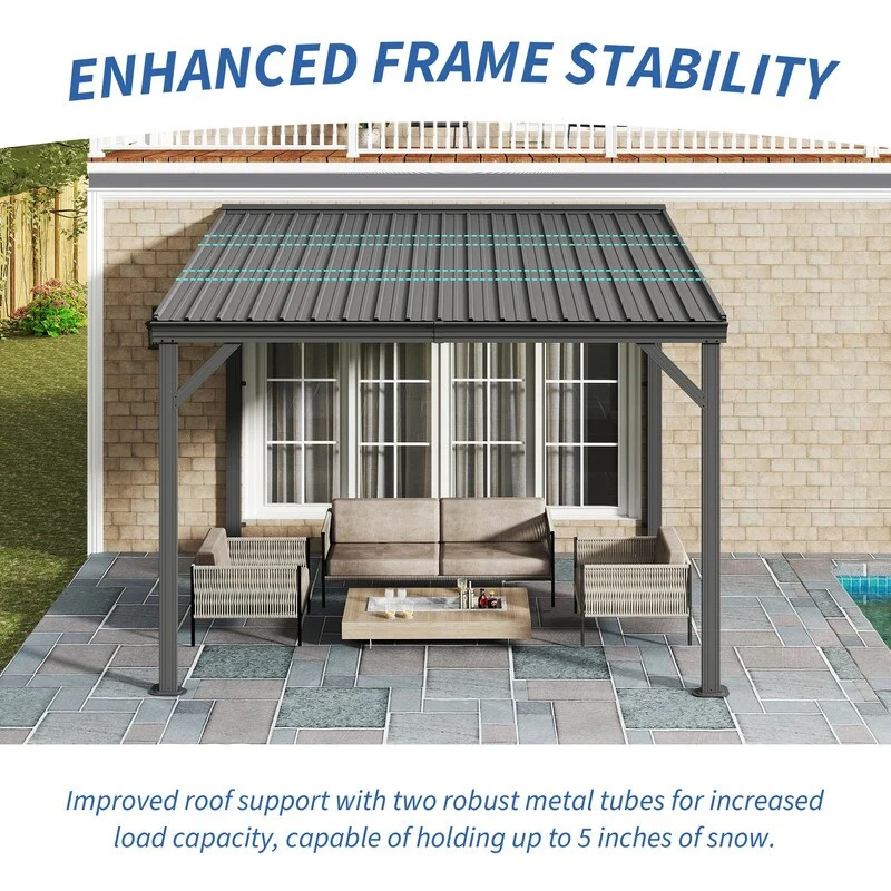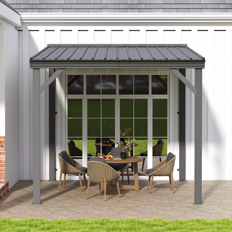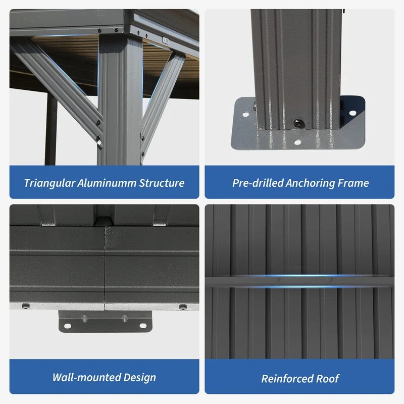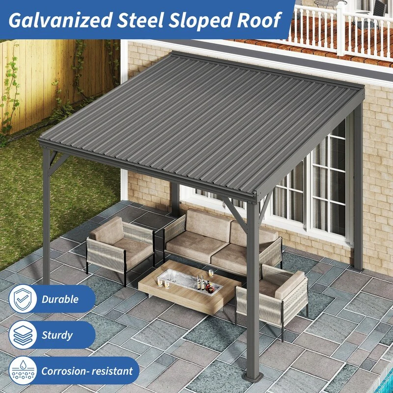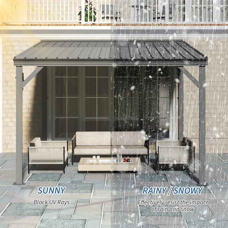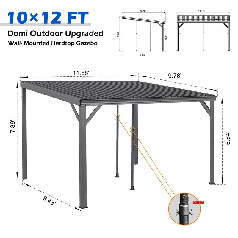 Domi Lean to Gazebo, Outdoor Hardtop Wall Mounted Gazebo with Sloping Galvanized Steel Roof