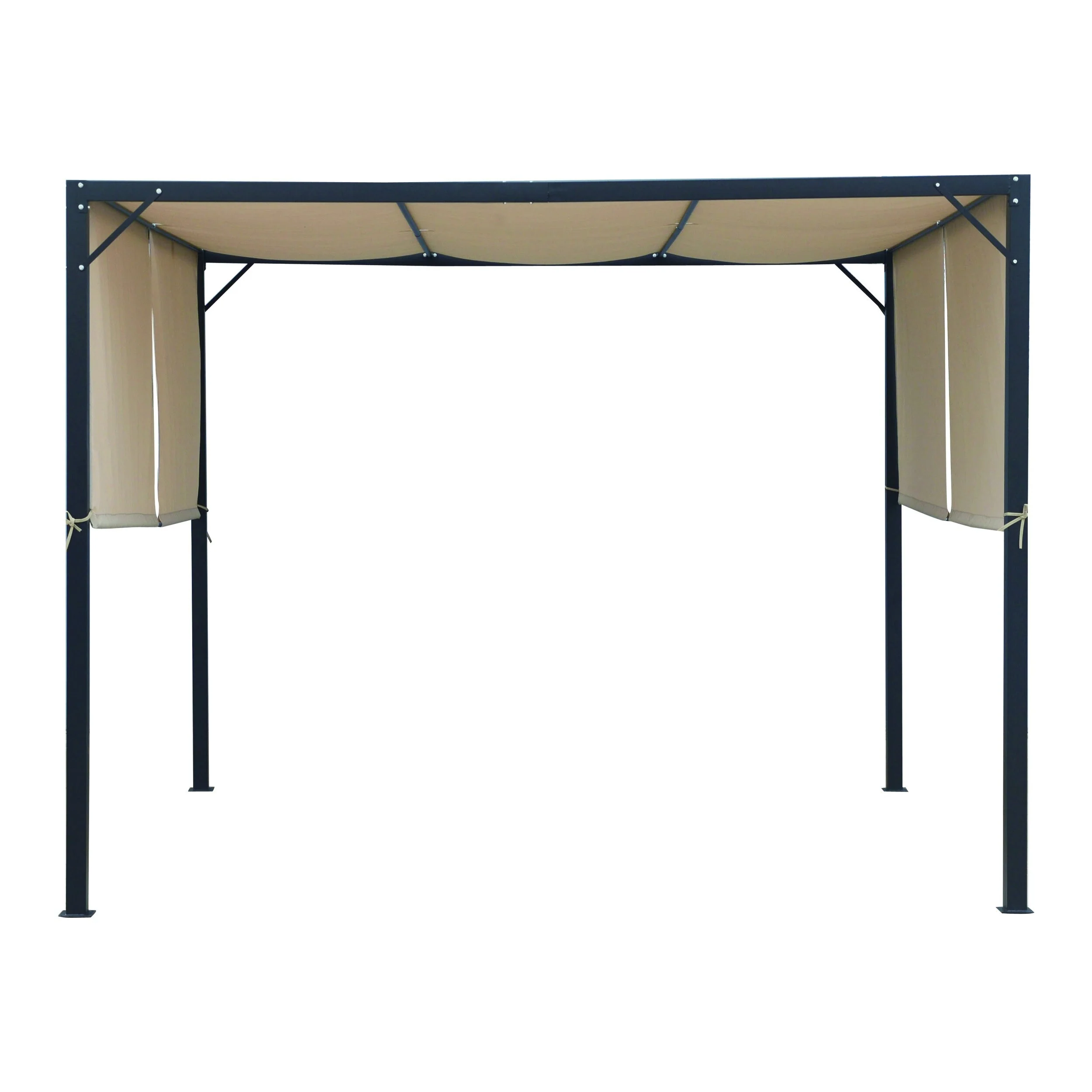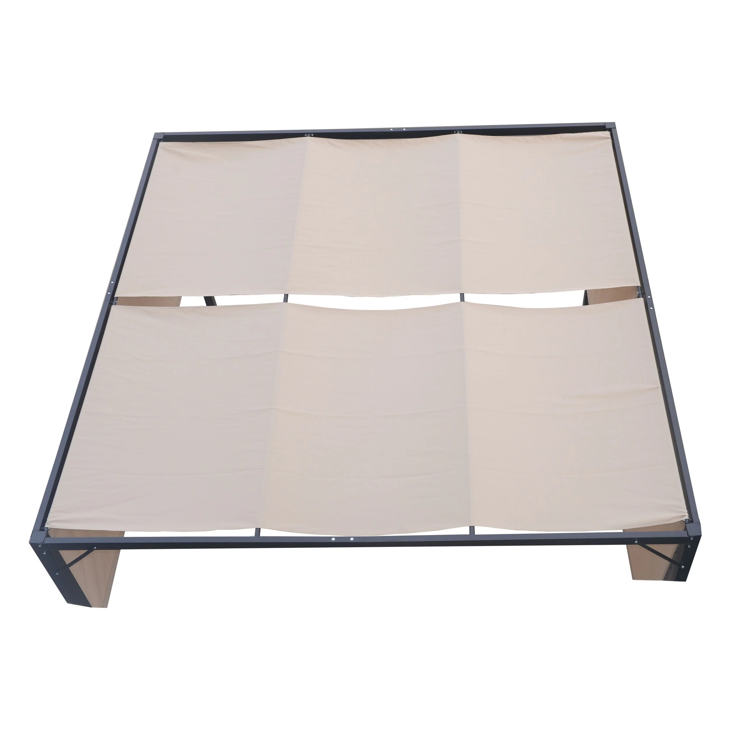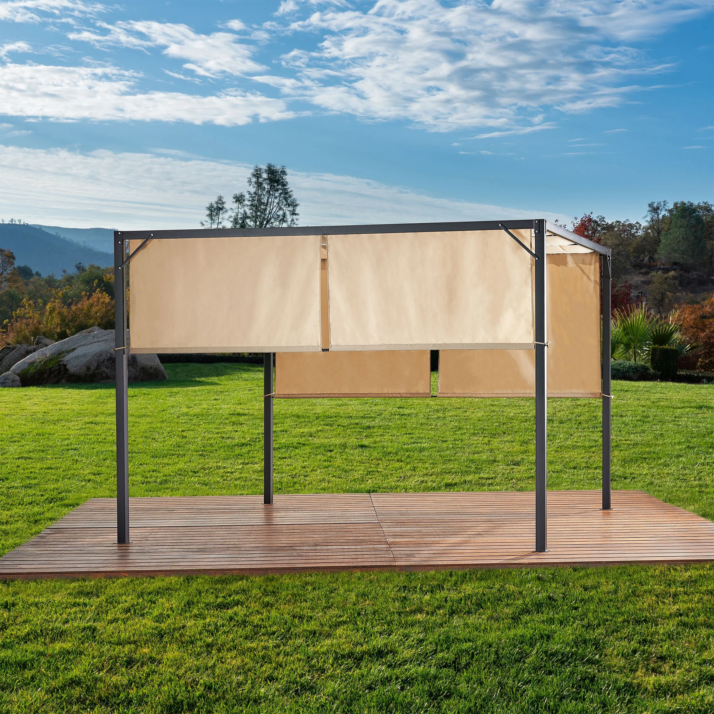 Roomfitters Steel Outdoor Pergola with Retractable Canopy, All-Weather Patio Shade for Dining and Entertaining, Beige