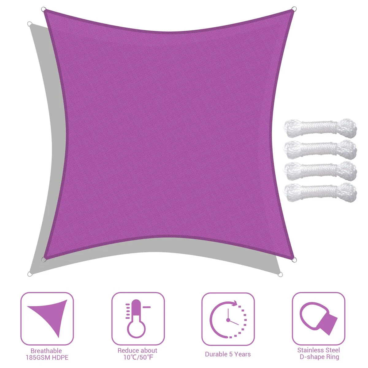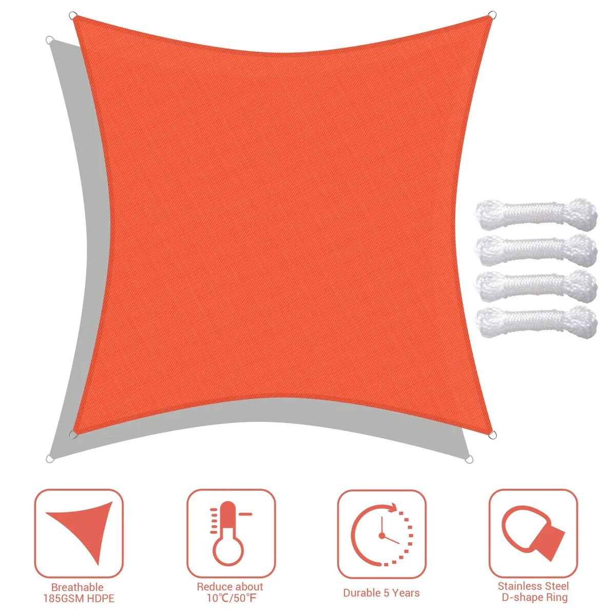 16'x16' Square Sun Shade Sail with Ropes for Outdoor