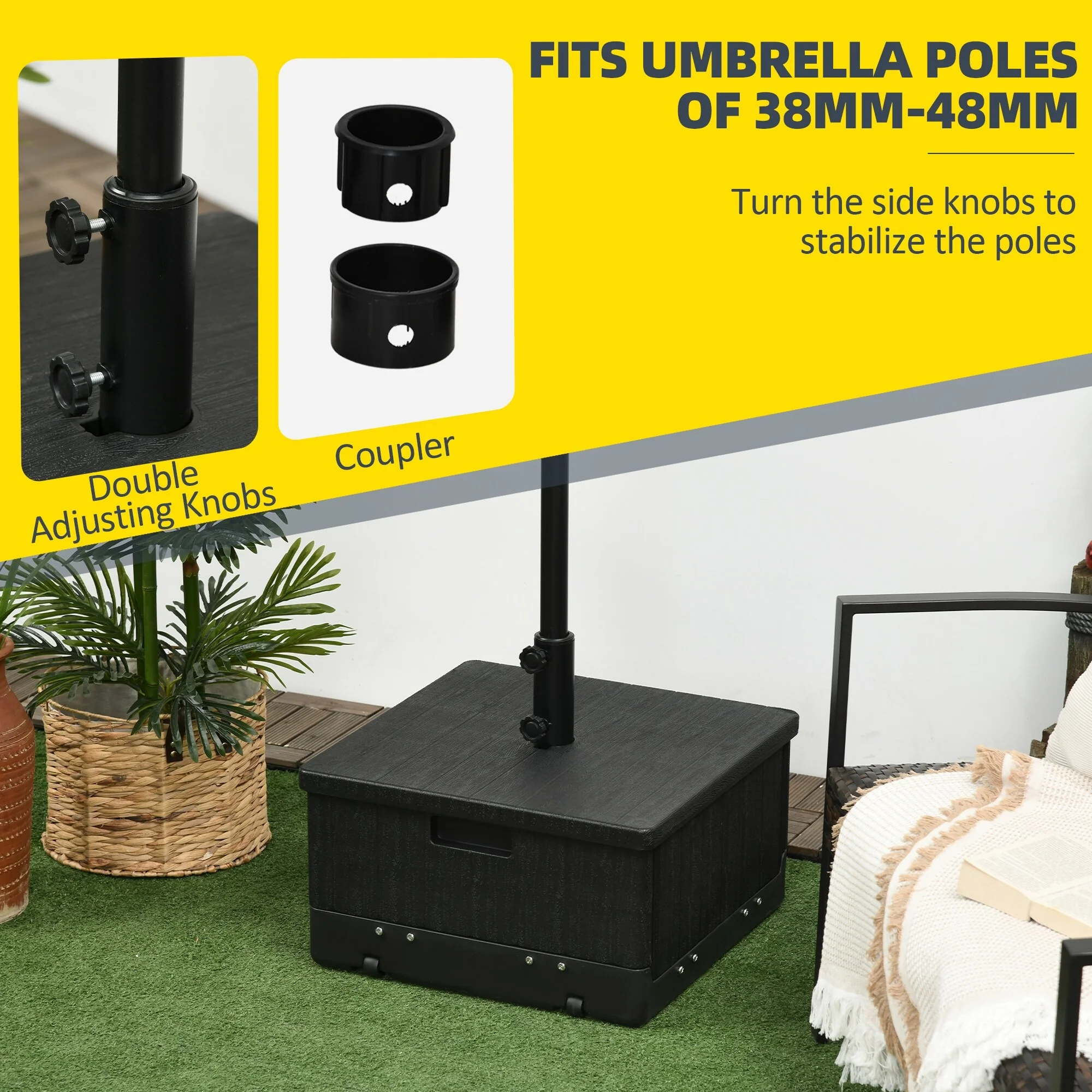 3-in-1 Outdoor Umbrella Base, Coffee End Table, Flower Box Planter, 175lbs Capacity Patio Umbrella Stand Table with Wheels