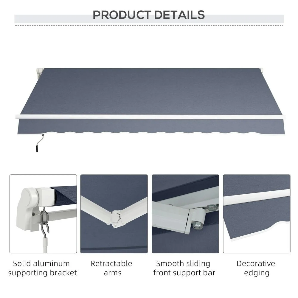 12' x 8' Patio Awning, Canopy Retractable Sun Shade Shelter