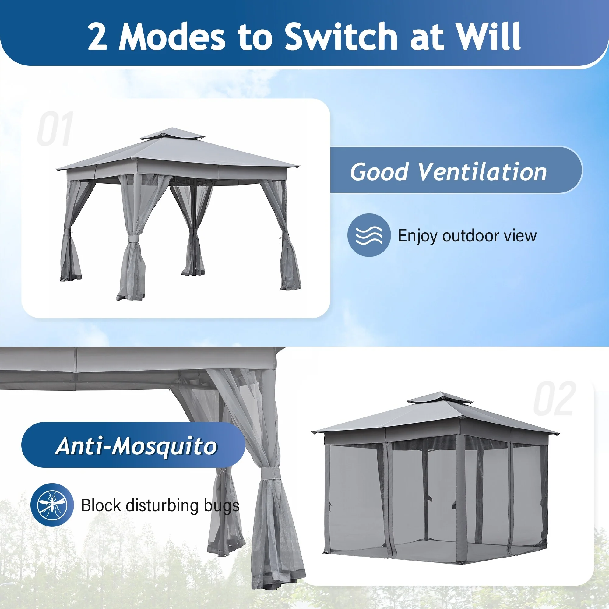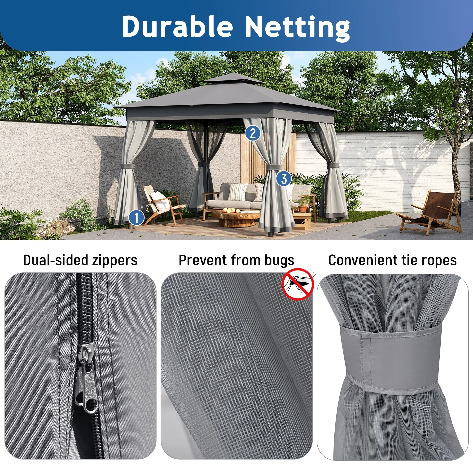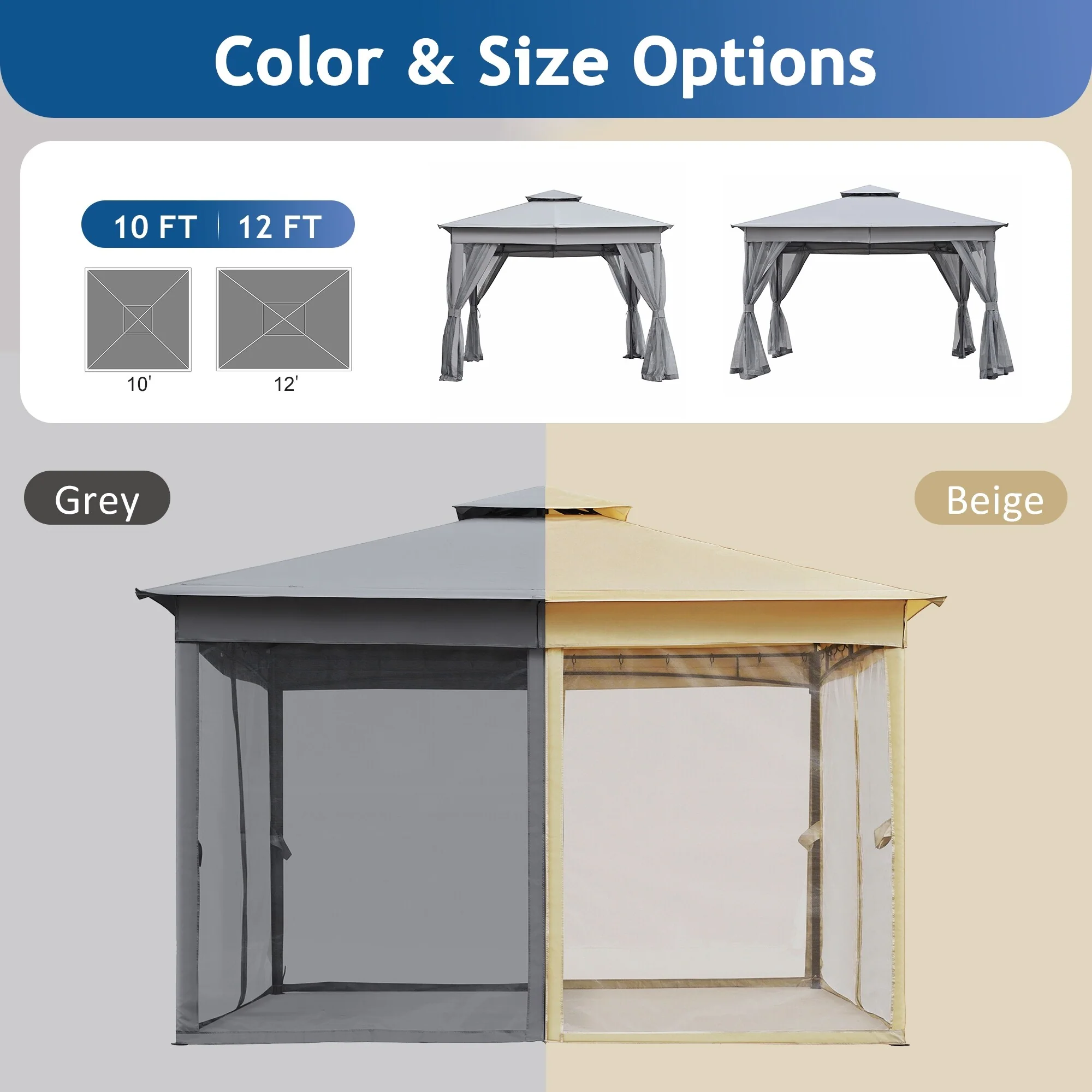 10x10 Outdoor Gazebo Tent with Double Roofs, Patio Gazebo with Mosquito Netting, Canopy for Backyard, Garden, Lawn and Deck